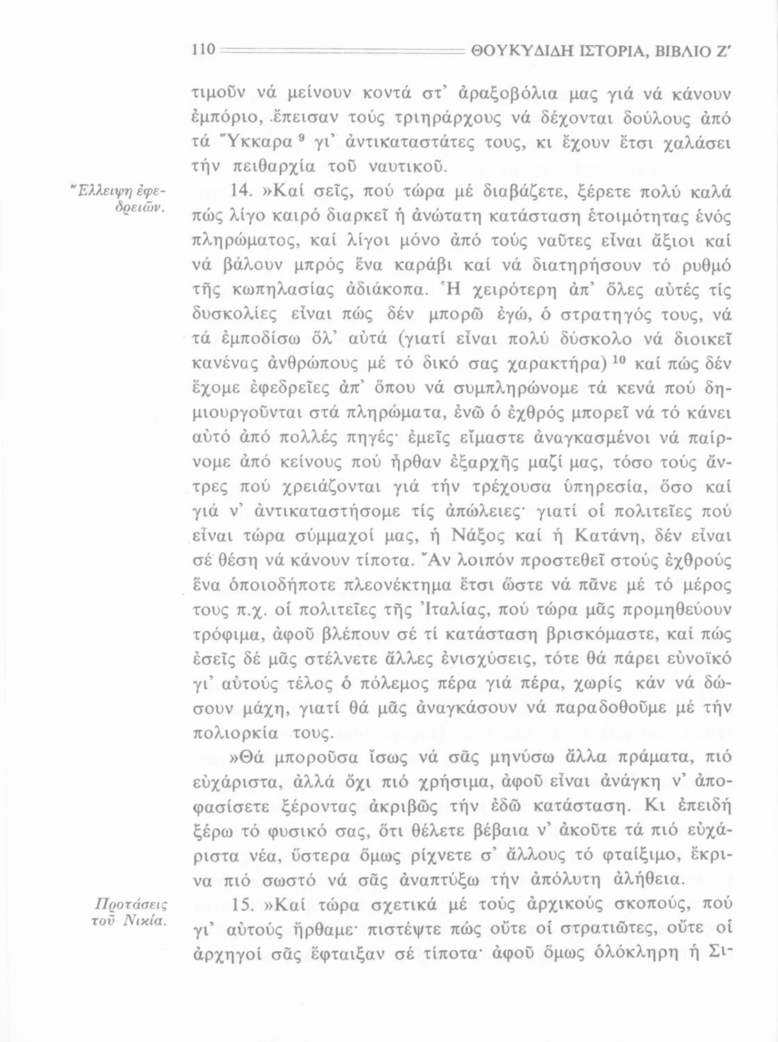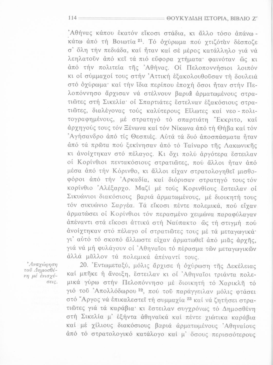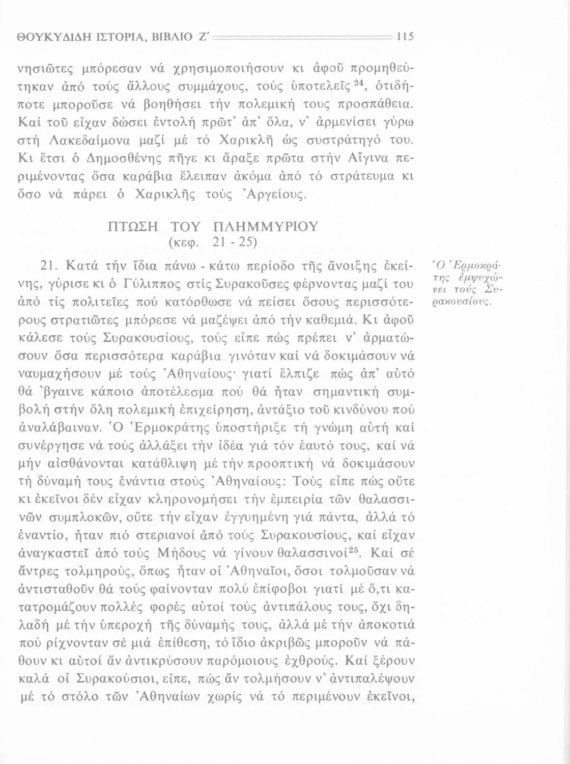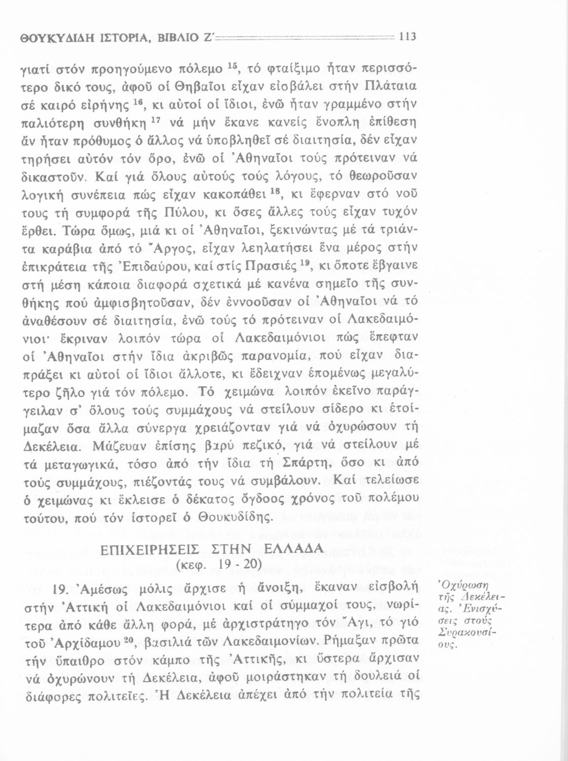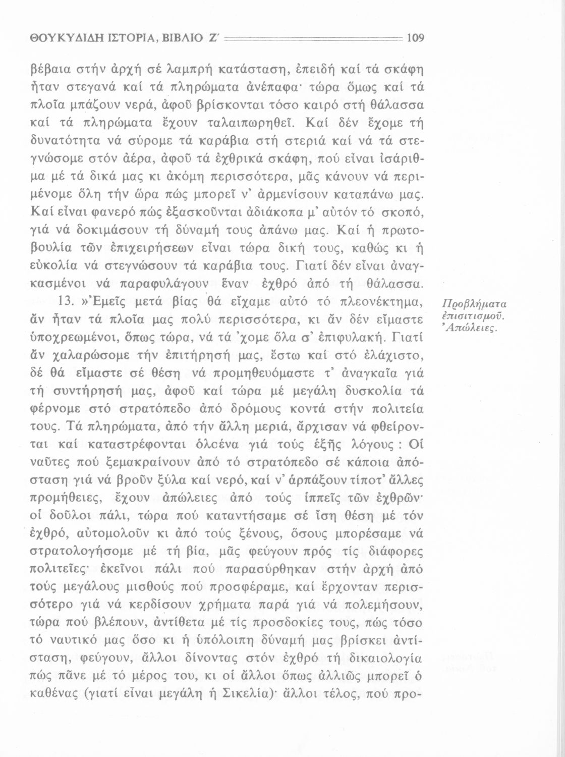 Σχολικό εγχειρίδιο Αρχαίων Ελληνικών Β΄ Γυμνασίου που περιλαμβάνει την μετάφραση των βιβλίων ΣΤ΄ και Ζ΄ της Ιστορίας του Θουκυδίδη, εισαγωγή στη ζωή και το έργο του, και ερμηνευτικά και πραγματολογικά σχόλια.
