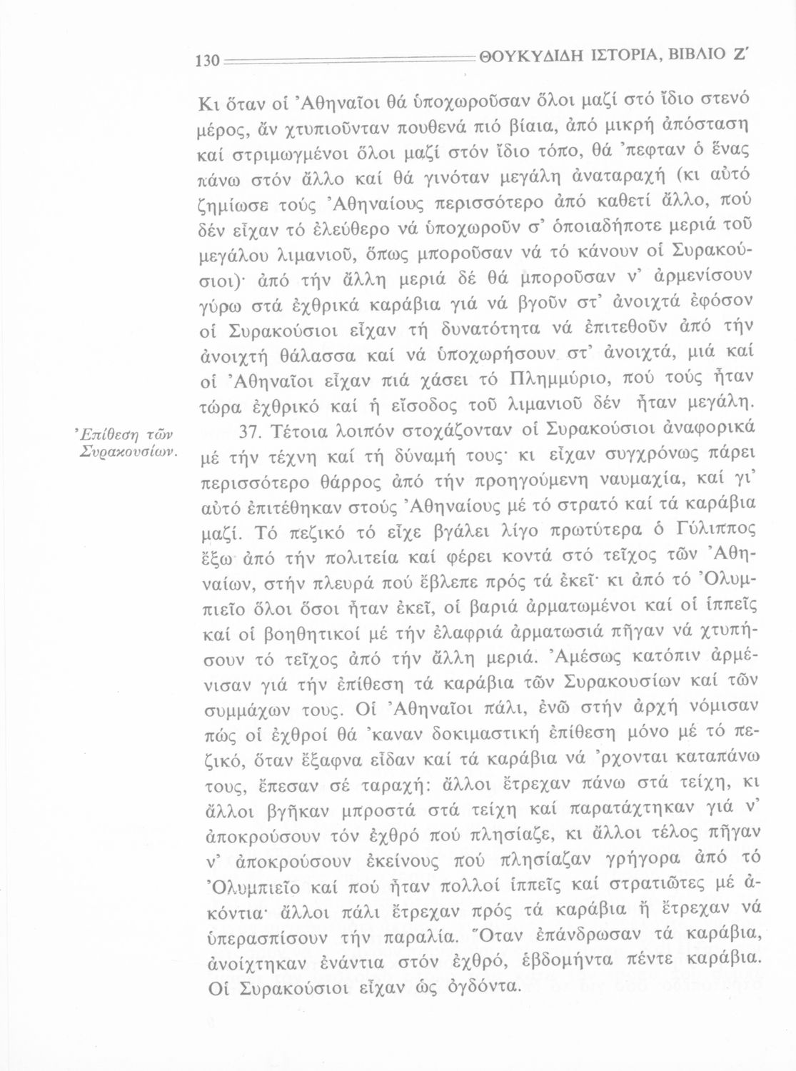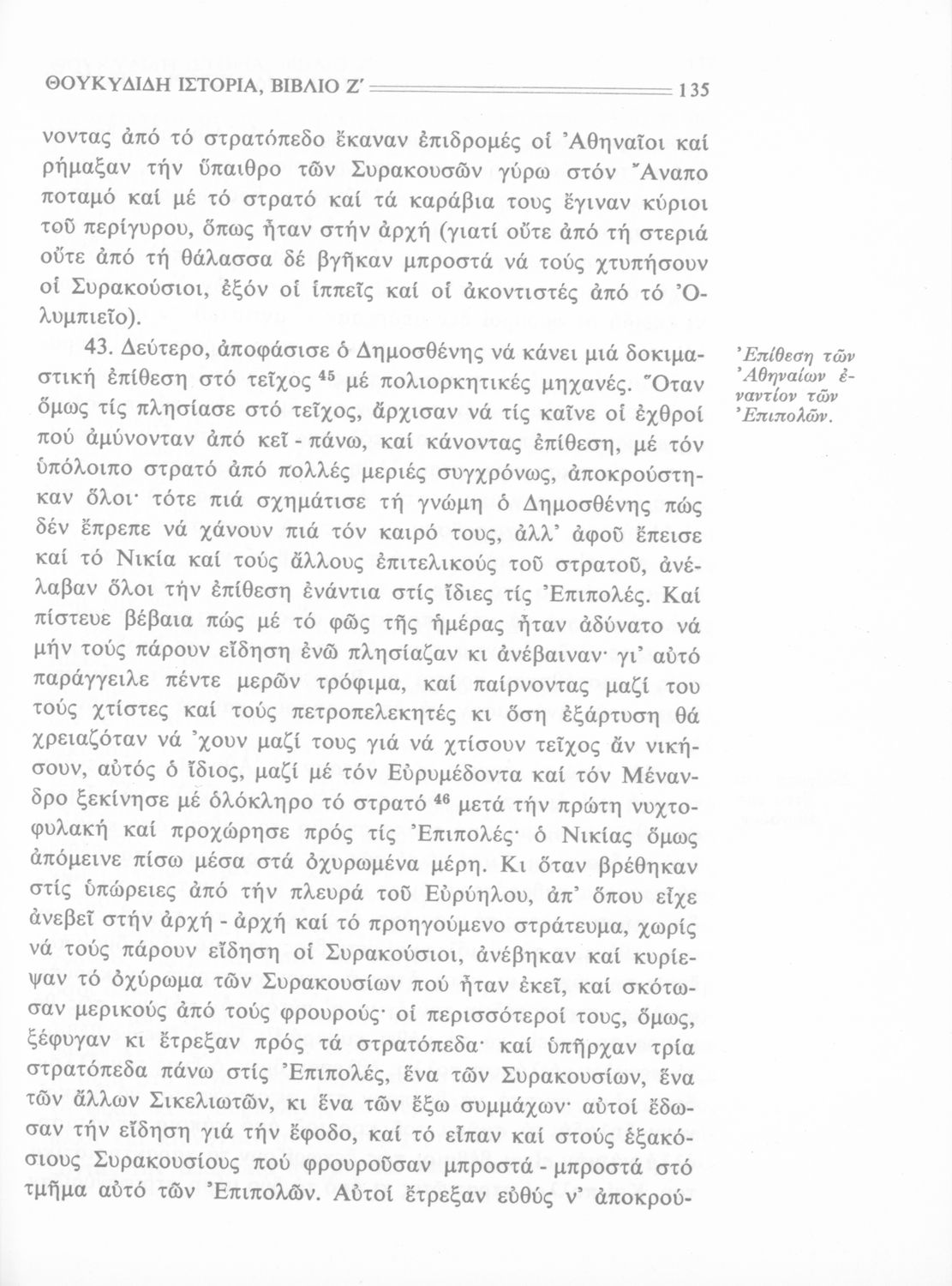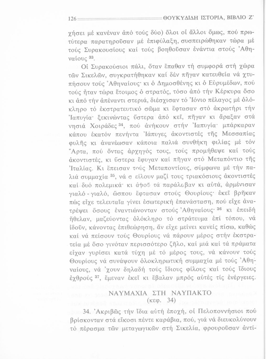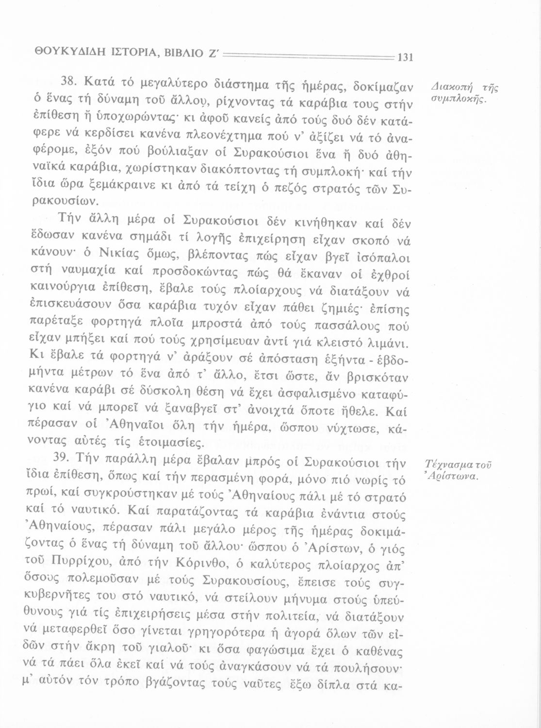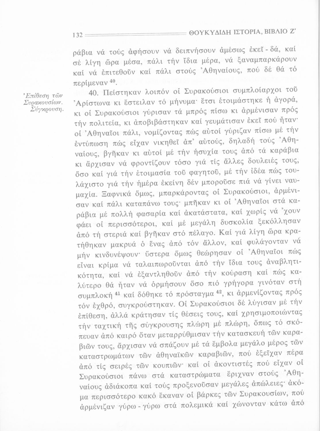 Σχολικό εγχειρίδιο Αρχαίων Ελληνικών Β΄ Γυμνασίου που περιλαμβάνει την μετάφραση των βιβλίων ΣΤ΄ και Ζ΄ της Ιστορίας του Θουκυδίδη, εισαγωγή στη ζωή και το έργο του, και ερμηνευτικά και πραγματολογικά σχόλια.