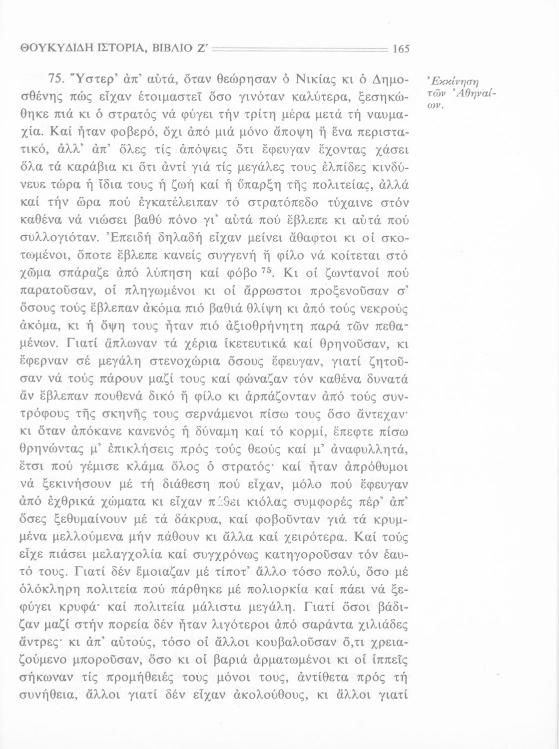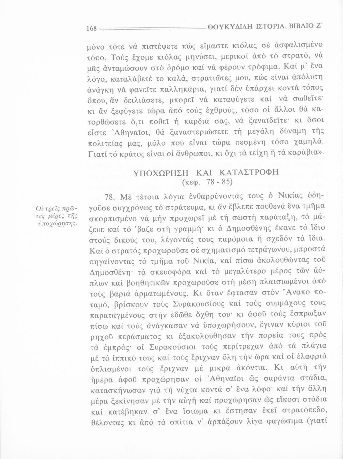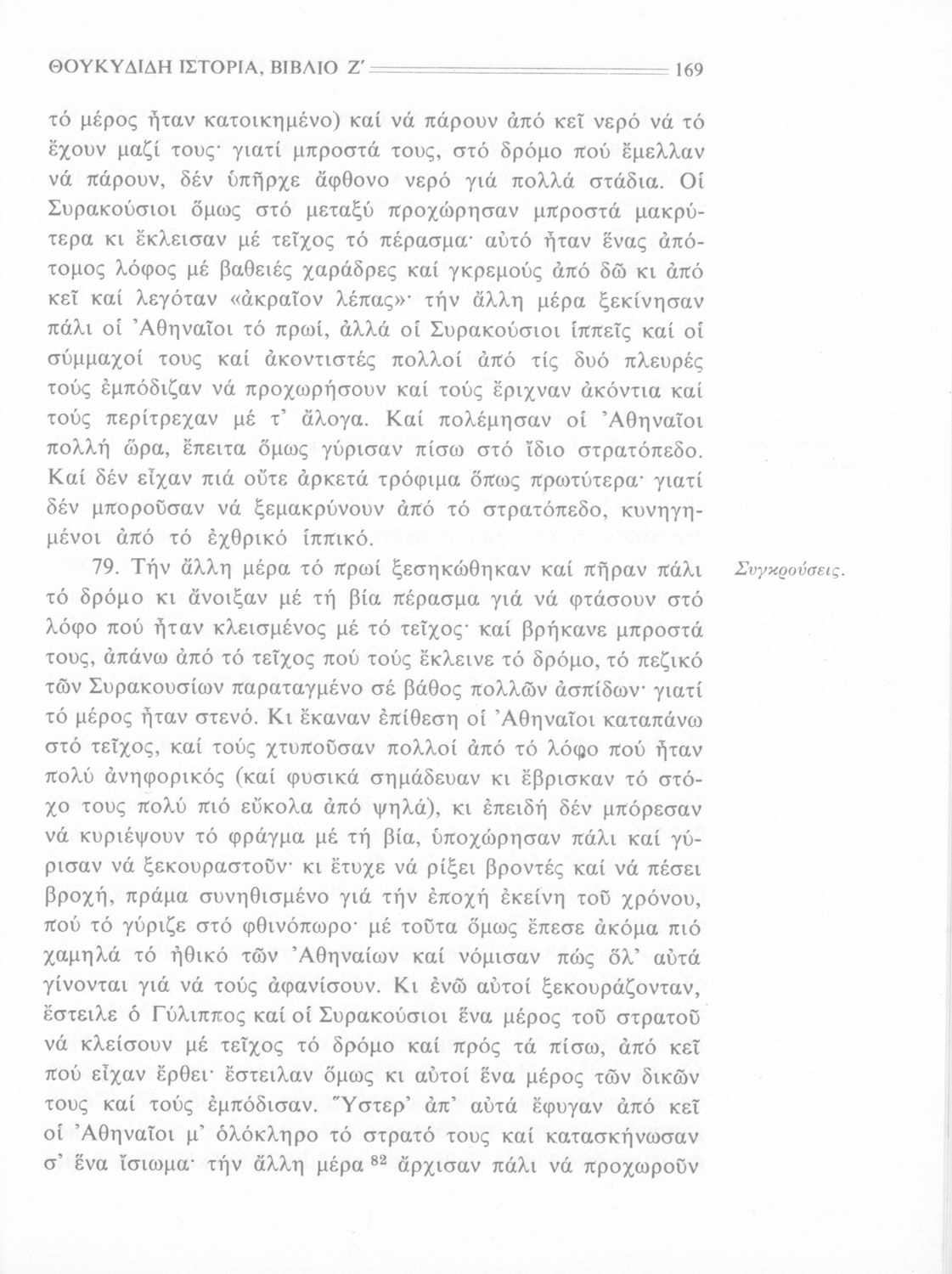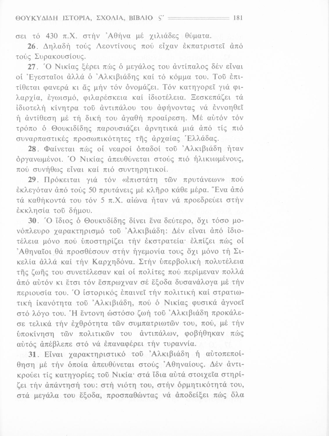 Σχολικό εγχειρίδιο Αρχαίων Ελληνικών Β΄ Γυμνασίου που περιλαμβάνει την μετάφραση των βιβλίων ΣΤ΄ και Ζ΄ της Ιστορίας του Θουκυδίδη, εισαγωγή στη ζωή και το έργο του, και ερμηνευτικά και πραγματολογικά σχόλια.