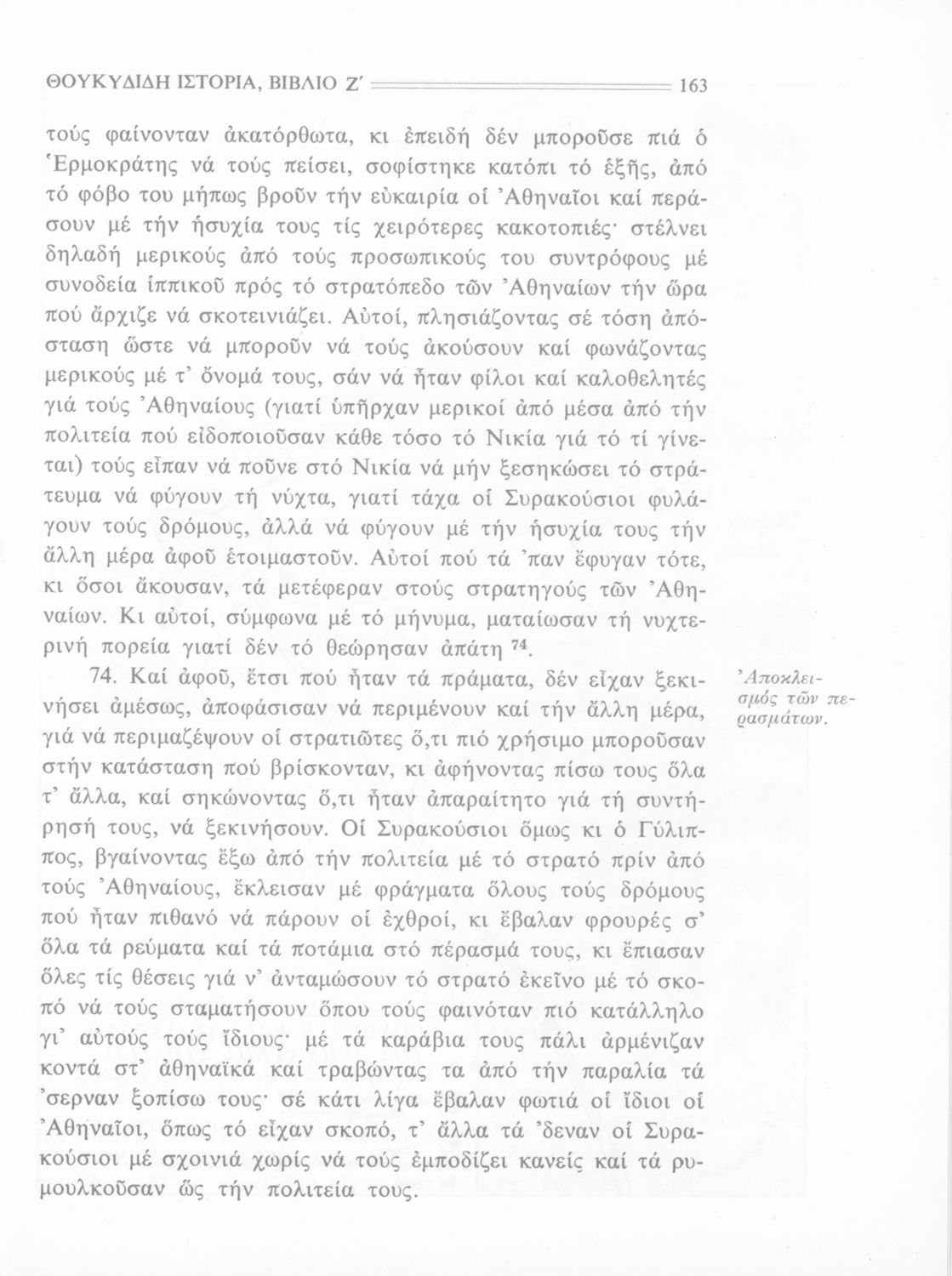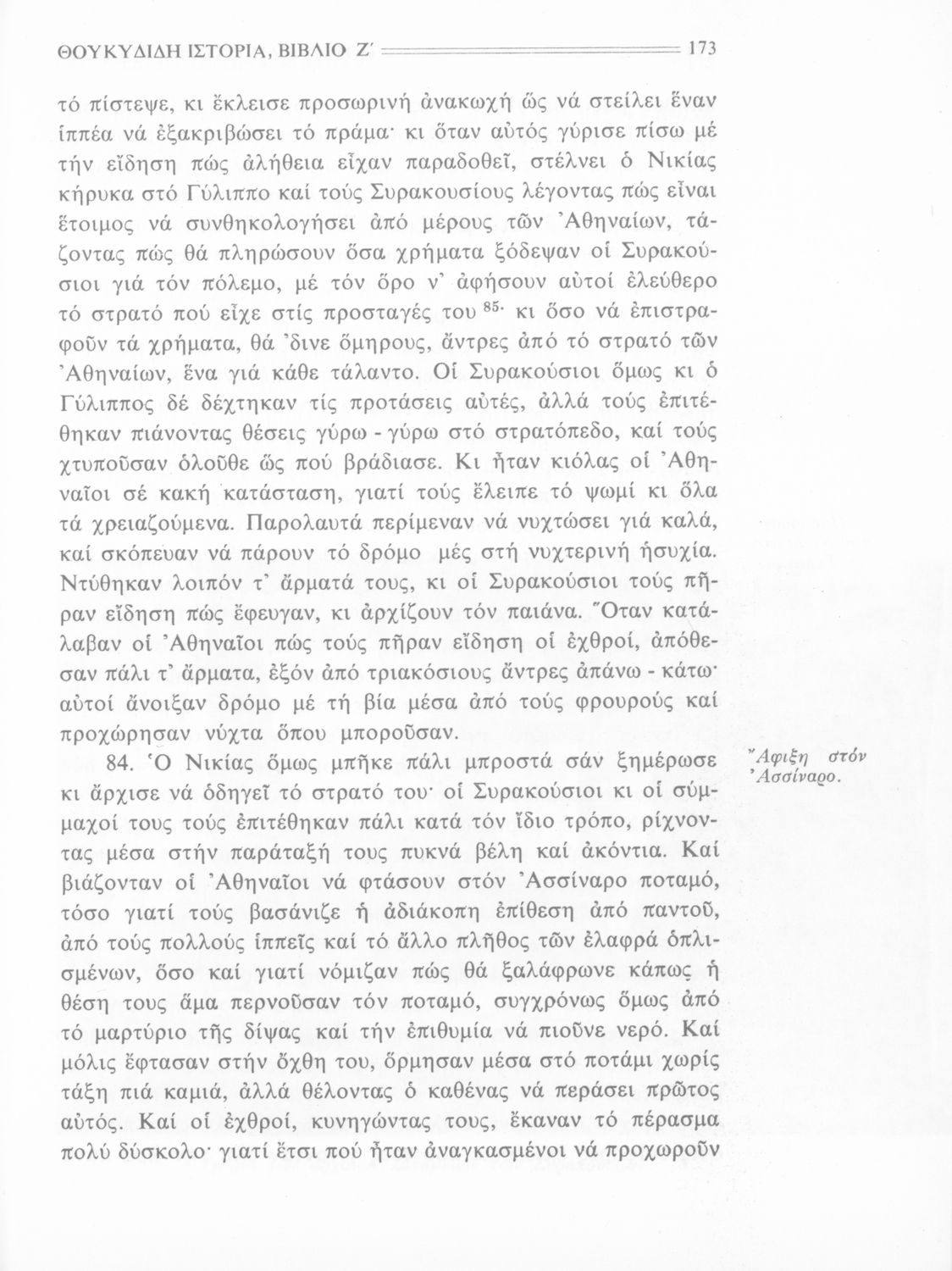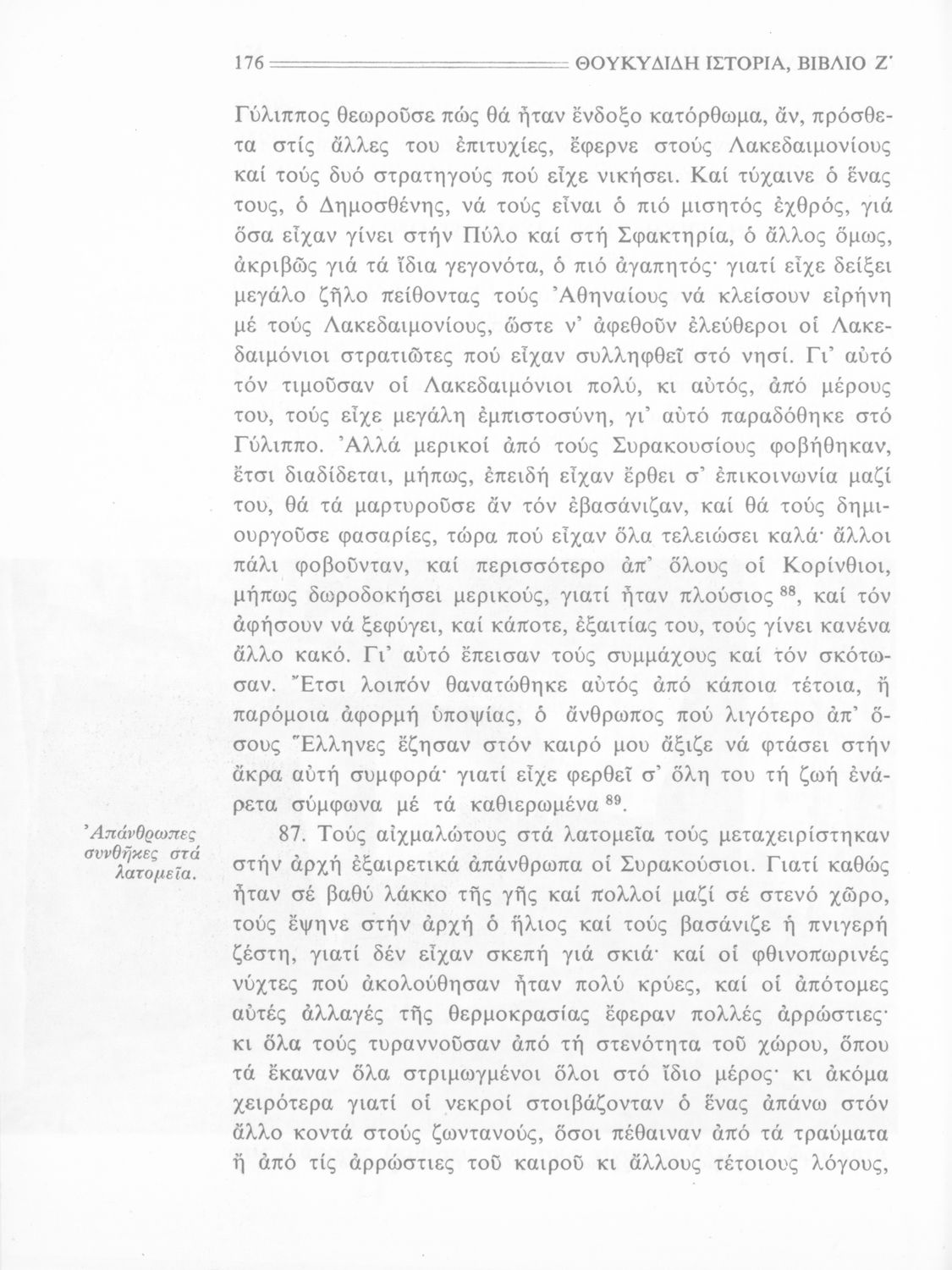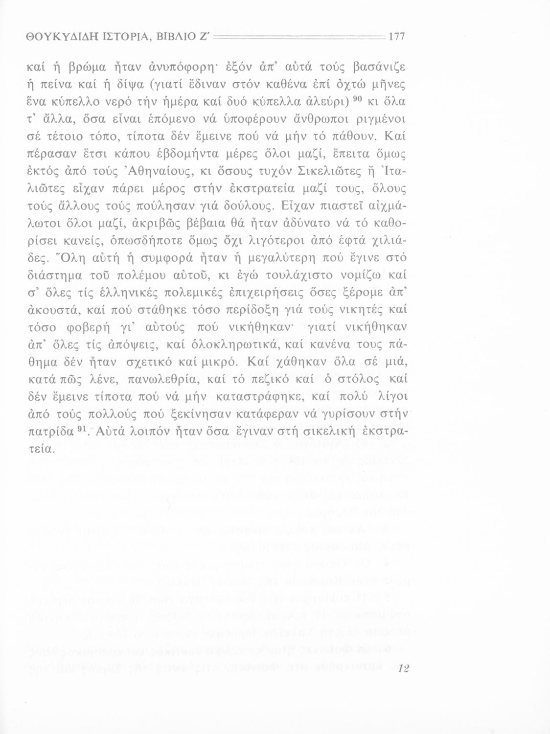 Σχολικό εγχειρίδιο Αρχαίων Ελληνικών Β΄ Γυμνασίου που περιλαμβάνει την μετάφραση των βιβλίων ΣΤ΄ και Ζ΄ της Ιστορίας του Θουκυδίδη, εισαγωγή στη ζωή και το έργο του, και ερμηνευτικά και πραγματολογικά σχόλια.