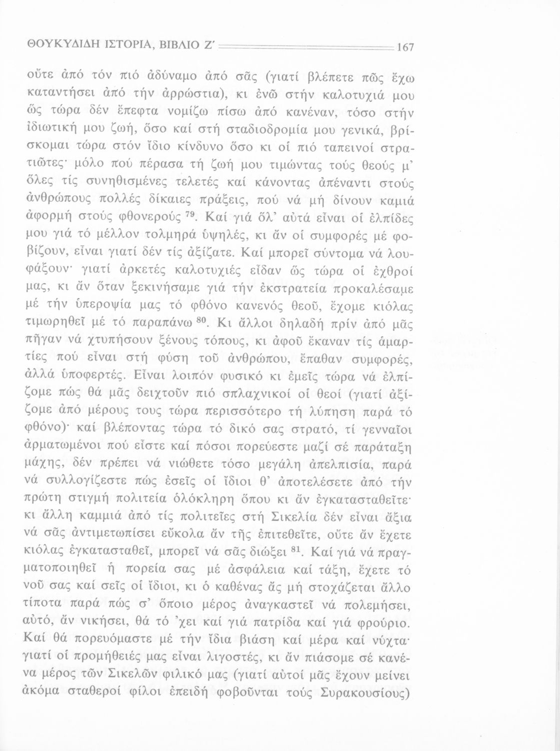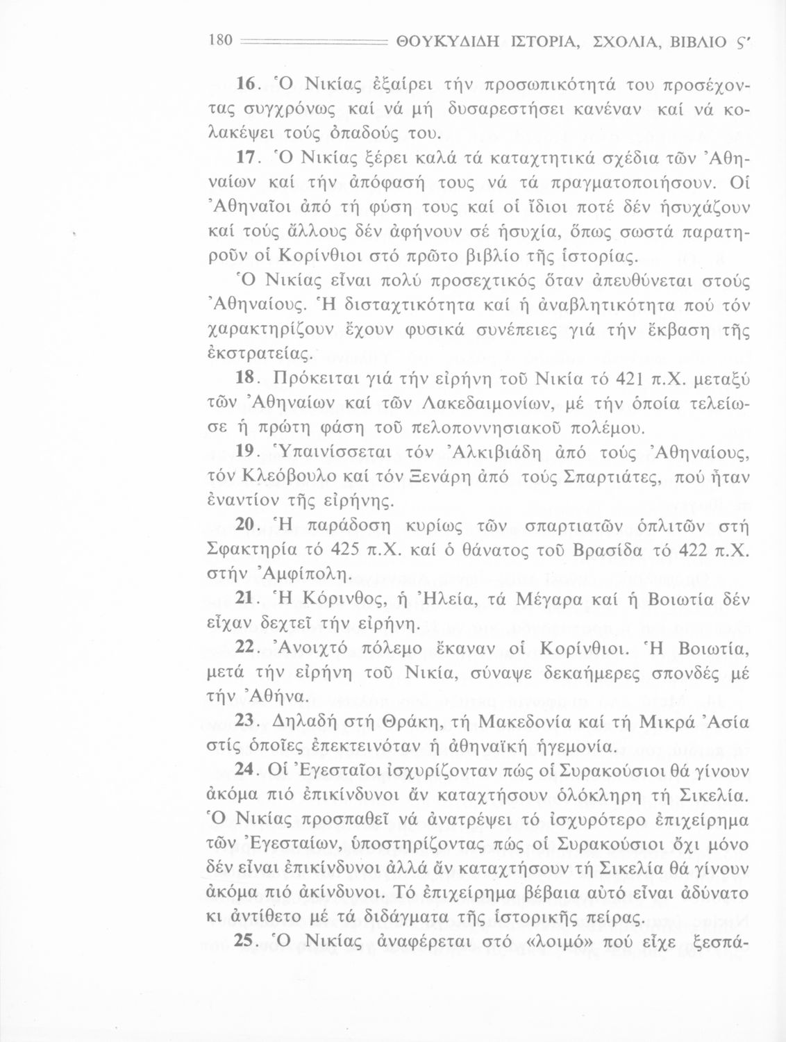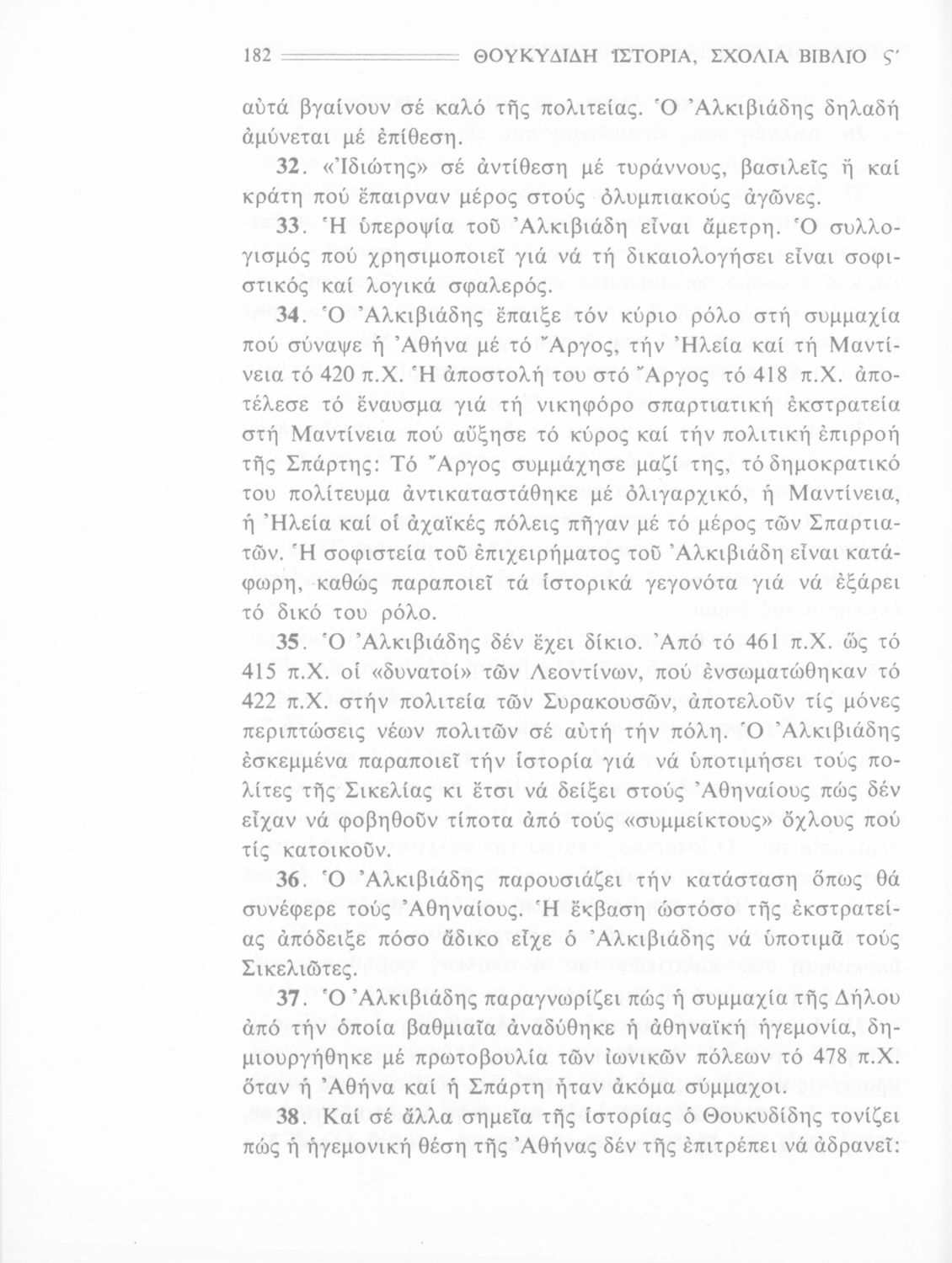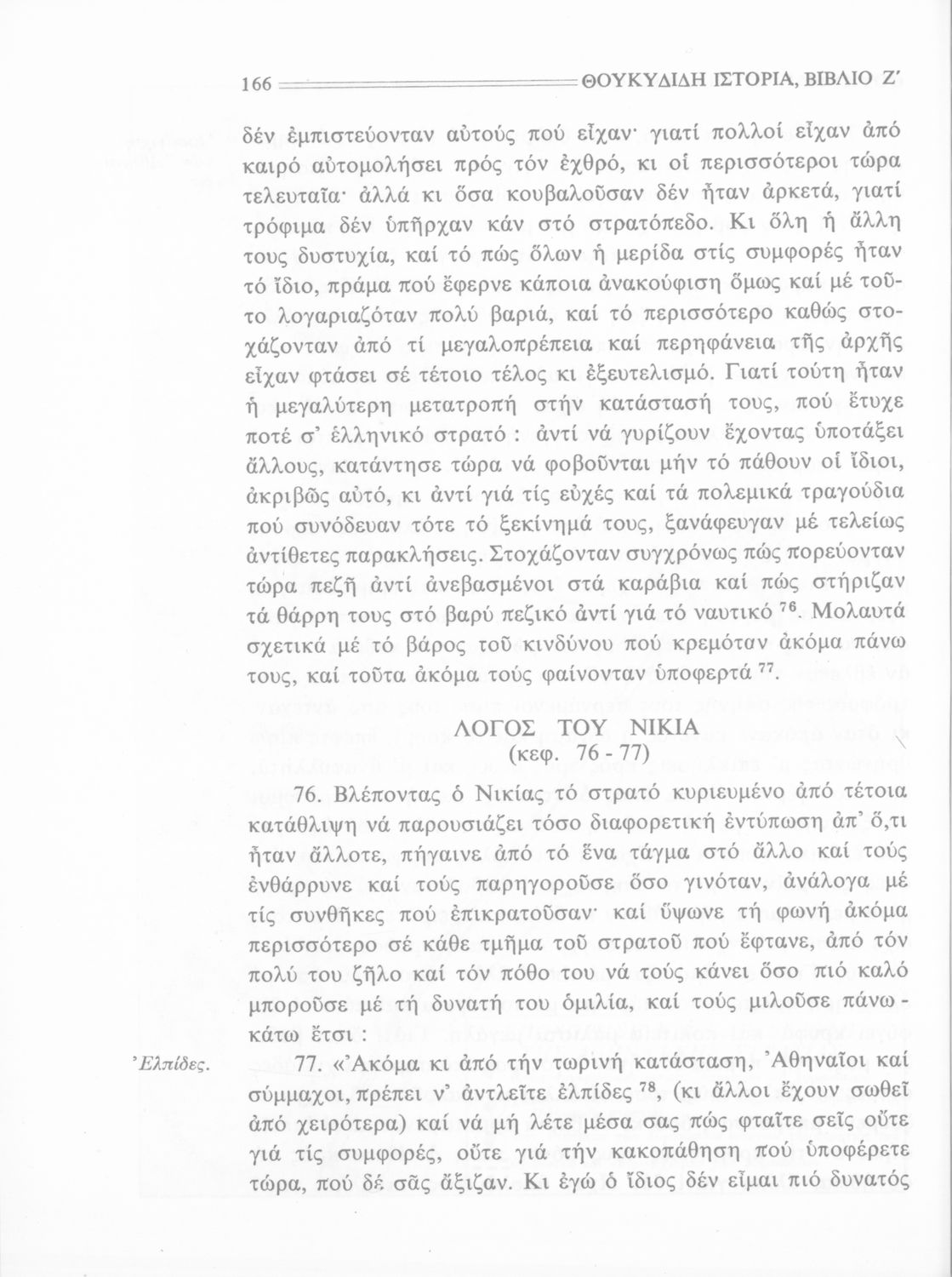 Σχολικό εγχειρίδιο Αρχαίων Ελληνικών Β΄ Γυμνασίου που περιλαμβάνει την μετάφραση των βιβλίων ΣΤ΄ και Ζ΄ της Ιστορίας του Θουκυδίδη, εισαγωγή στη ζωή και το έργο του, και ερμηνευτικά και πραγματολογικά σχόλια.