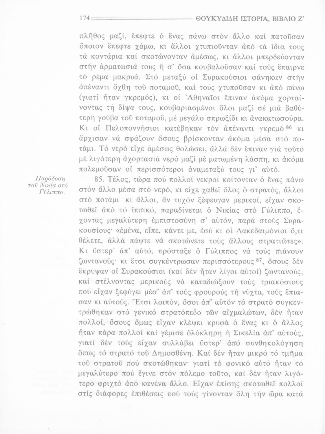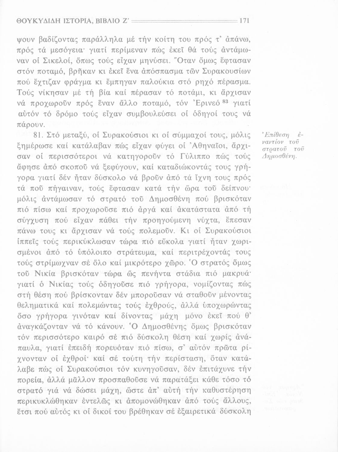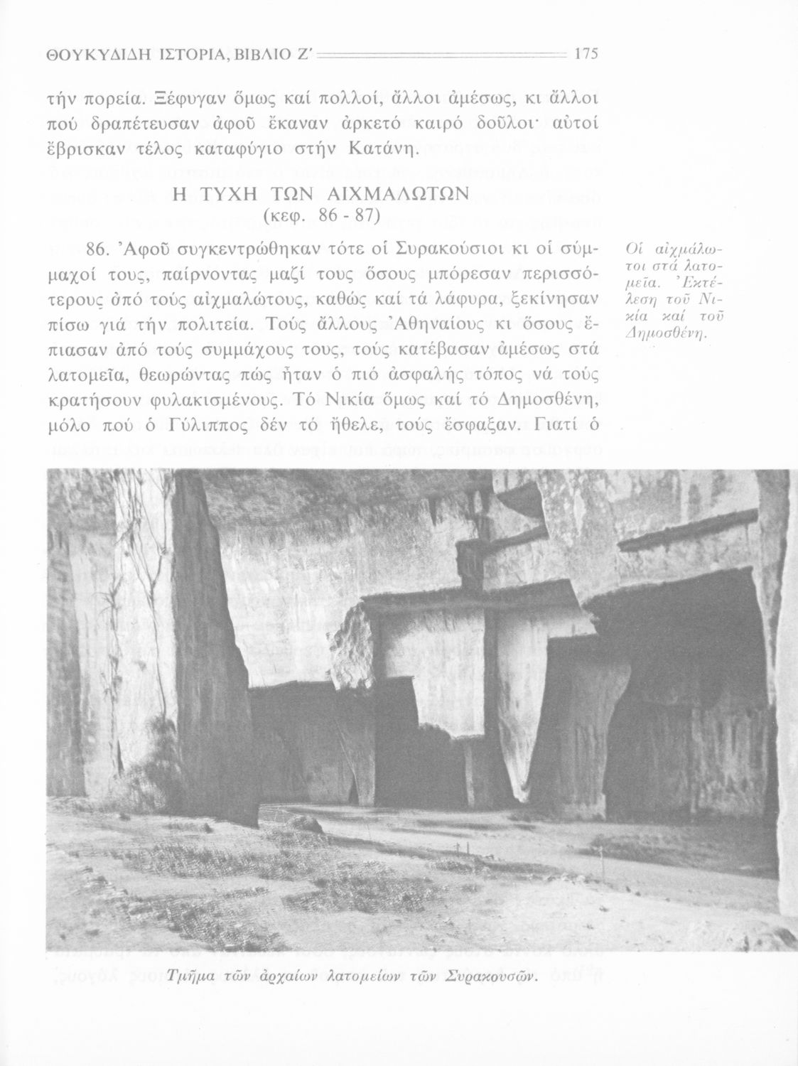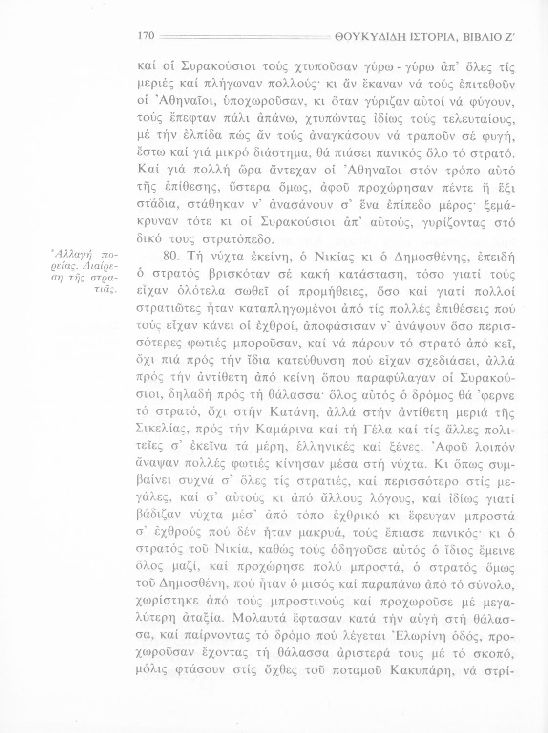 Σχολικό εγχειρίδιο Αρχαίων Ελληνικών Β΄ Γυμνασίου που περιλαμβάνει την μετάφραση των βιβλίων ΣΤ΄ και Ζ΄ της Ιστορίας του Θουκυδίδη, εισαγωγή στη ζωή και το έργο του, και ερμηνευτικά και πραγματολογικά σχόλια.