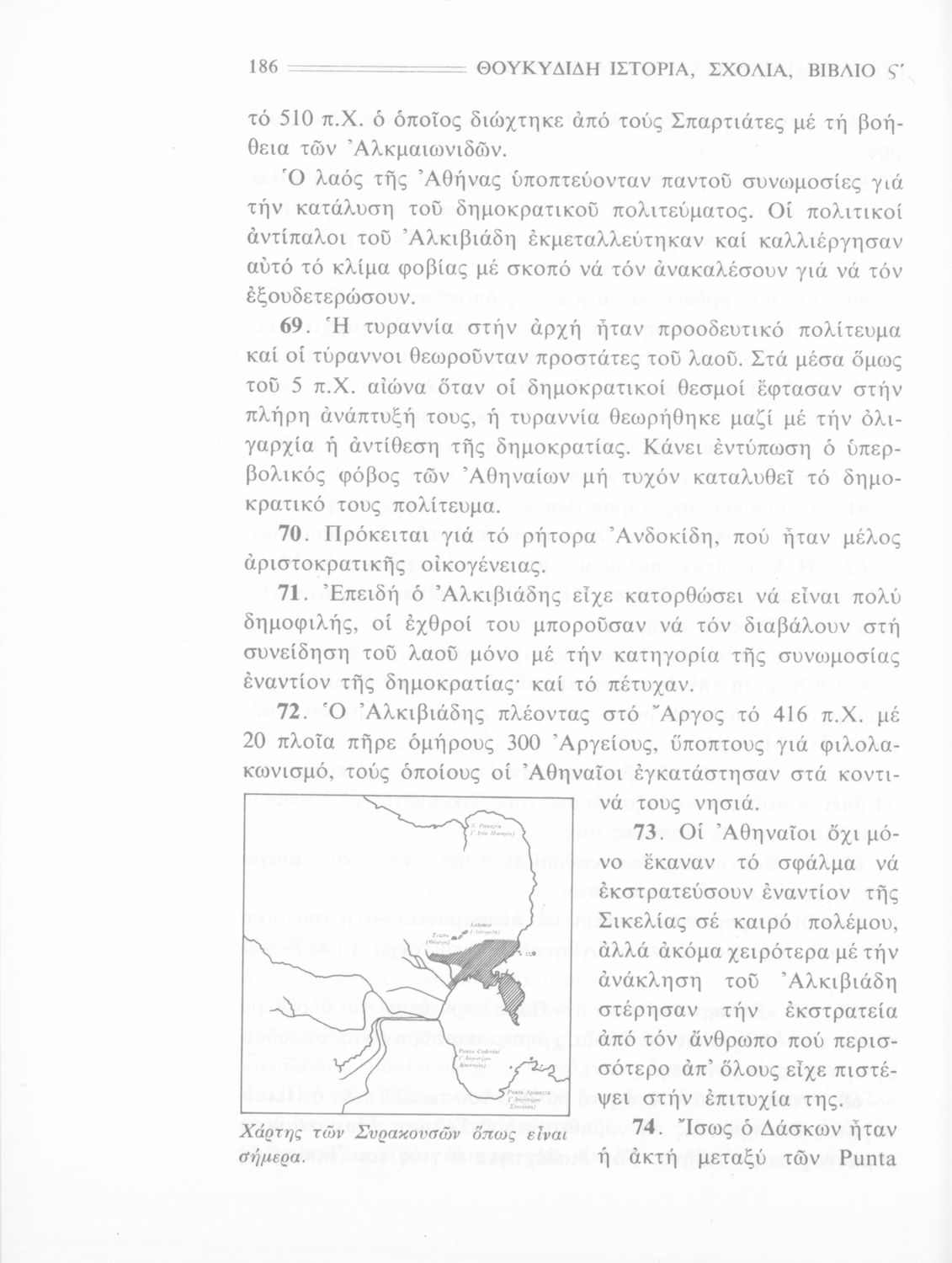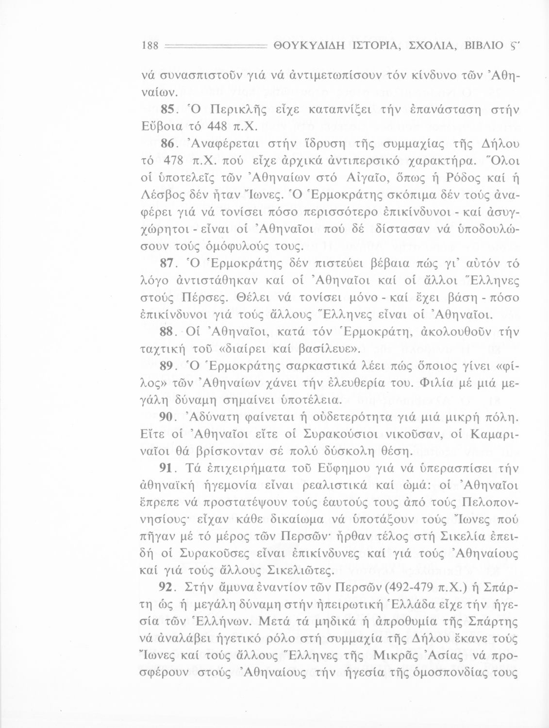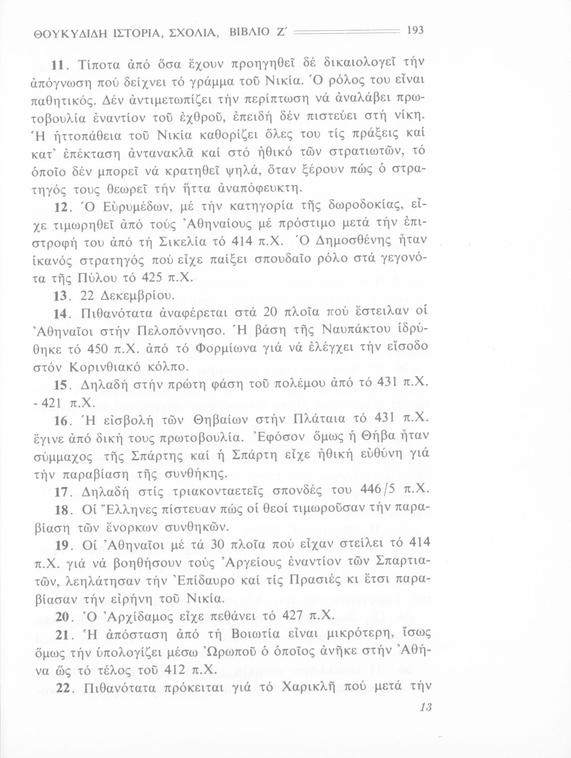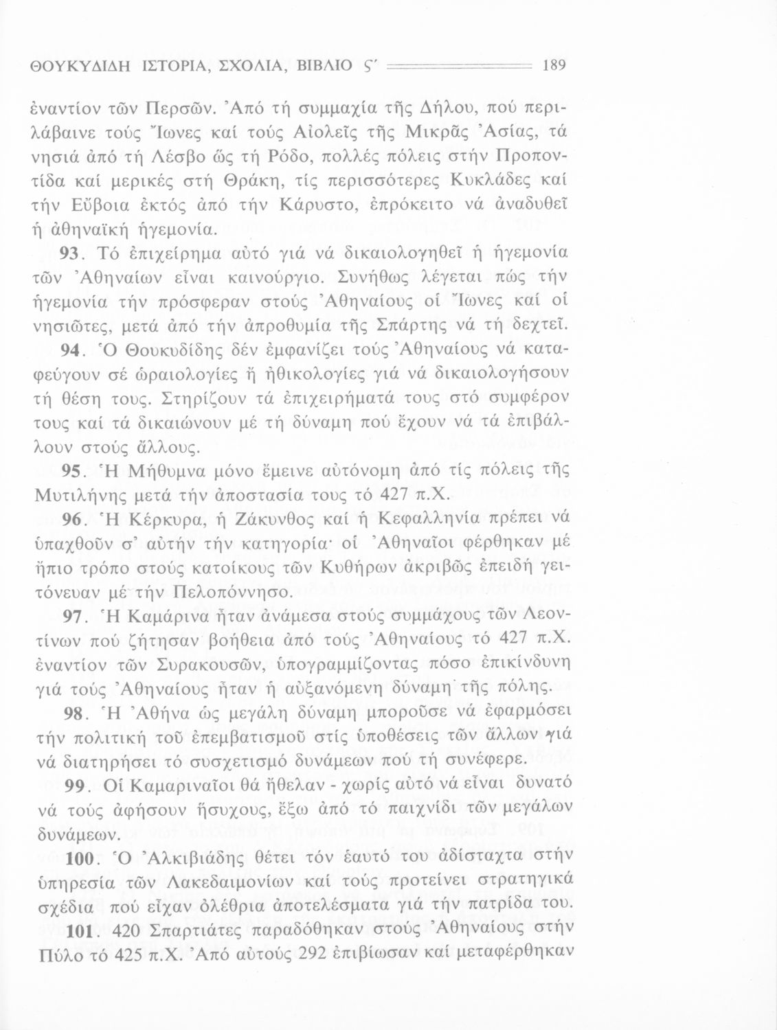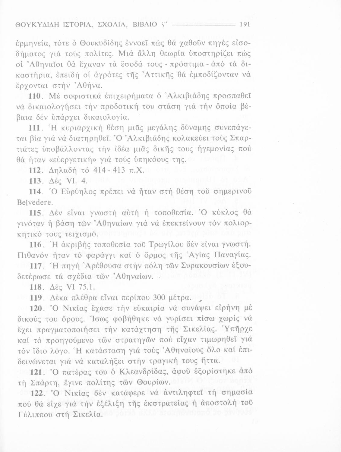 Σχολικό εγχειρίδιο Αρχαίων Ελληνικών Β΄ Γυμνασίου που περιλαμβάνει την μετάφραση των βιβλίων ΣΤ΄ και Ζ΄ της Ιστορίας του Θουκυδίδη, εισαγωγή στη ζωή και το έργο του, και ερμηνευτικά και πραγματολογικά σχόλια.