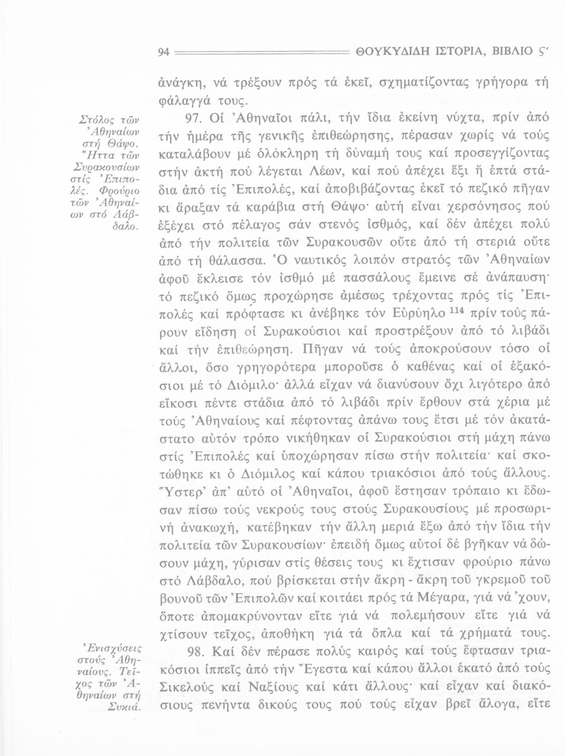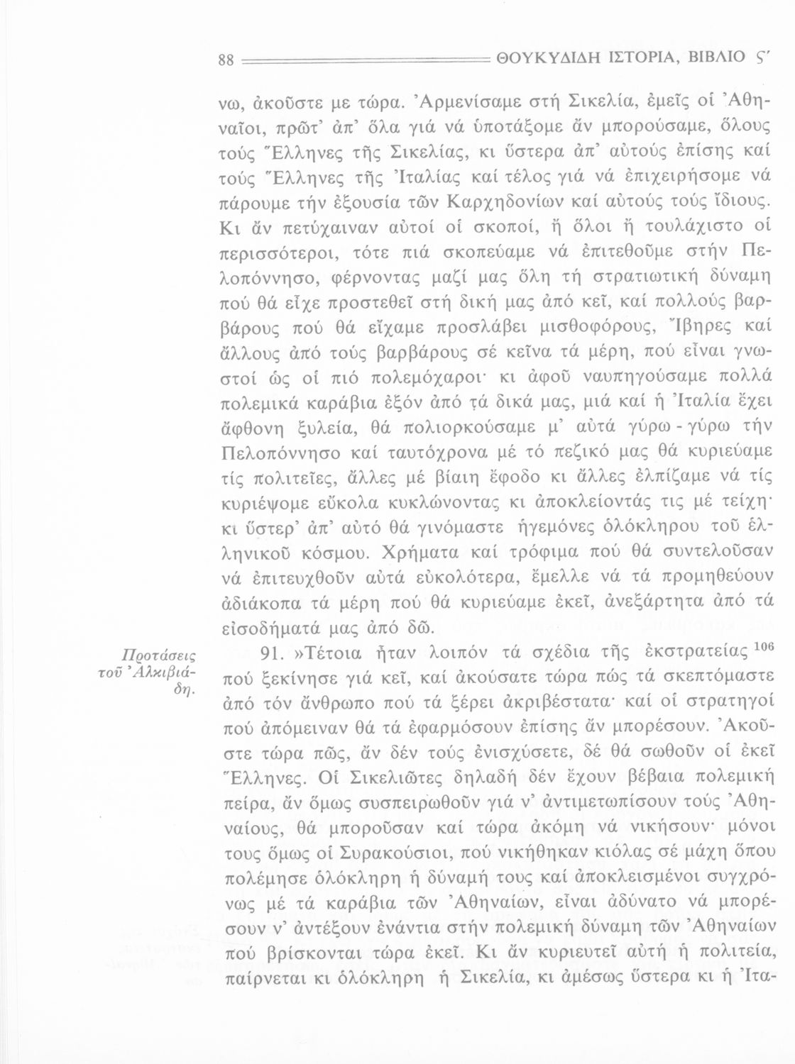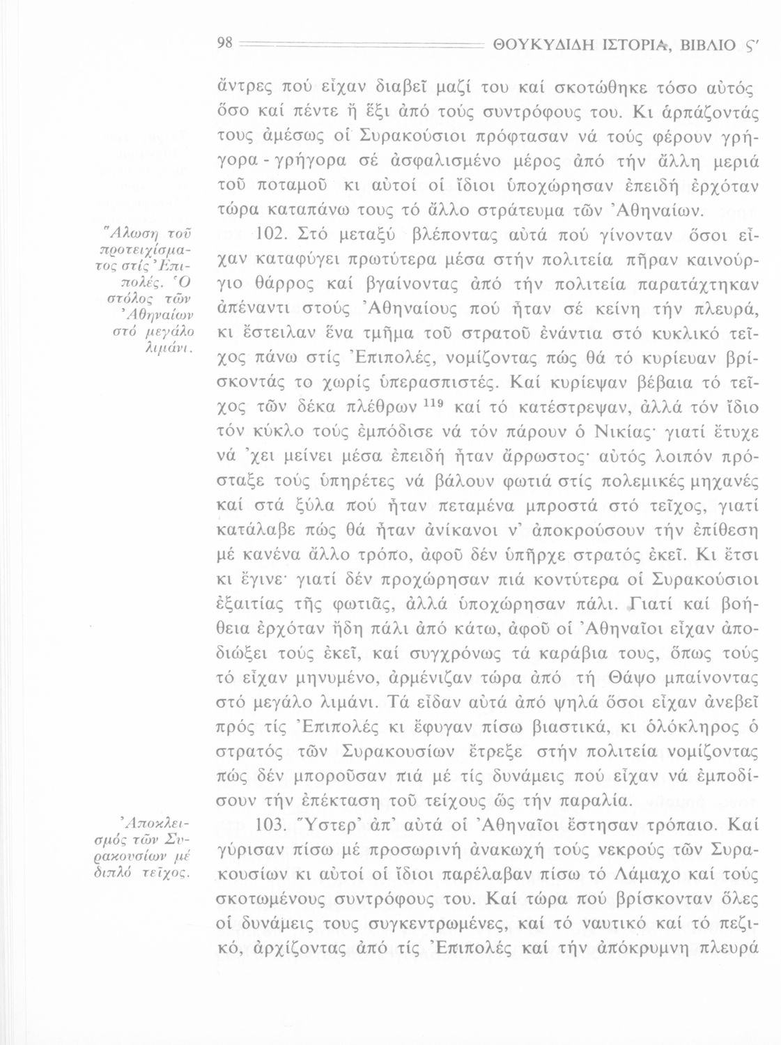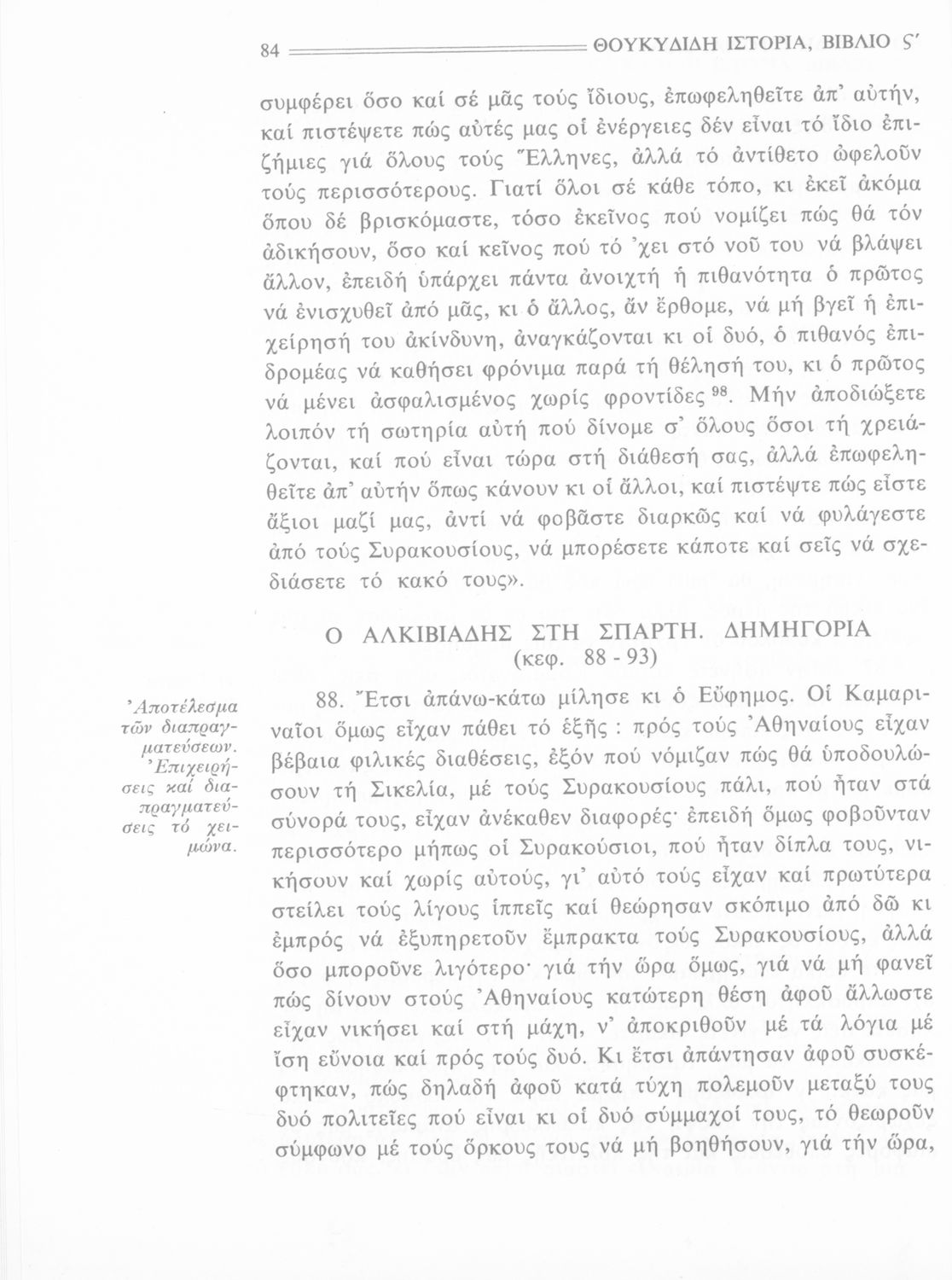 Σχολικό εγχειρίδιο Αρχαίων Ελληνικών Β΄ Γυμνασίου που περιλαμβάνει την μετάφραση των βιβλίων ΣΤ΄ και Ζ΄ της Ιστορίας του Θουκυδίδη, εισαγωγή στη ζωή και το έργο του, και ερμηνευτικά και πραγματολογικά σχόλια.