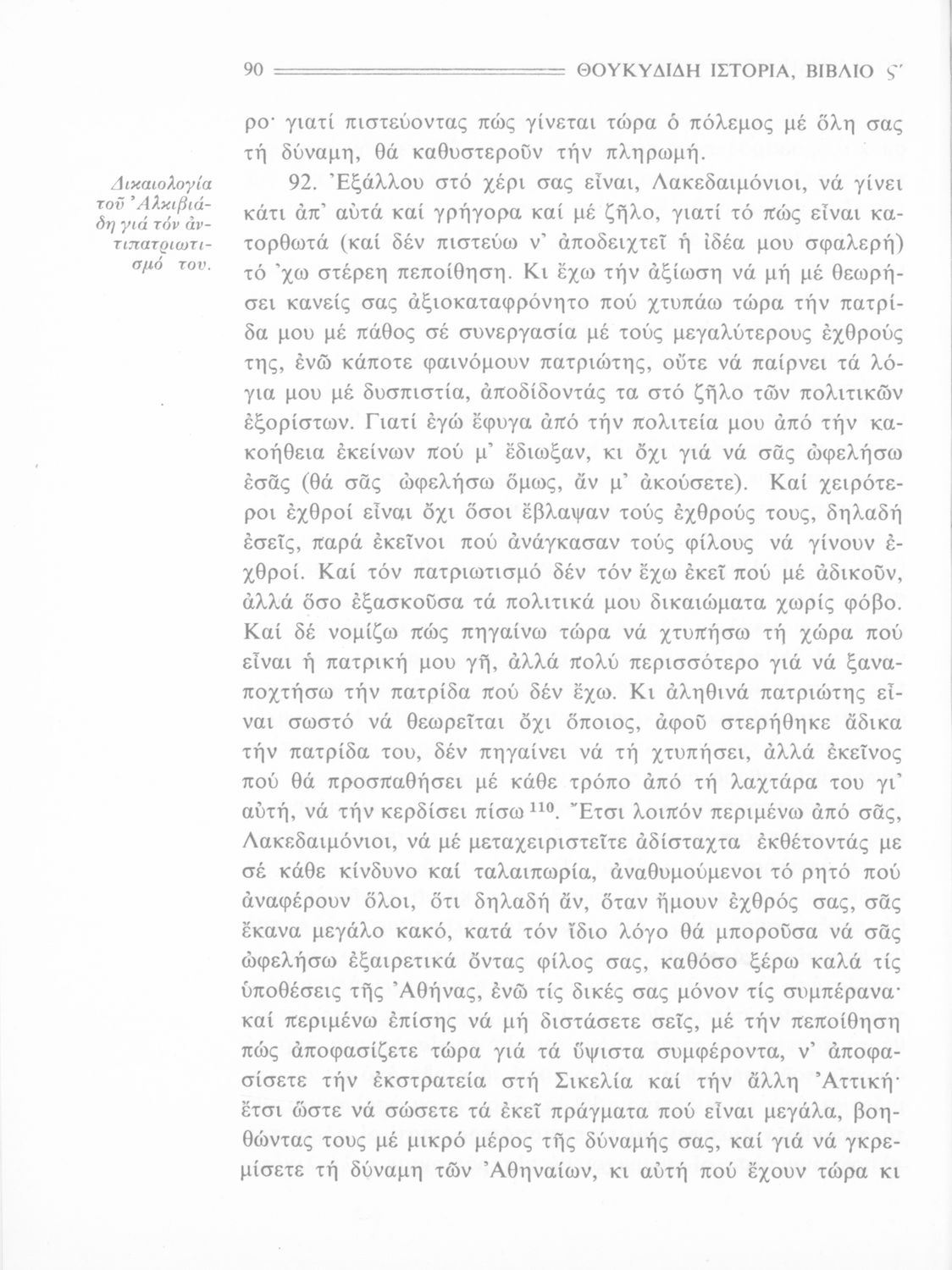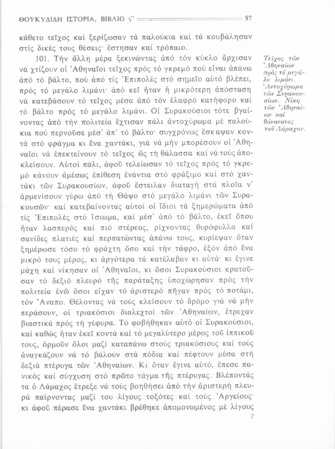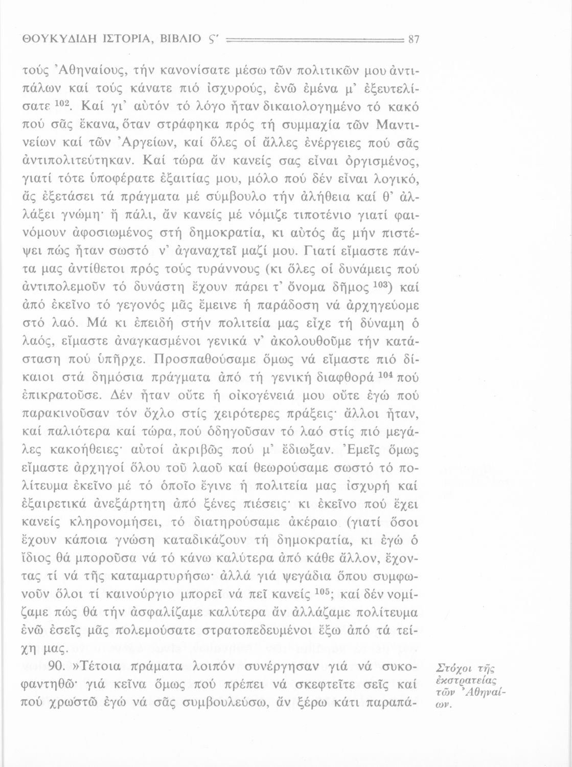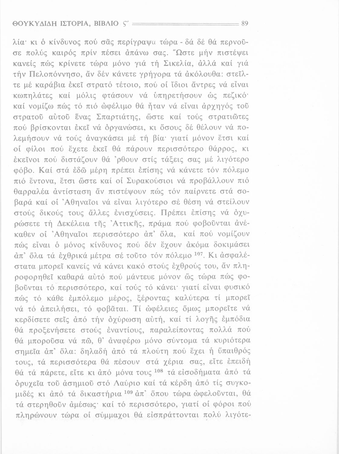 Σχολικό εγχειρίδιο Αρχαίων Ελληνικών Β΄ Γυμνασίου που περιλαμβάνει την μετάφραση των βιβλίων ΣΤ΄ και Ζ΄ της Ιστορίας του Θουκυδίδη, εισαγωγή στη ζωή και το έργο του, και ερμηνευτικά και πραγματολογικά σχόλια.