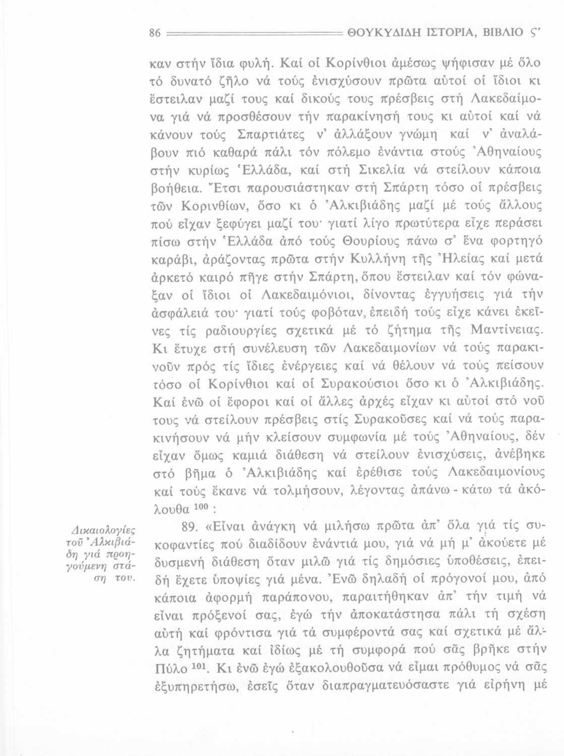 Σχολικό εγχειρίδιο Αρχαίων Ελληνικών Δ΄, Ε΄ και ΣΤ΄ Γυμνασίου που περιέχει αποσπάσματα από το έργο του Θουκυδίδη Ιστορία, ερμηνευτικά και πραγματολογικά σχόλια, και γραμματικές παρατηρήσεις.