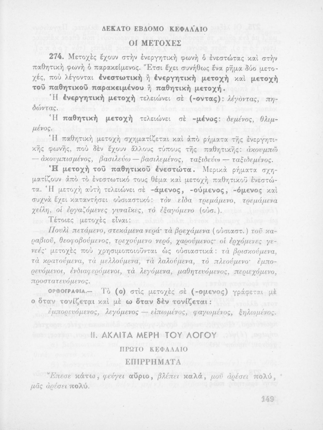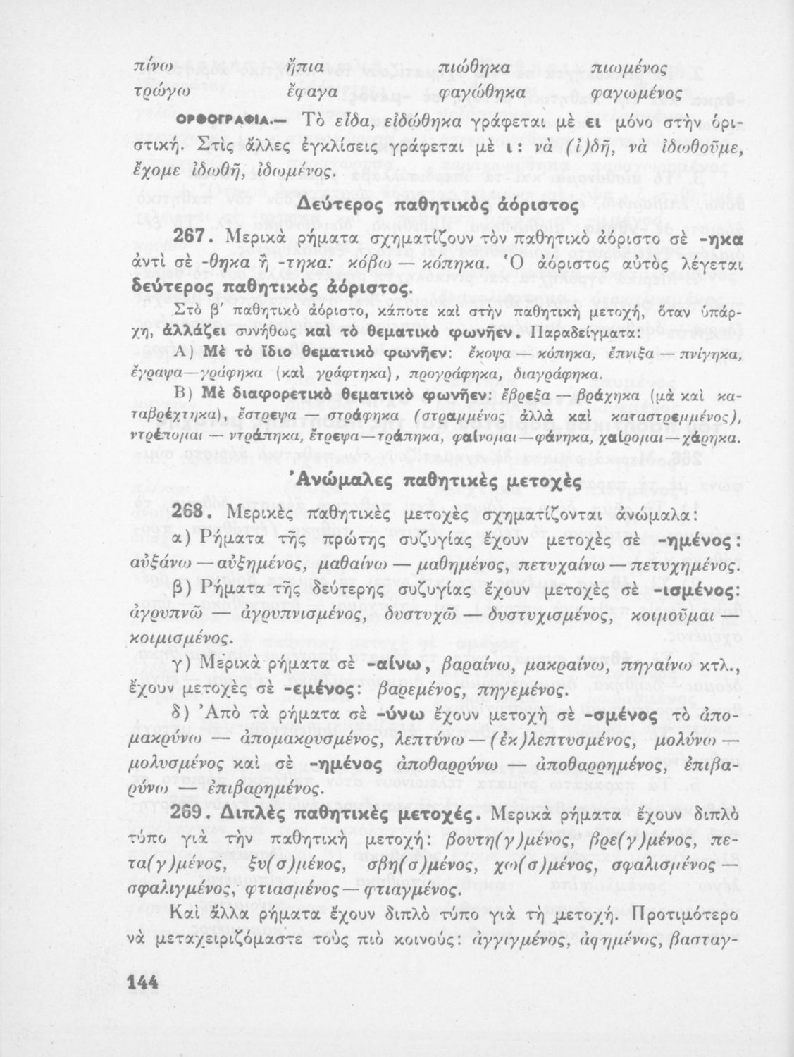 Σχολικό εγχειρίδιο για την Ε΄ και ΣΤ΄ τάξη Δημοτικού με γραμματικούς κανόνες και παραδείγματα για τα κλιτά και άκλιτα μέρη του λόγου.