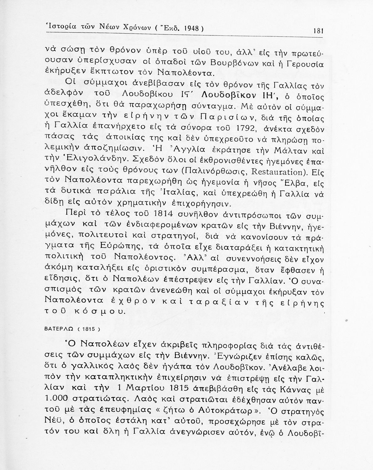 LDR 01295 2200193 4500 035 ## _a01-19811 040 ## _aΙνστιτούτο Εκπαιδευτικής Πολιτικής 041 ## _ael 100 ## _aΑ. Λαζάρου 110 ## _a19811 245 0# _aΙστορία των Νέων Χρόνων Ελληνική και Ευρωπαϊκή (1453-1821) δια την Ε' τάξιν των εξατάξιων Γυμνασίων νέου τύπου 260 ## _aΑθήνα _bΟργανισμός Εκδόσεως Σχολικών Βιβλίων _c1948 300 ## _a240 _bΣκίτσα, χάρτης, εικόνες (ασπρόμαυρα) 520 ## _aΣχολικό εγχειρίδιο Ιστορίας Ε΄ Γυμνασίου που καλύπτει την περίοδο της Αναγέννησης και του Διαφωτισμού στην Ευρώπη και την προετοιμασία της Ελληνικής Επανάστασης. 521 ## _aΕ' Γυμνασίου 522 ## _aΕλλάδα 546 ## _aΑπλή καθαρεύουσα 563 ## _aΜαλακό Εξώφυλλο 650 #4 _aΑνακαλύψεις _aΓαλλική Επανάσταση _aΕλληνική Επανάσταση _aΘρησκευτική μεταρρύθμιση _aΚατσώνης _aΝαπολέοντας