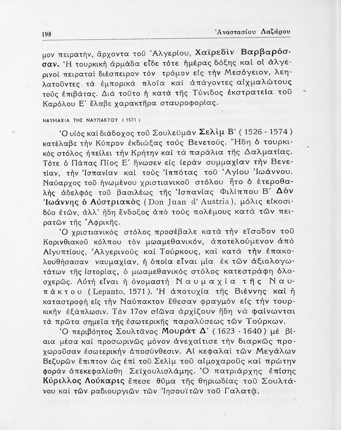 Κωδικός αναγνώρισης: 01-19811 Τίτλος: Ιστορία των Νέων Χρόνων Ελληνική και Ευρωπαϊκή (1453-1821) δια την Ε' τάξιν των εξατάξιων Γυμνασίων νέου τύπου Συγγραφέας: Α. Λαζάρου Μέγεθος και υπόστρωμα: Σχολικό εγχειρίδιο, μαλακό εξώφυλλο, 240 σελίδες. Σκίτσα, χάρτης, εικόνες (ασπρόμαυρα). |
