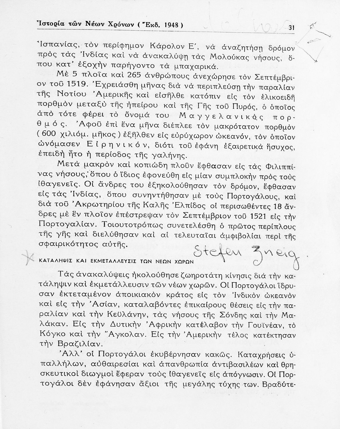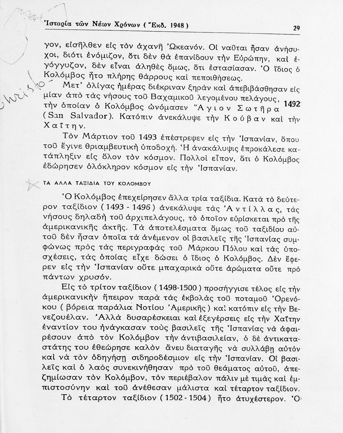 LDR 01295 2200193 4500 035 ## _a01-19811 040 ## _aΙνστιτούτο Εκπαιδευτικής Πολιτικής 041 ## _ael 100 ## _aΑ. Λαζάρου 110 ## _a19811 245 0# _aΙστορία των Νέων Χρόνων Ελληνική και Ευρωπαϊκή (1453-1821) δια την Ε' τάξιν των εξατάξιων Γυμνασίων νέου τύπου 260 ## _aΑθήνα _bΟργανισμός Εκδόσεως Σχολικών Βιβλίων _c1948 300 ## _a240 _bΣκίτσα, χάρτης, εικόνες (ασπρόμαυρα) 520 ## _aΣχολικό εγχειρίδιο Ιστορίας Ε΄ Γυμνασίου που καλύπτει την περίοδο της Αναγέννησης και του Διαφωτισμού στην Ευρώπη και την προετοιμασία της Ελληνικής Επανάστασης. 521 ## _aΕ' Γυμνασίου 522 ## _aΕλλάδα 546 ## _aΑπλή καθαρεύουσα 563 ## _aΜαλακό Εξώφυλλο 650 #4 _aΑνακαλύψεις _aΓαλλική Επανάσταση _aΕλληνική Επανάσταση _aΘρησκευτική μεταρρύθμιση _aΚατσώνης _aΝαπολέοντας