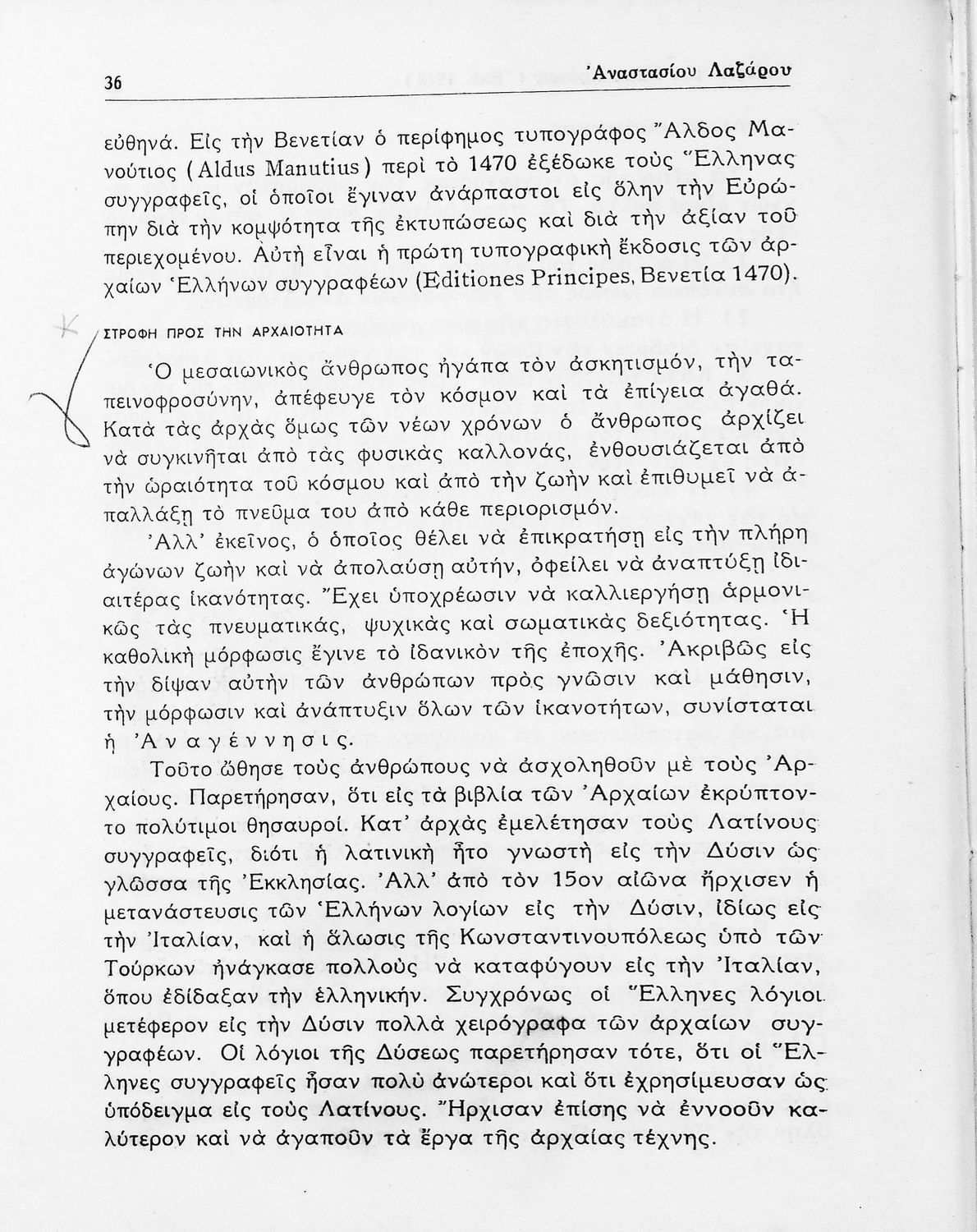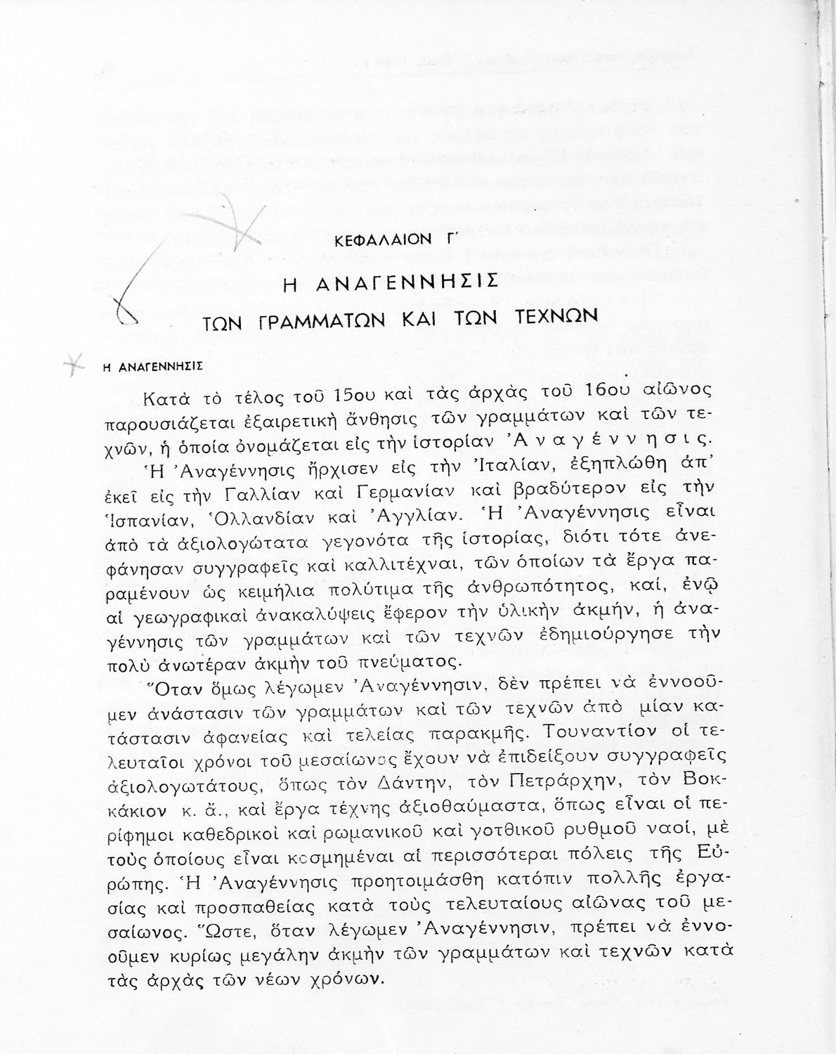Βαθμίδα εκπαίδευσης: Δευτεροβάθμια Τάξη: Ε' Γυμνασίου Μάθημα: Ιστορία Γλώσσα: Απλή καθαρεύουσα Παρουσίαση περιεχομένου: Σχολικό εγχειρίδιο Ιστορίας Ε΄ Γυμνασίου που καλύπτει την περίοδο της Αναγέννησης και του Διαφωτισμού στην Ευρώπη και την προετοιμασία της Ελληνικής Επανάστασης. |