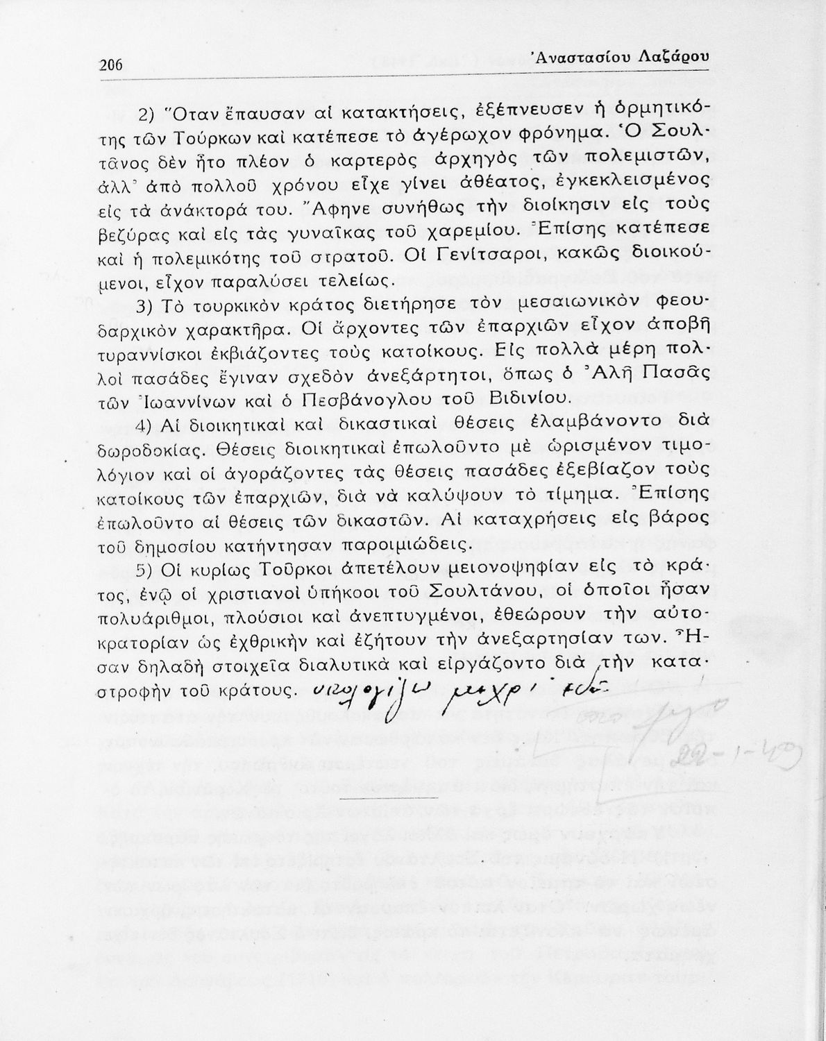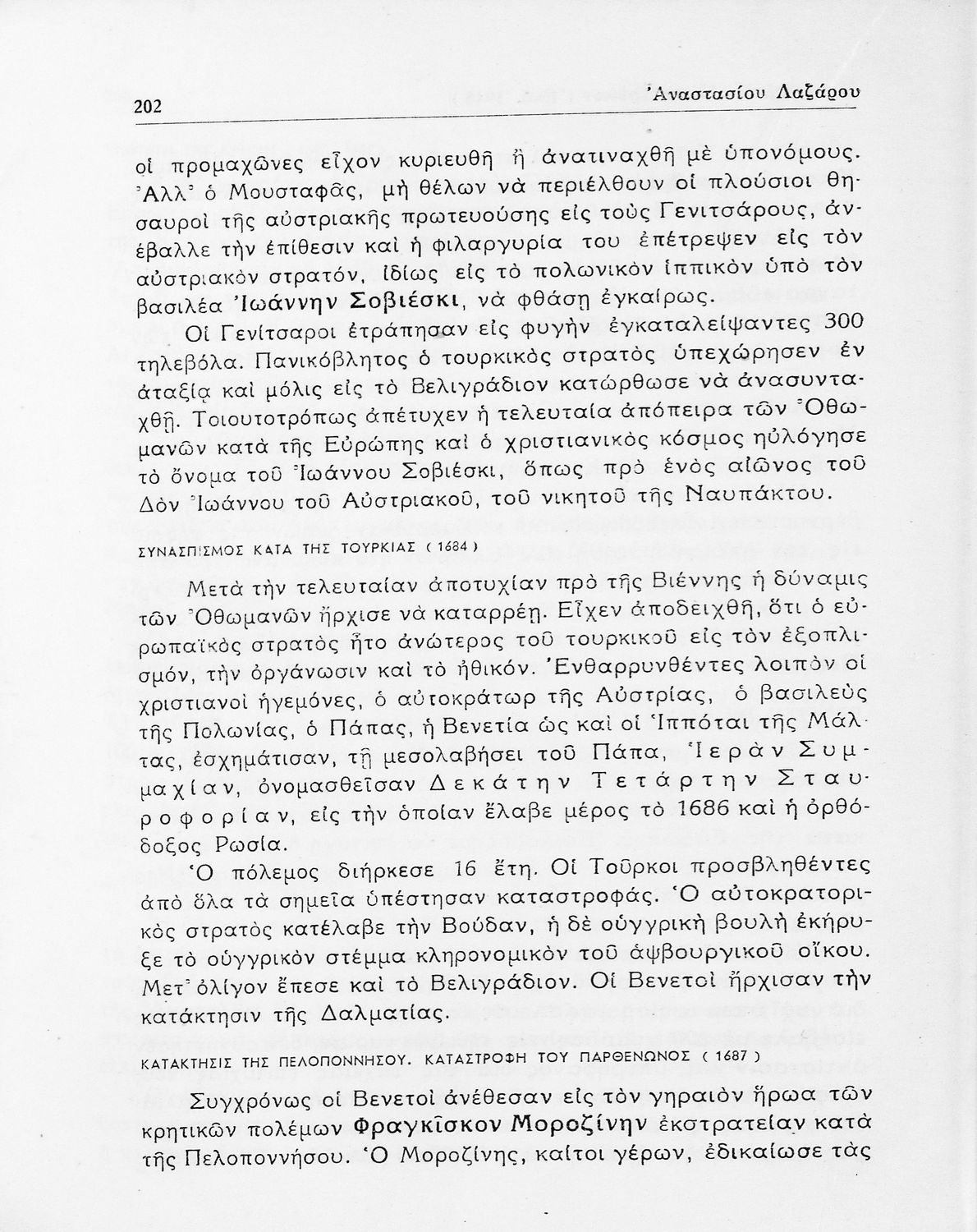 Κωδικός αναγνώρισης: 01-19811 Τίτλος: Ιστορία των Νέων Χρόνων Ελληνική και Ευρωπαϊκή (1453-1821) δια την Ε' τάξιν των εξατάξιων Γυμνασίων νέου τύπου Συγγραφέας: Α. Λαζάρου Μέγεθος και υπόστρωμα: Σχολικό εγχειρίδιο, μαλακό εξώφυλλο, 240 σελίδες. Σκίτσα, χάρτης, εικόνες (ασπρόμαυρα). |