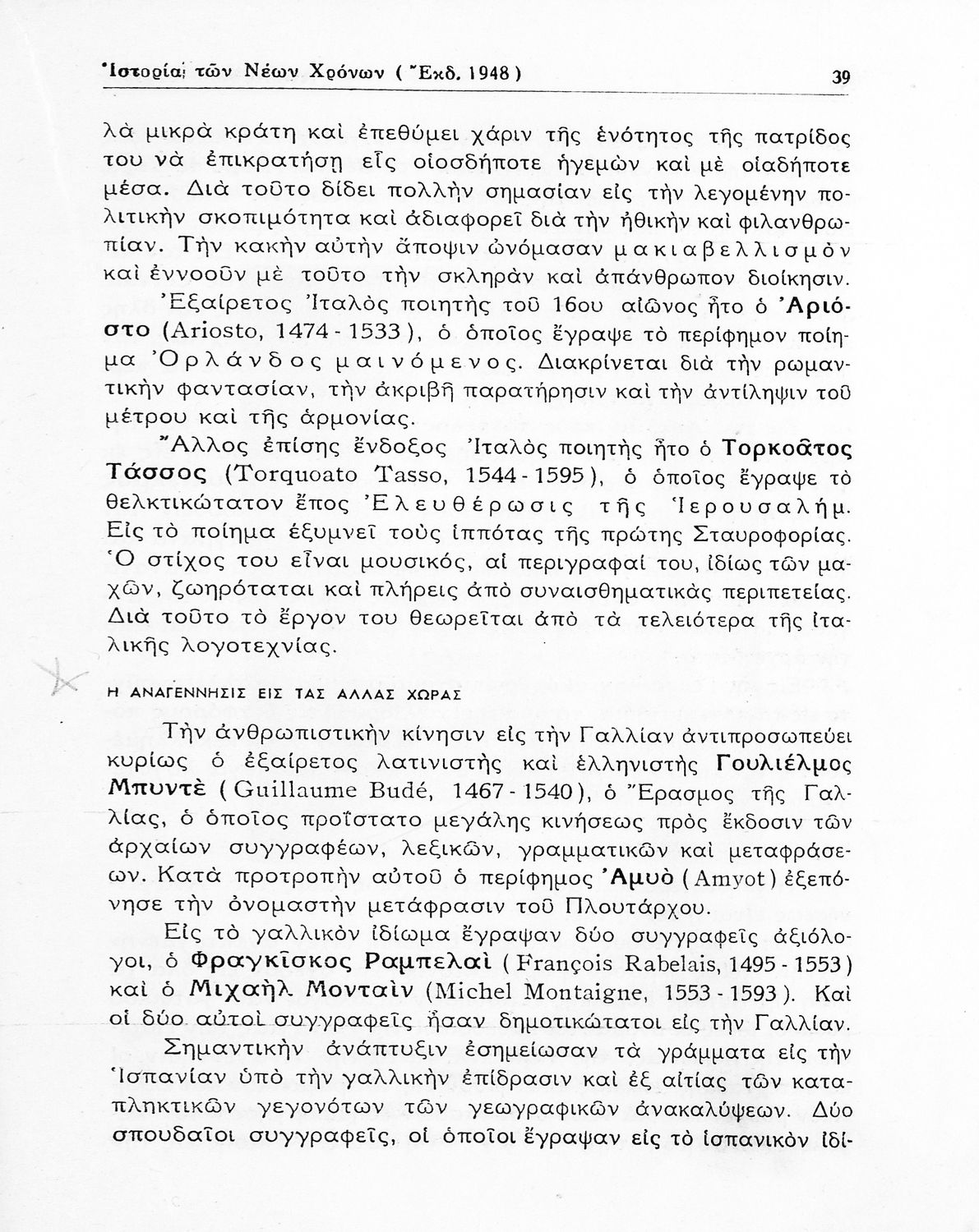 Ιστορία των Νέων Χρόνων Ελληνική και Ευρωπαϊκή (1453-1821) δια την Ε' τάξιν των εξατάξιων Γυμνασίων νέου τύπου