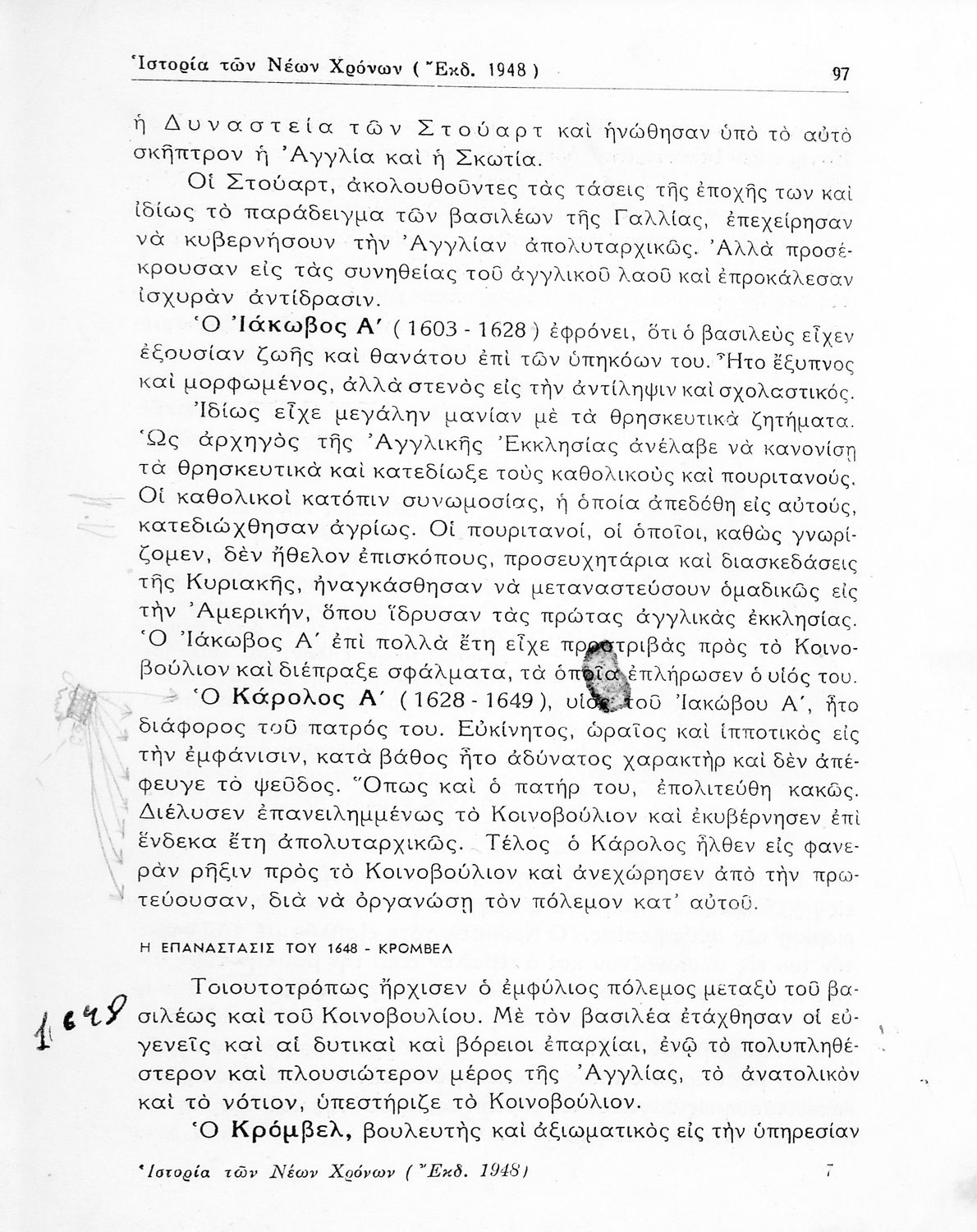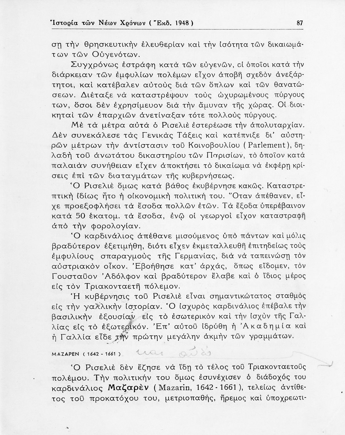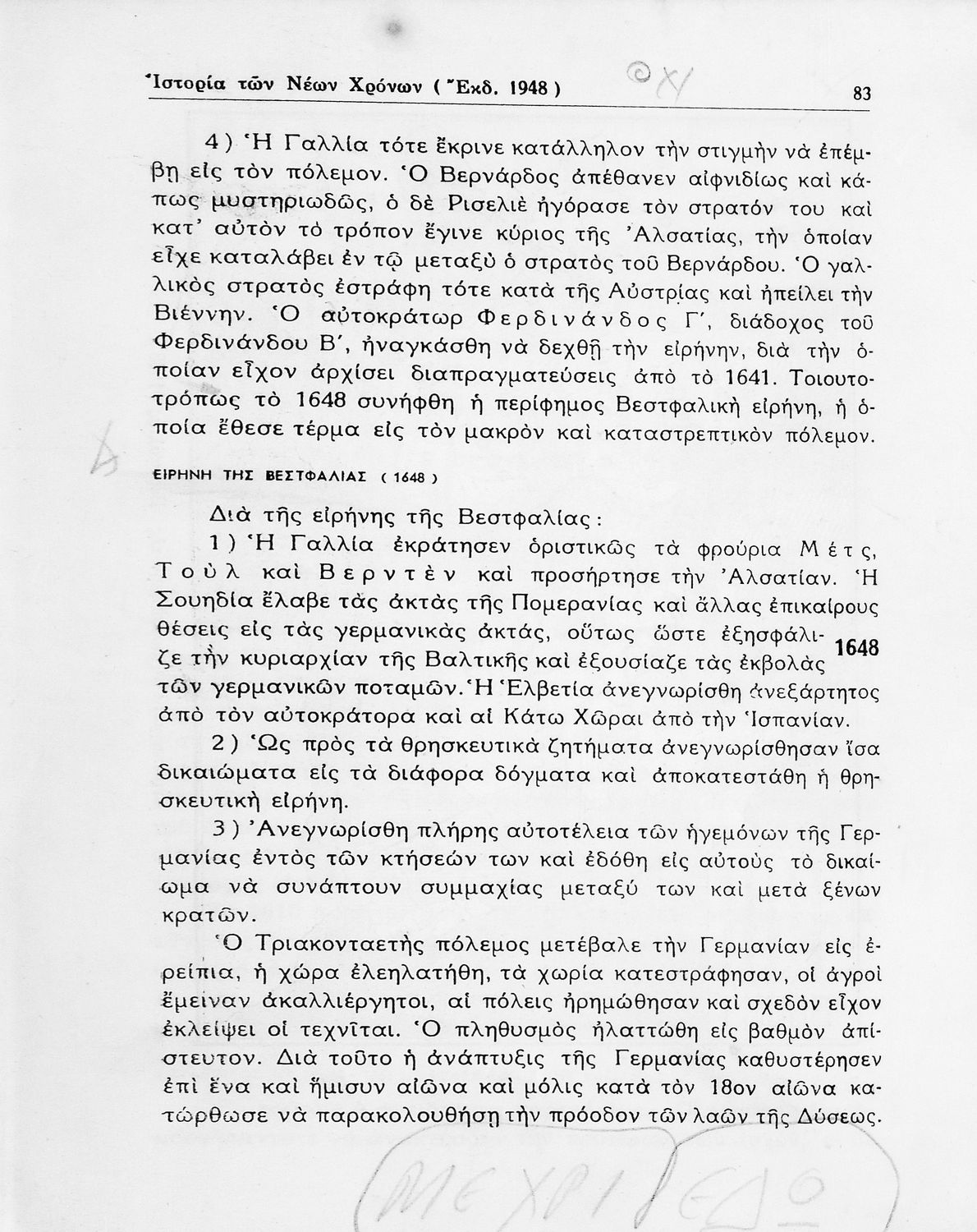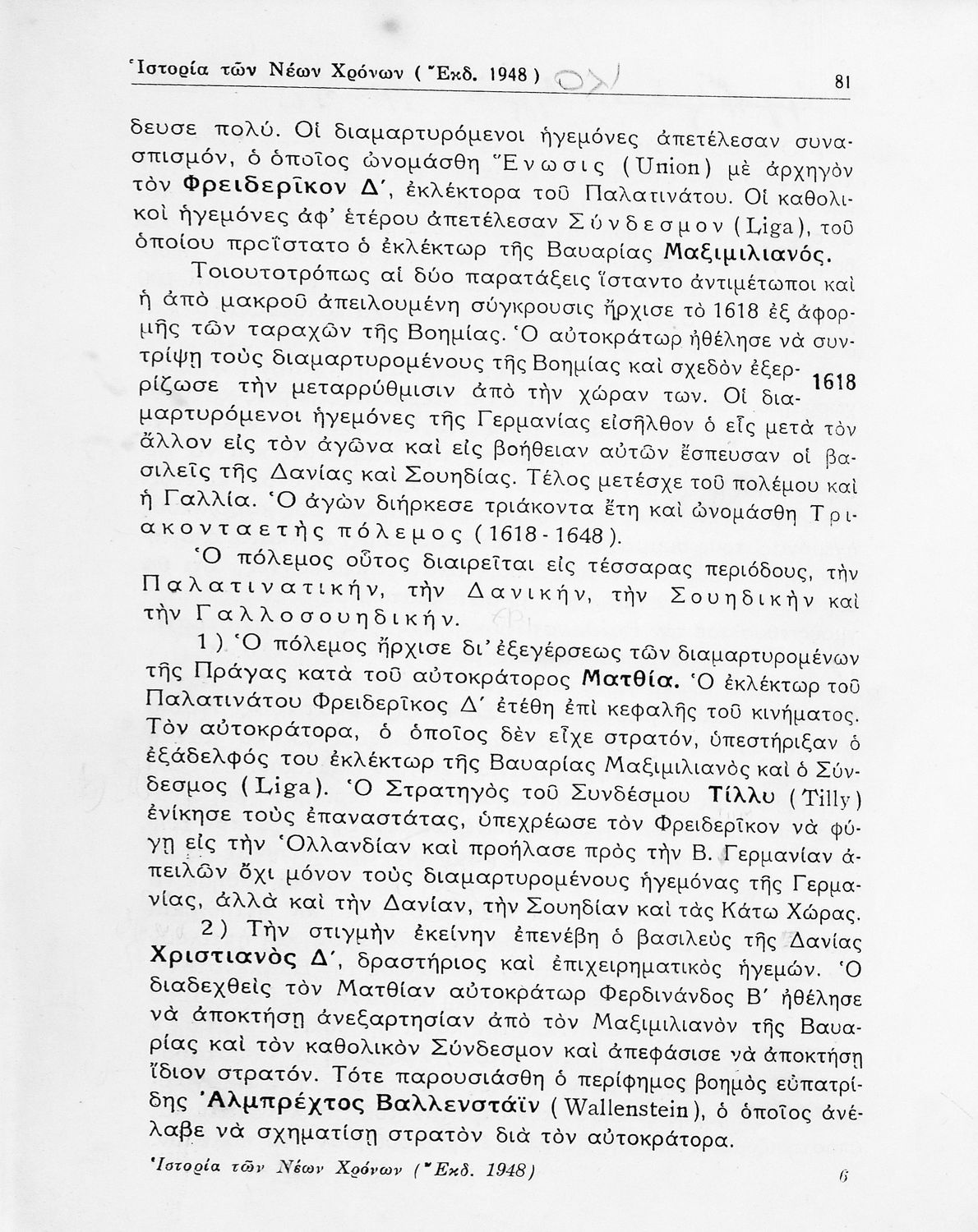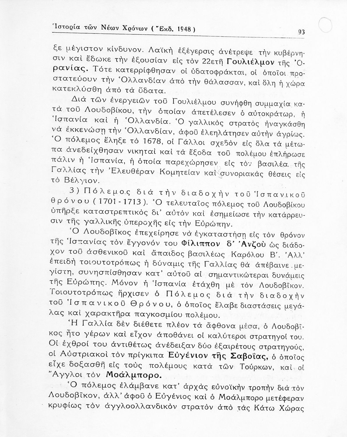 Ιστορία των Νέων Χρόνων Ελληνική και Ευρωπαϊκή (1453-1821) δια την Ε' τάξιν των εξατάξιων Γυμνασίων νέου τύπου