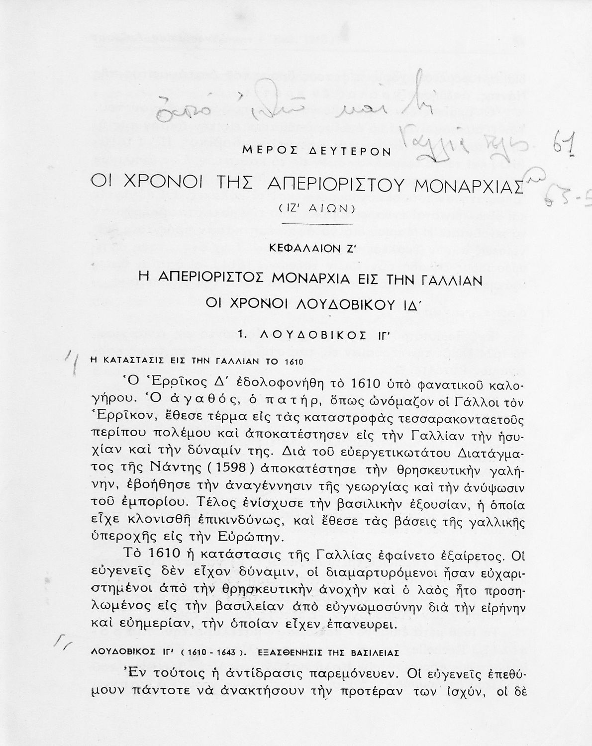 Τίτλος: Ιστορία των Νέων Χρόνων Ελληνική και Ευρωπαϊκή (1453-1821) δια την Ε' τάξιν των εξατάξιων Γυμνασίων νέου τύπου