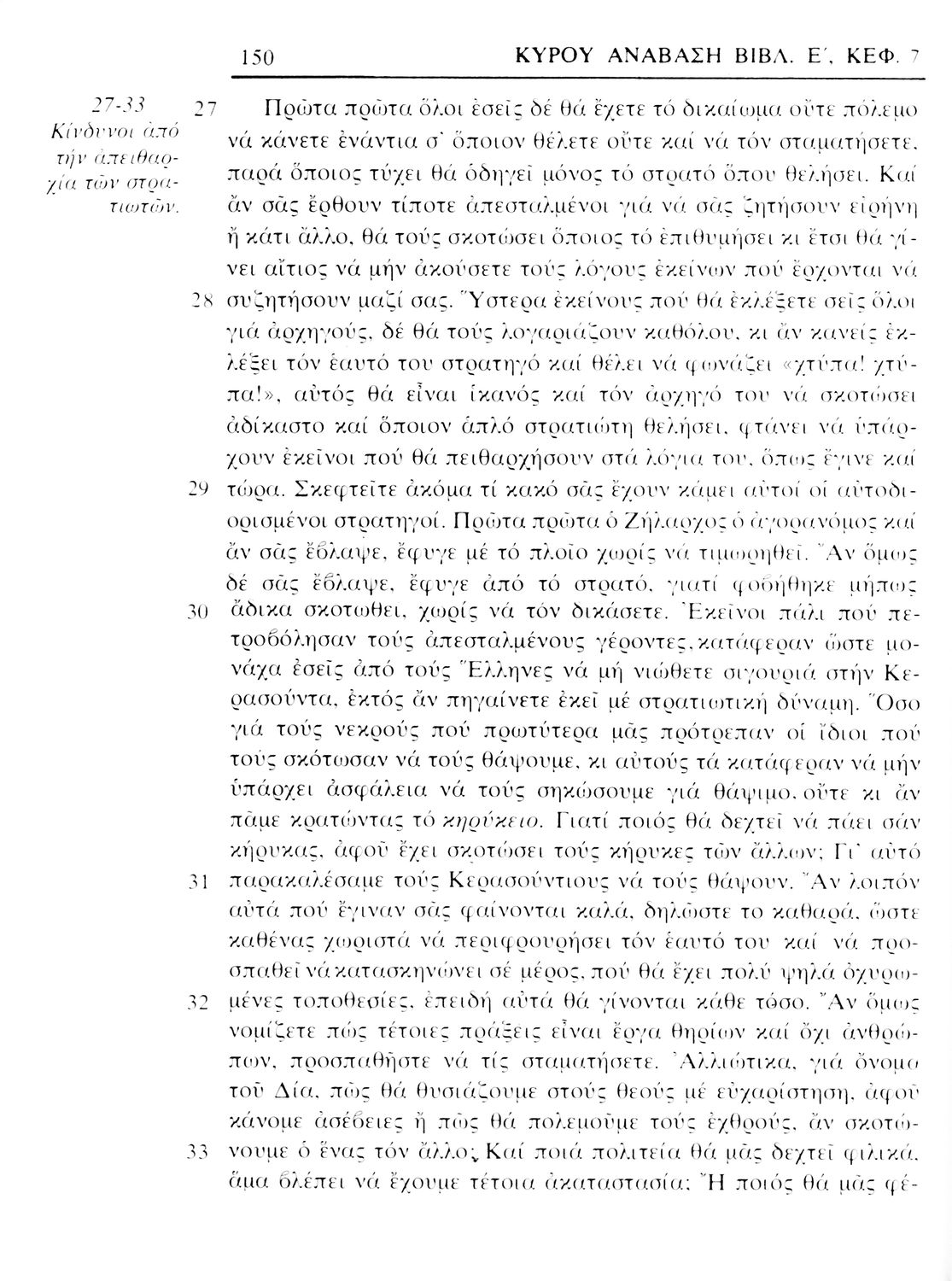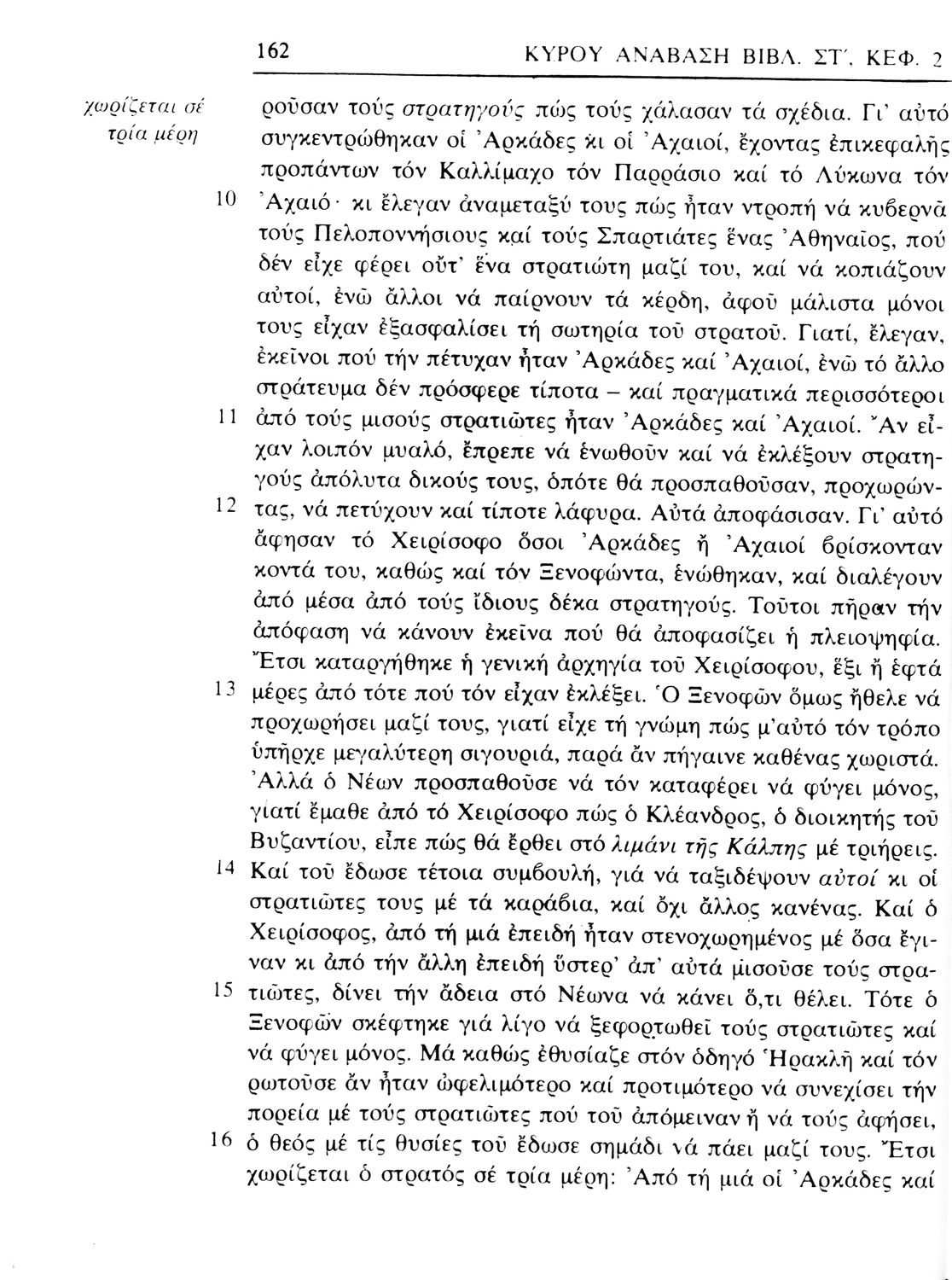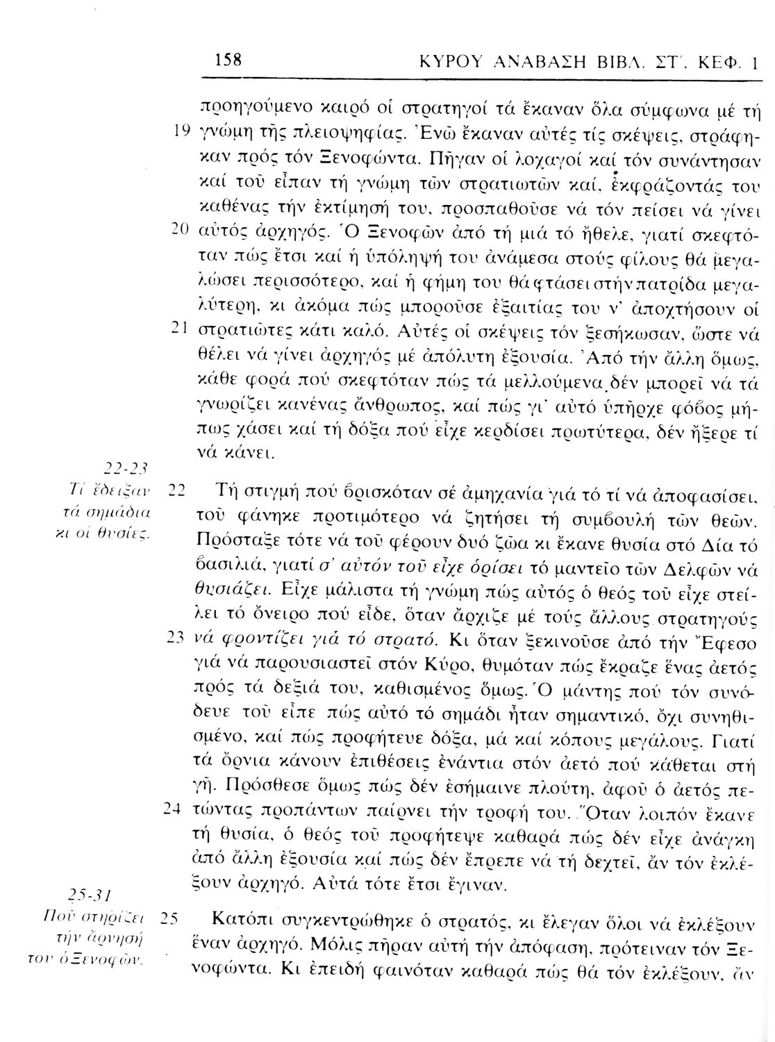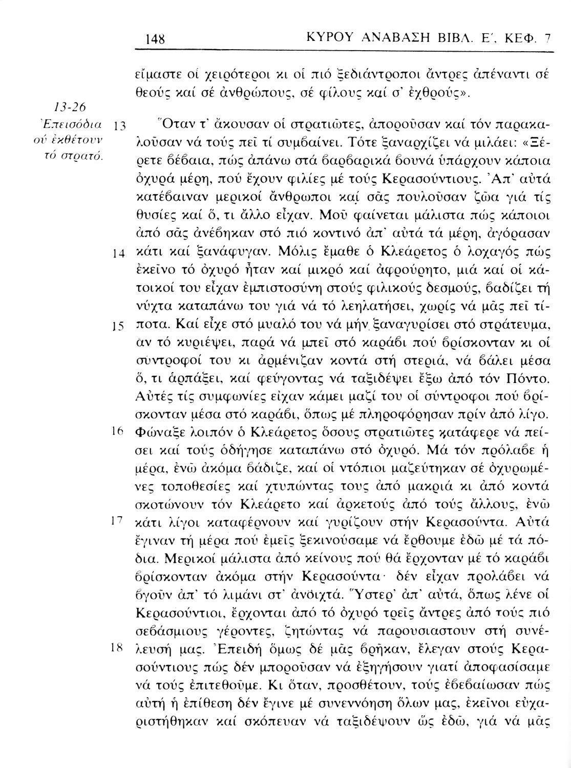 Σχολικό εγχειρίδιο Αρχαίων Ελληνικών α΄ Γυμνασίου που περιλαμβάνει μετάφραση του έργου του Ξενοφώντα Κύρου Ανάβασις, εισαγωγικά σχόλια για τη ζωή και το έργο του, και ερμηνευτικές παρατηρήσεις.