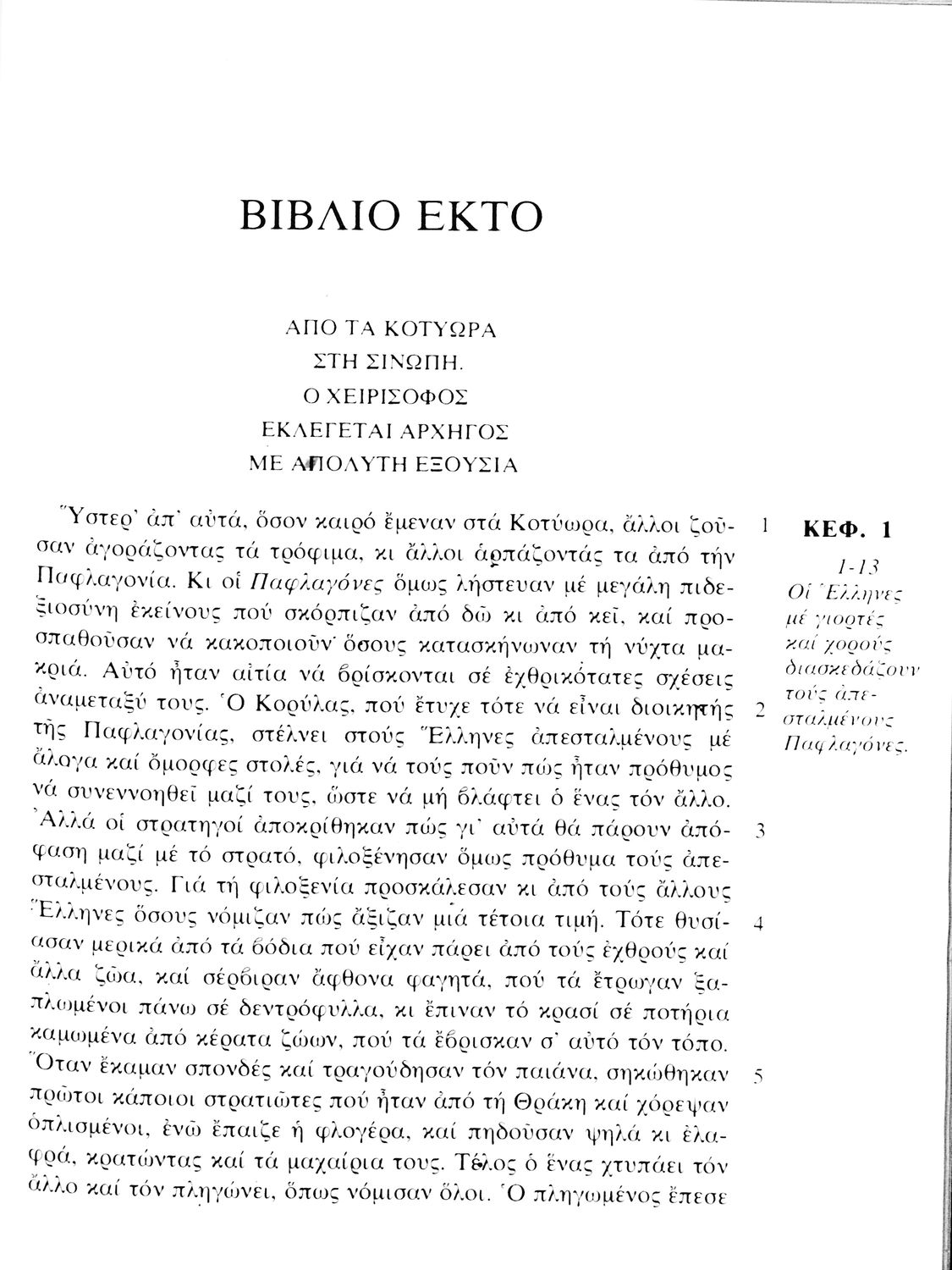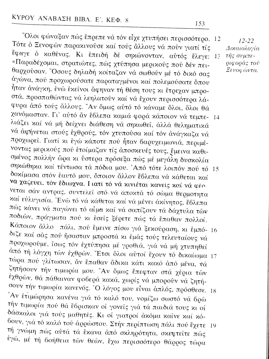 Σχολικό Εγχειρίδιο Αρχαίων Ελληνικών της Β' Γυμνασίου. Το βιβλίο αναφέρεται στο σύγγραμμα του Ξενοφώντα για την εκστρατεία του Κύρου κατά του Αρταξέρξη και κυρίως την κάθοδο ( επιστροφή) των Μυρίων. Στο ...