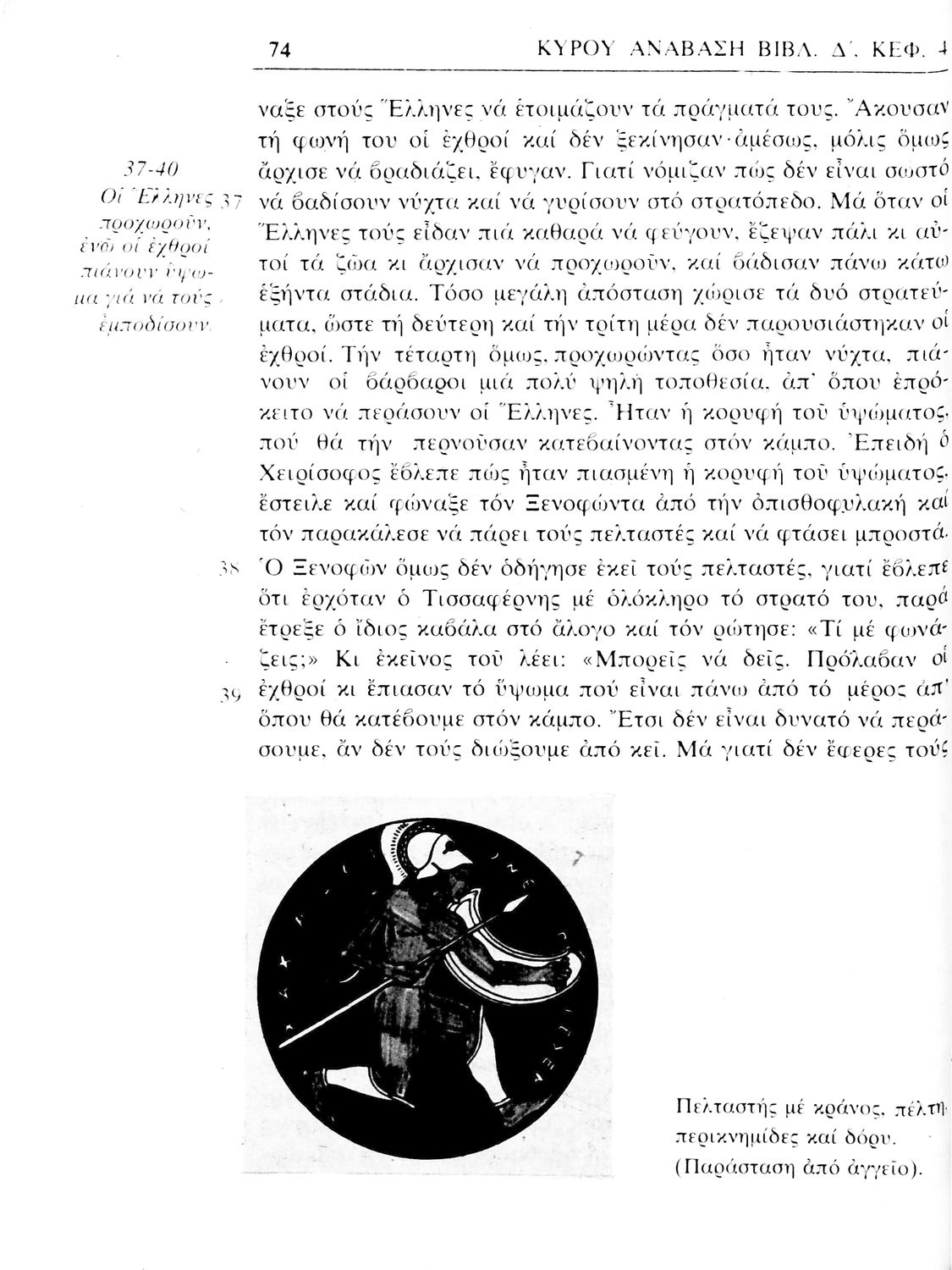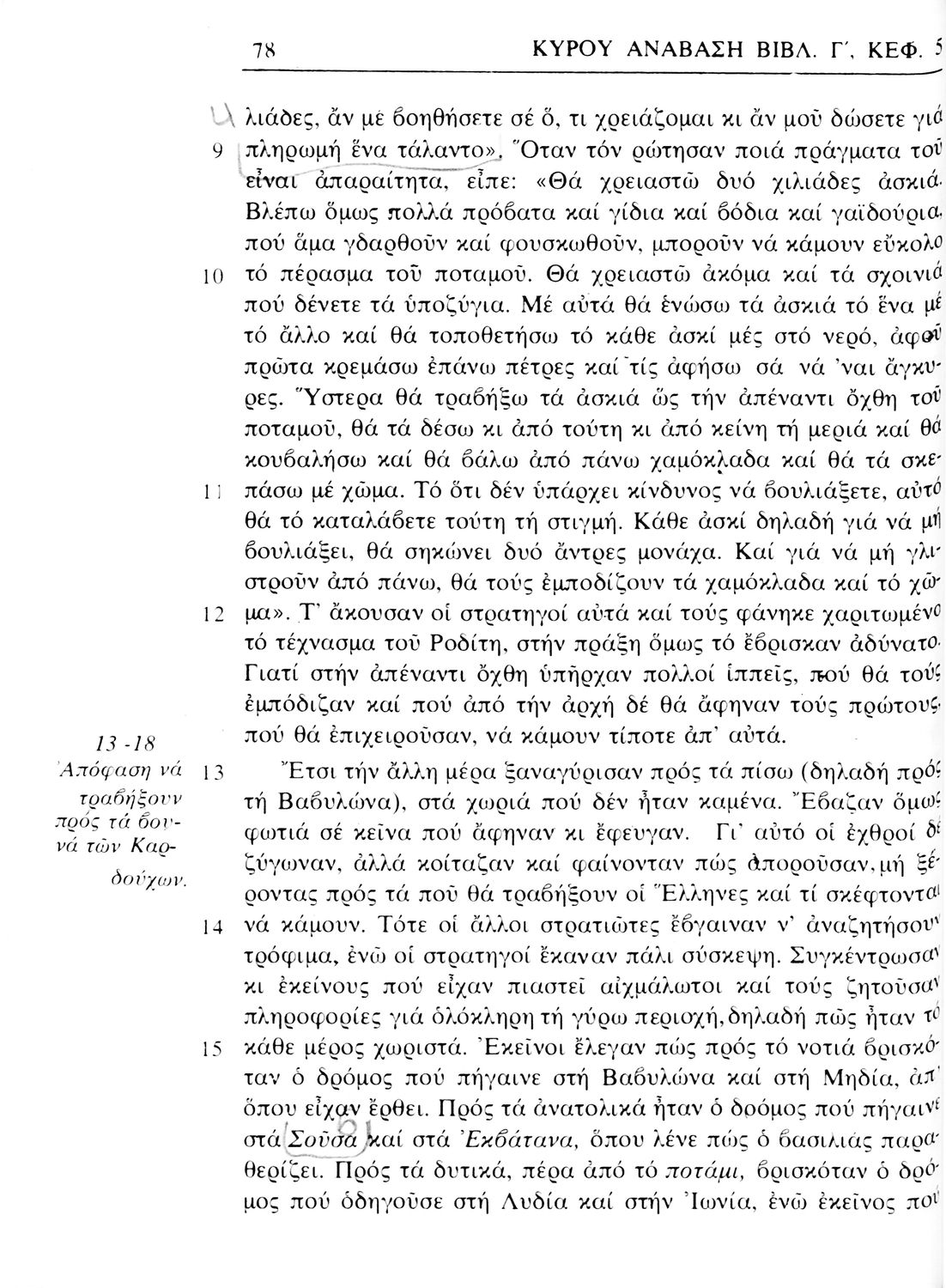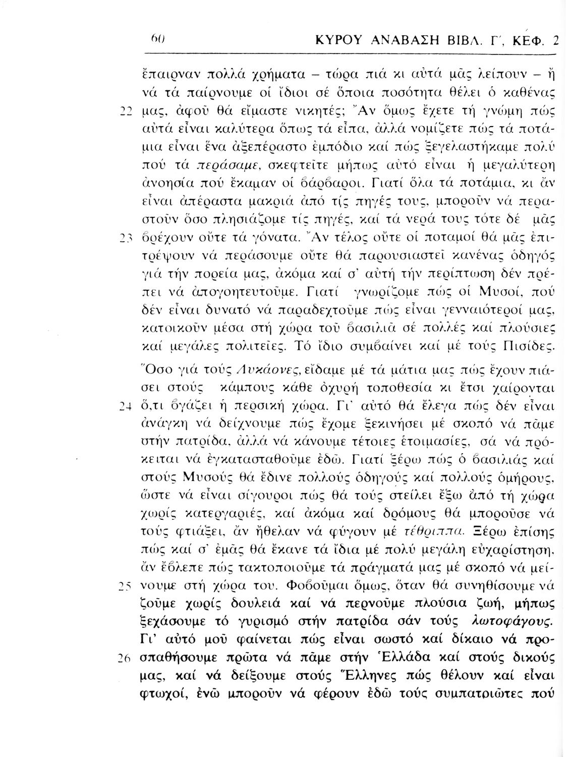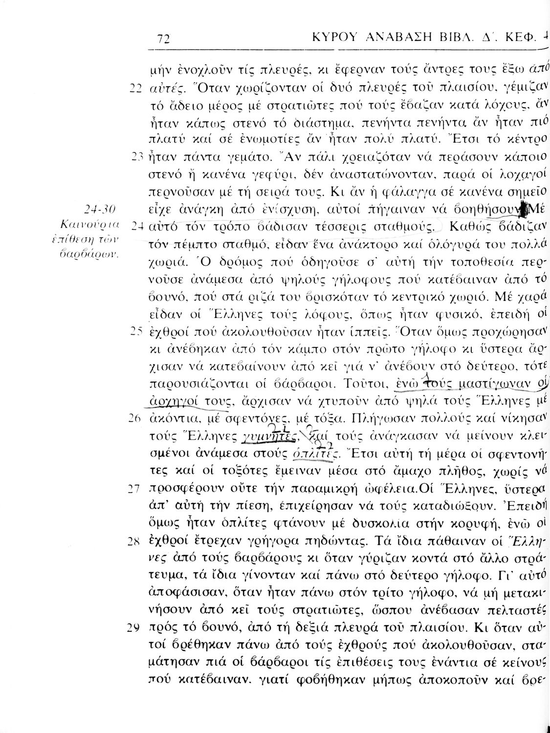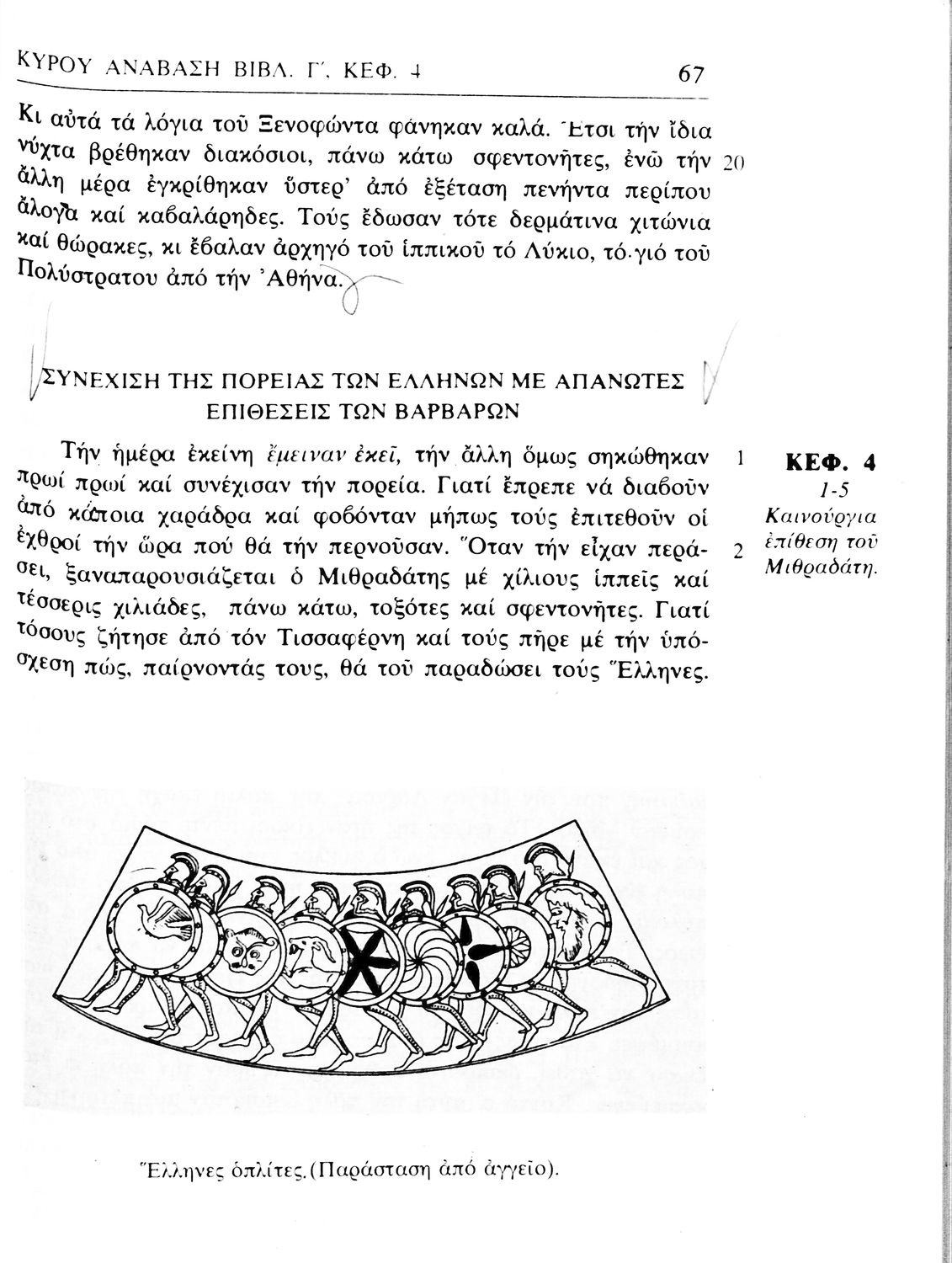 Σχολικό εγχειρίδιο Αρχαίων Ελληνικών α΄ Γυμνασίου που περιλαμβάνει μετάφραση του έργου του Ξενοφώντα Κύρου Ανάβασις, εισαγωγικά σχόλια για τη ζωή και το έργο του, και ερμηνευτικές παρατηρήσεις.