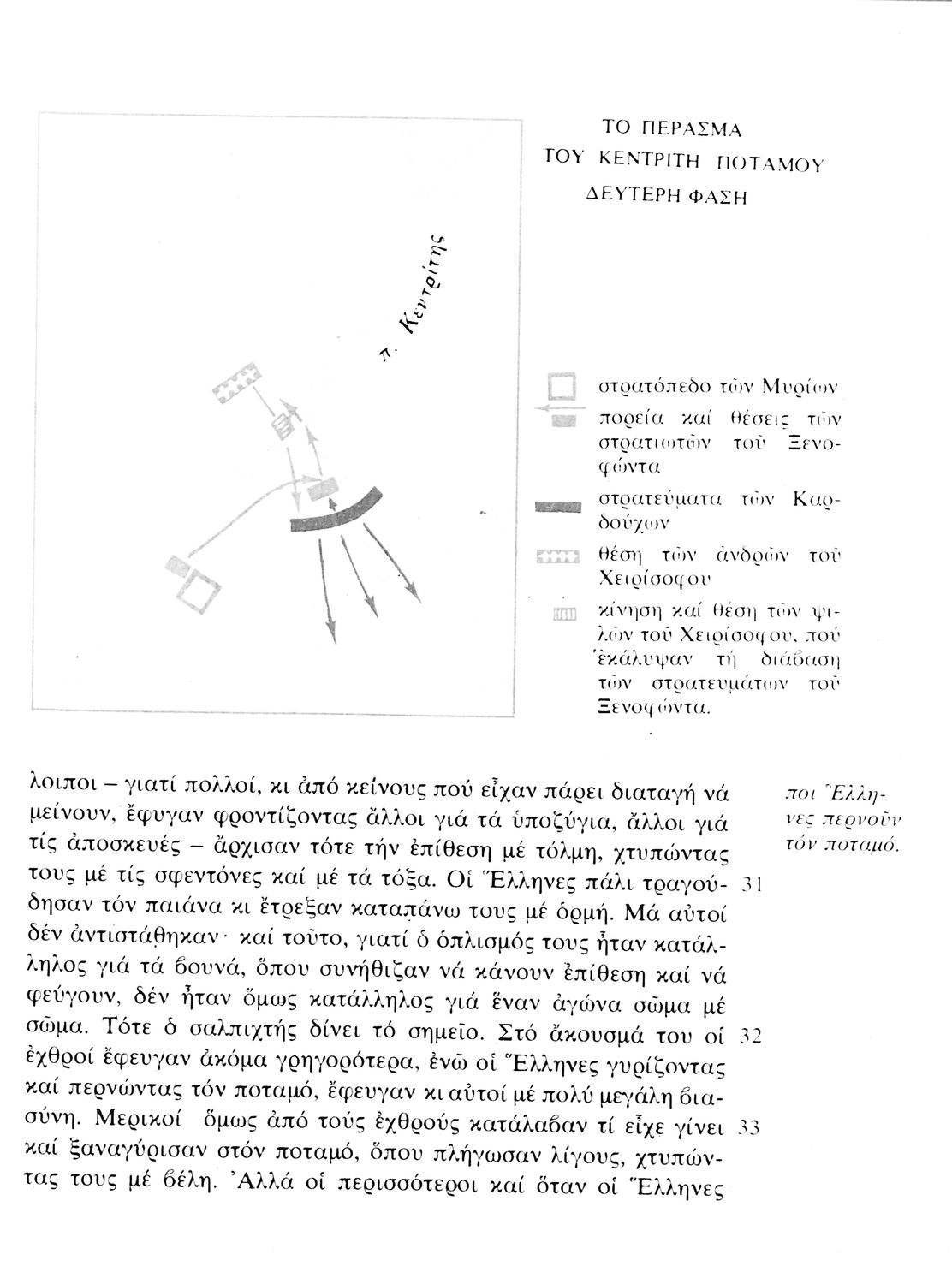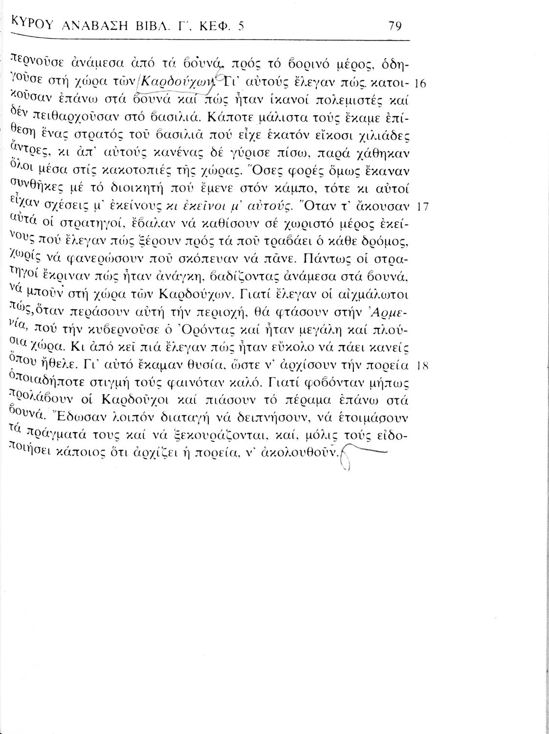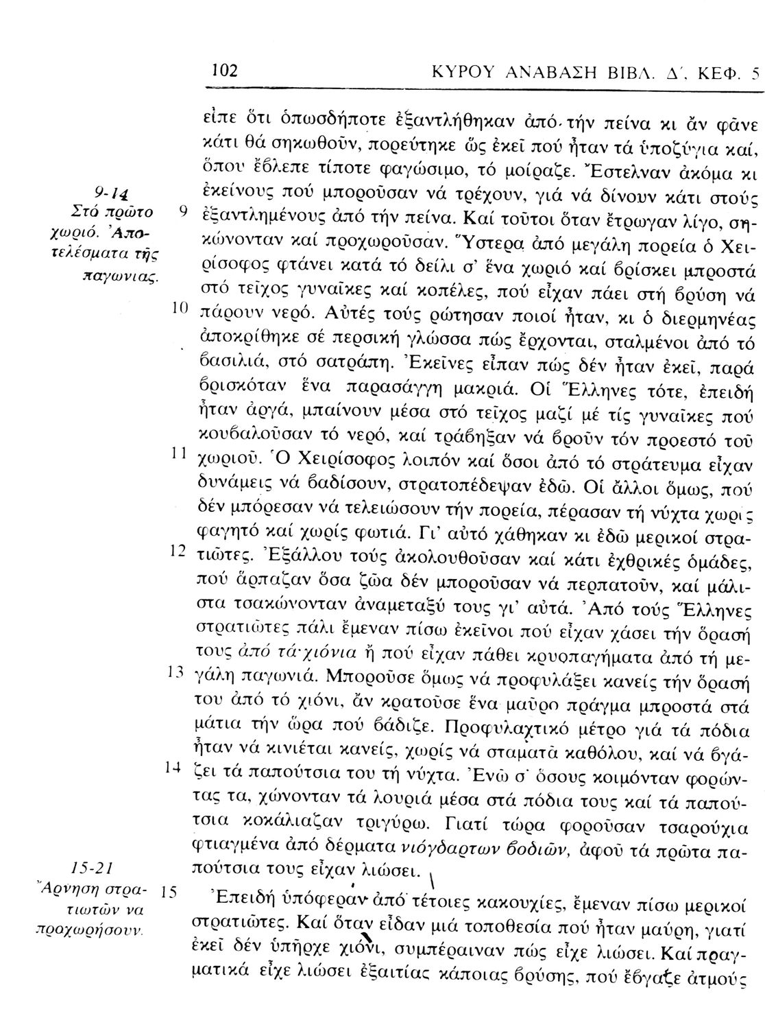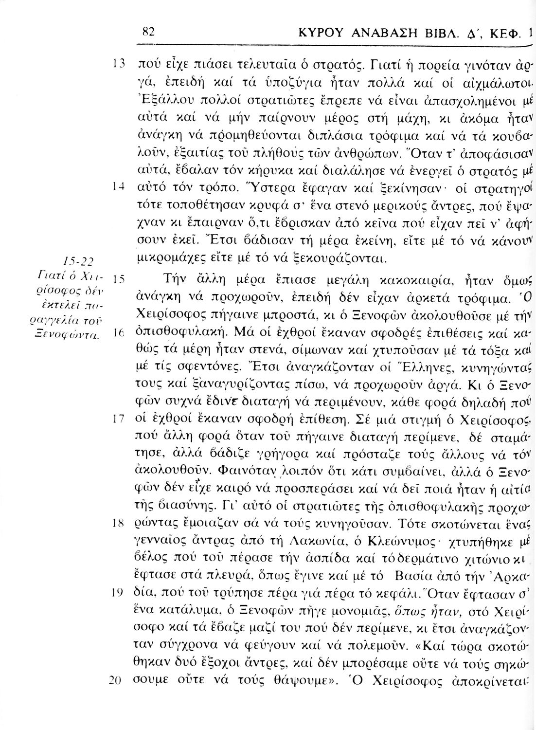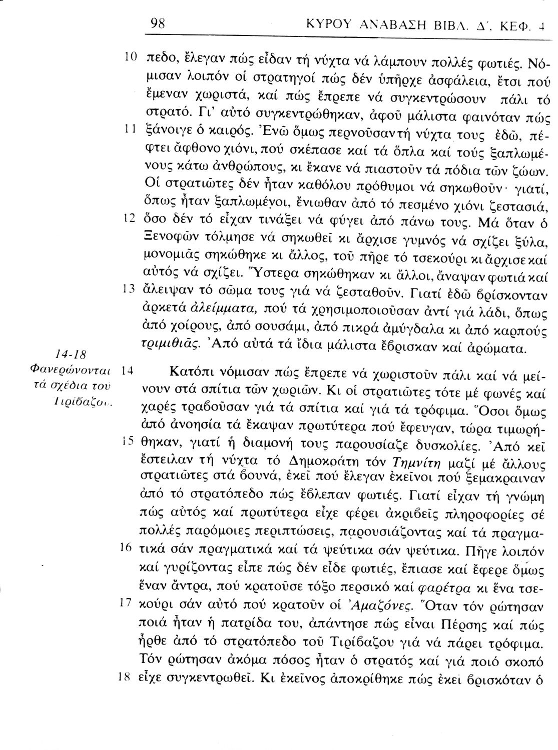 Σχολικό εγχειρίδιο Αρχαίων Ελληνικών. Το βιβλίο περιλαμβάνει εισαγωγή σχετικά με τη ζωή και το έργο του Ξενοφώντα. Ακολουθούν τα εφτά βιβλία της "Κύρου Ανάβασις" εκ των οποίων το Πρώτο και Έβδομο παρατίθενται περιληπτικά. Το βιβλίο φέρει σημειώσεις και σχέδια της μαθήτριας στην οποία ανήκε.