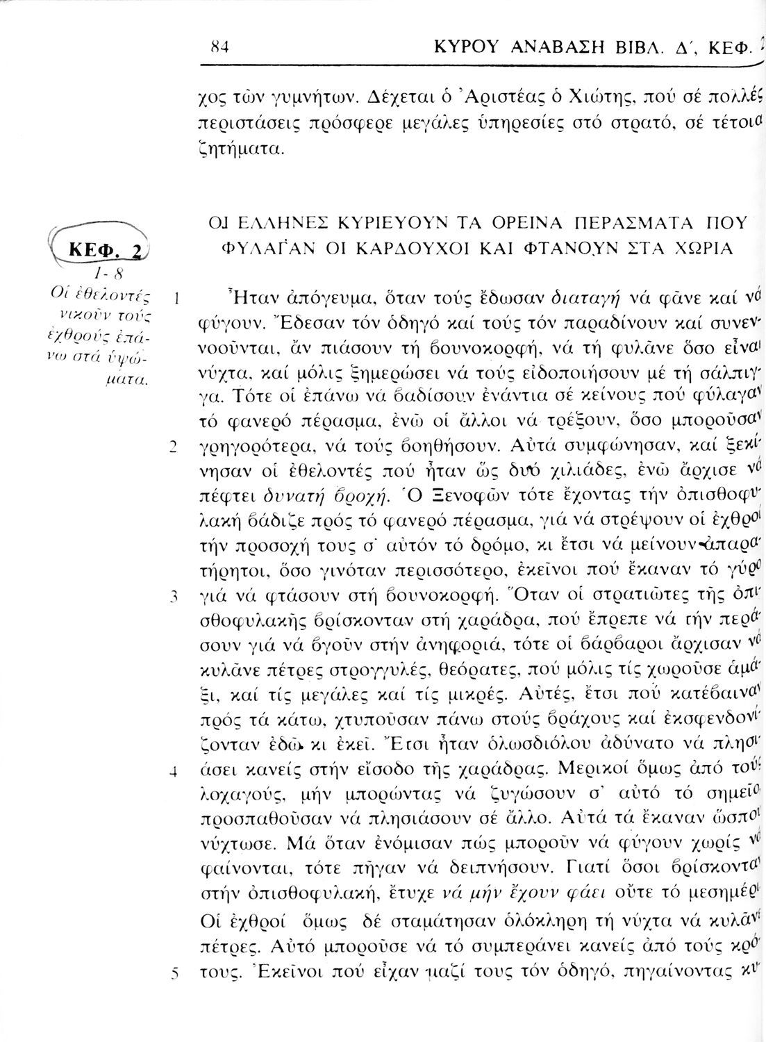 LDR 01558 2200217 4500 035 ## _a01-19817 040 ## _aΙνστιτούτο Εκπαιδευτικής Πολιτικής 041 ## _ael 100 ## _aΞενοφών _aΓ.Δ. Ζευγώλης (εισαγωγή _aμετάφραση _aσημειώσεις) 110 ## _a19817 245 0# _aΞενοφώντα Κύρου Ανάβαση Η Κάθοδος των Μυρίων Α' Γυμνασίου 250 ## _a5η Έκδοση 260 ## _aΑθήνα _bΟργανισμός Εκδόσεως Διδακτικών Βιβλίων _c1980 300 ## _a216 _bΕικόνες, σχέδια, διαγράμματα (έγχρωμα και ασπρόμαυρα), χάρτες _c20 520 ## _aΣχολικό εγχειρίδιο Αρχαίων Ελληνικών. Το βιβλίο περιλαμβάνει εισαγωγή σχετικά με τη ζωή και το έργο του Ξενοφώντα. Ακολουθούν τα εφτά βιβλία της "Κύρου Ανάβασις" εκ των οποίων το Πρώτο και Έβδομο παρατίθενται περιληπτικά. Το βιβλίο φέρει σημειώσεις και σχέδια της μαθήτριας στην οποία ανήκε. 521 ## _aΑ' Γυμνασίου 522 ## _aΕλλάδα 546 ## _aΔημοτική 563 ## _aΜαλακό Εξώφυλλο 583 ## _a3425/12-2-1979 _c1979 650 #4 _aΑγασίας _aΑρκάδες _aΕκστρατεία _aΘράκες _aΜιθριδάτης _aΣτρατηγός