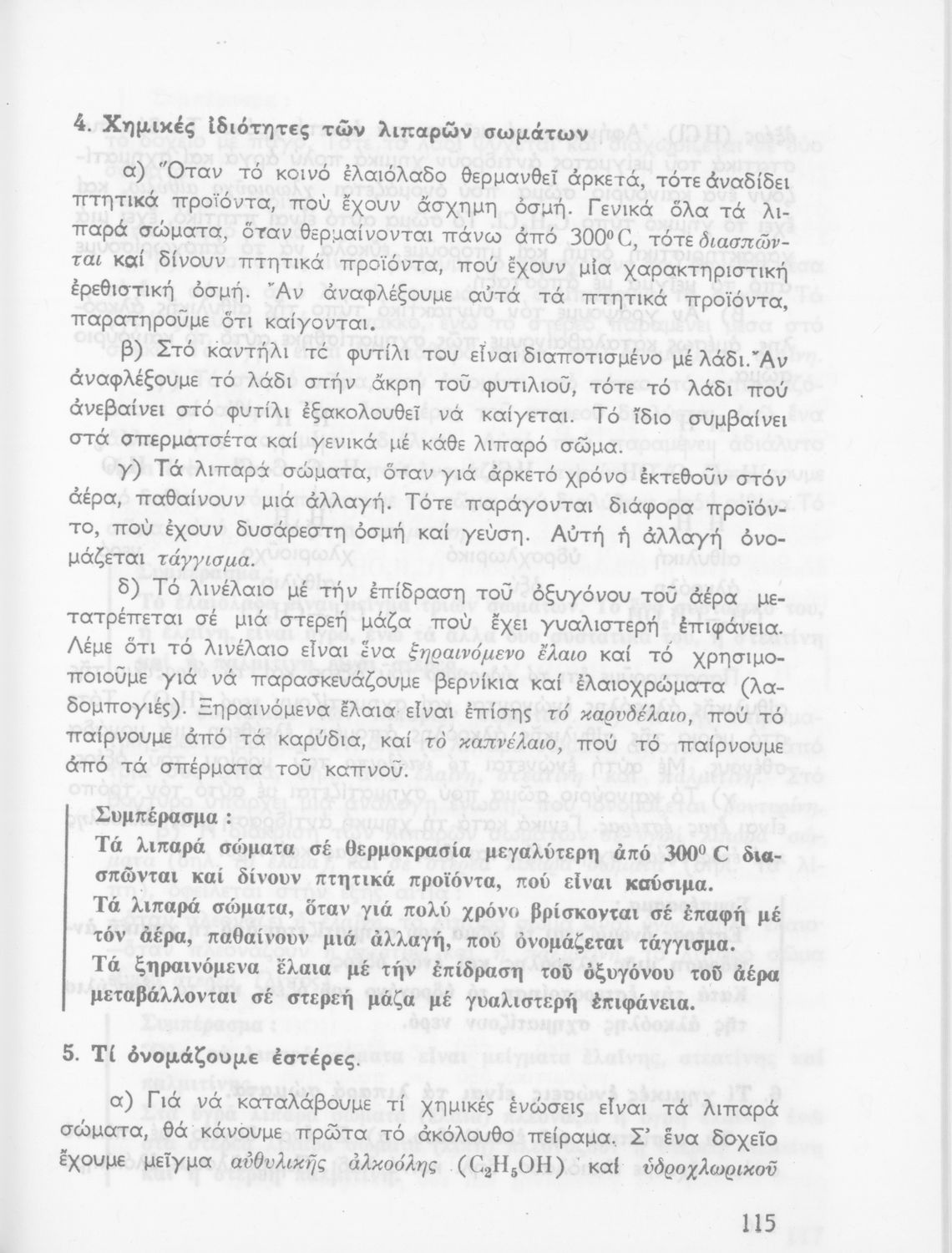 Βαθμίδα εκπαίδευσης: Δευτεροβάθμια Τάξη: Γ' Γυμνασίου Μάθημα: Χημεία Γλώσσα: Δημοτική Παρουσίαση περιεχομένου: Σχολικό εγχειρίδιο Χημείας Γ΄ Γυμνασίου που περιέχει εισαγωγή στην οργανική χημεία και εστιάζει στους υδρογονάνθρακες, τα σάκχαρα και τα λιπαρά σώματα. |