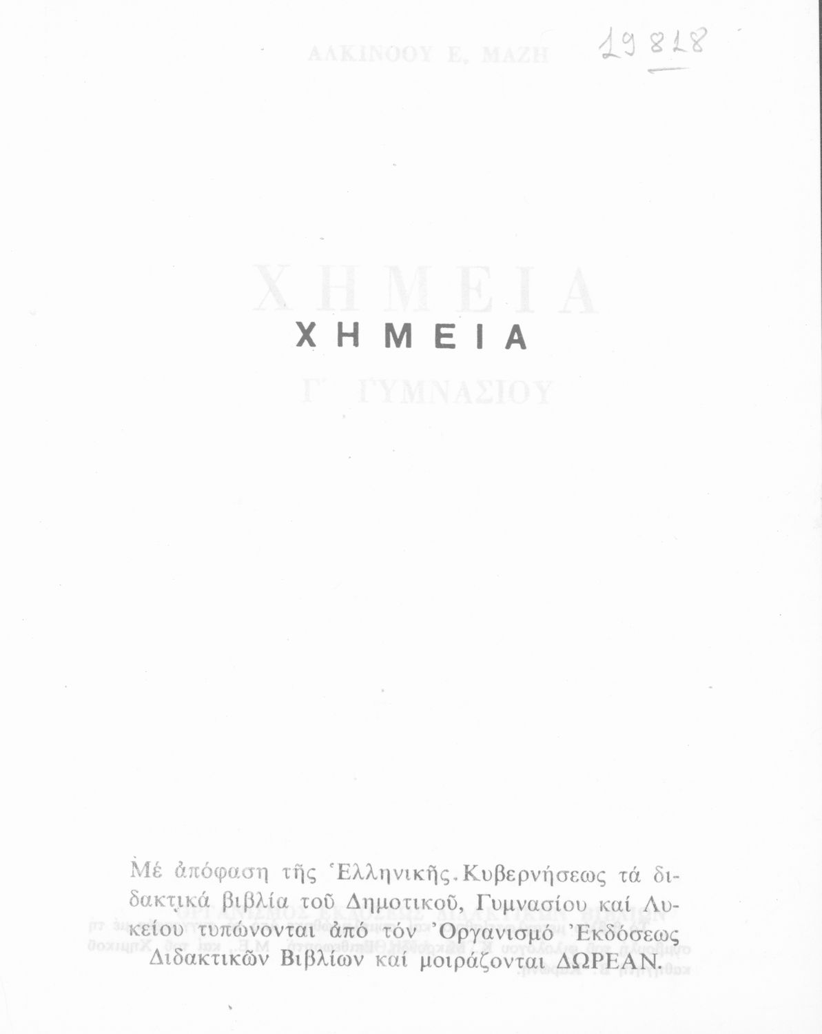 Χημεία Γ΄ Γυμνασίου   [1971, 4η Έκδοση]