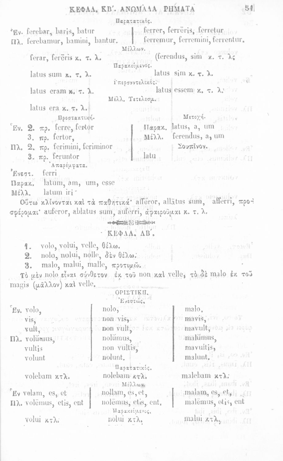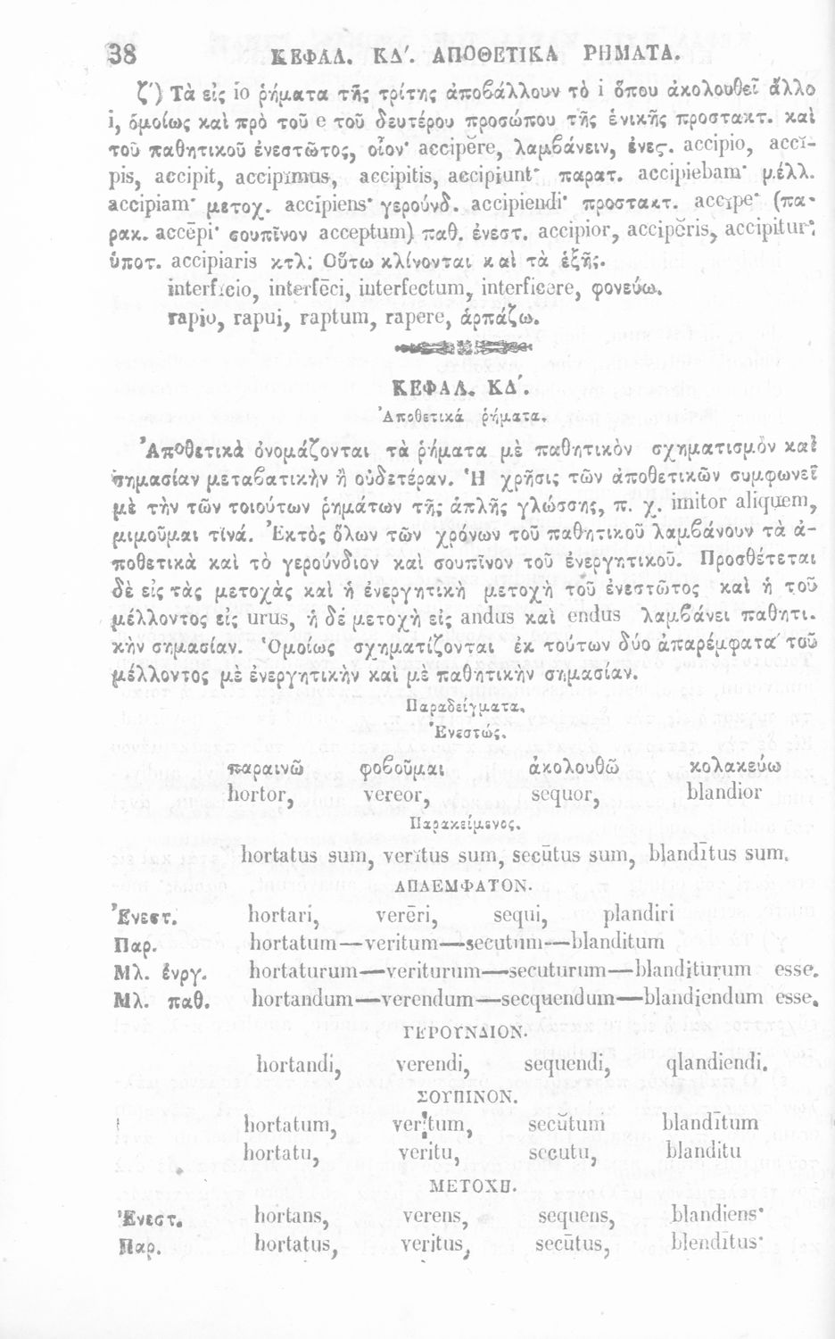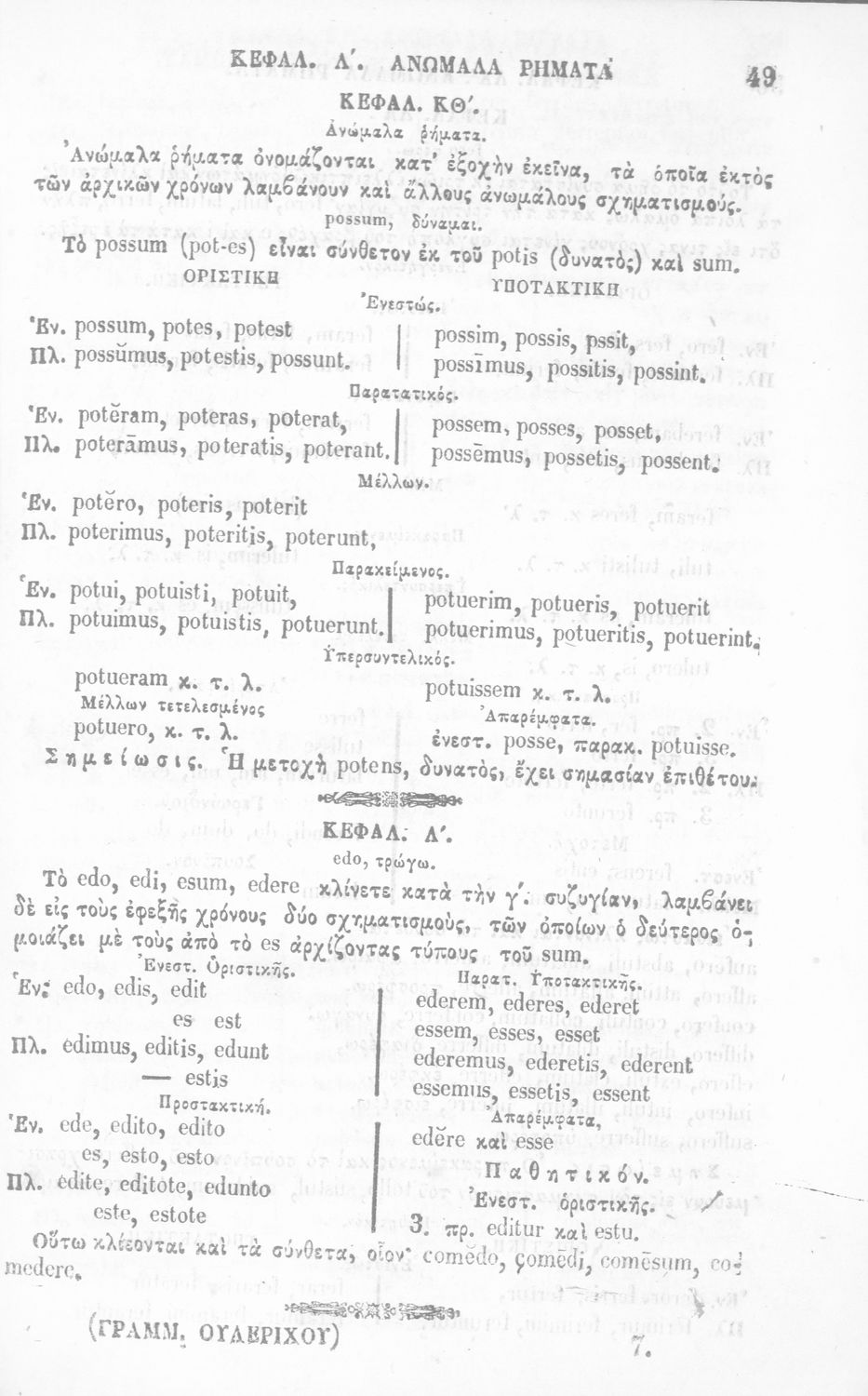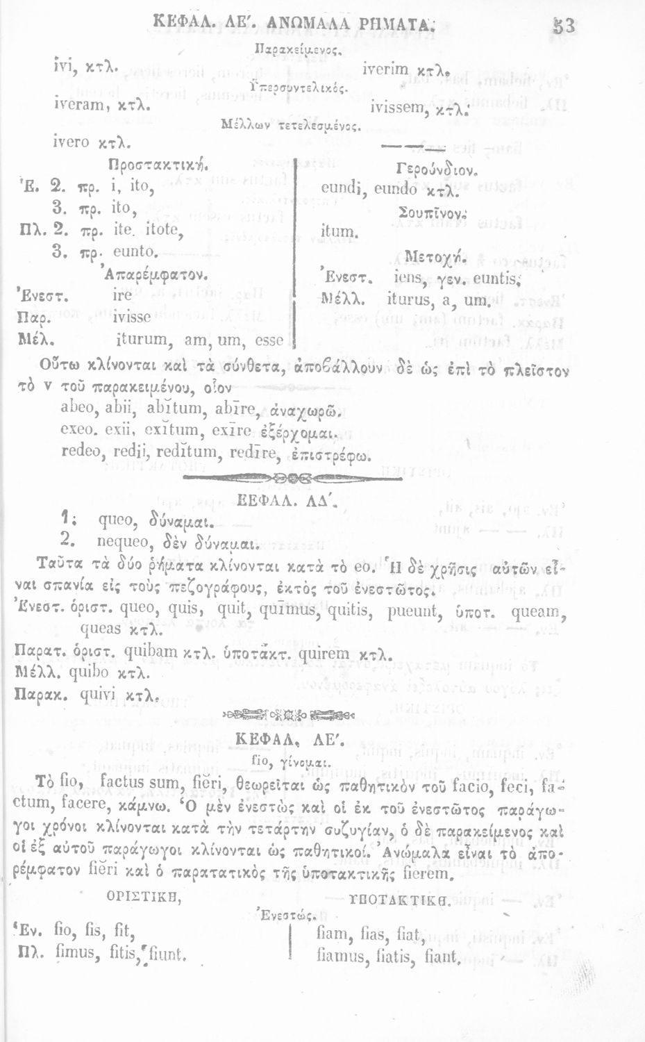 Σχολικό εγχειρίδιο Αρχαίων Ελληνικών για τα Ελληνικά Σχολεία, Παρθεναγωγεία και Γυμνάσια που περιέχει τους κανόνες γραμματικής και είναι χωρισμένο σε φθογγολογικό, τυπολογικό και ετυμολογικό μέρος.