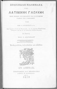 Κωδικός αναγνώρισης: 01-19826b Τίτλος: Στοιχειώδη μαθήματα της λατινικής γλώσσης προς χρήσιν των σχολείων και κατωτέρων τάξεων των Γυμνασίων Συγγραφέας: Ερρ. Ν. Ουλέριχος (Heinrich Nicolaus Ulrichs) Μέγεθος και υπόστρωμα: Σχολικό εγχειρίδιο, 20εκ., μαλακό εξώφυλλο, 113 σελίδες. |