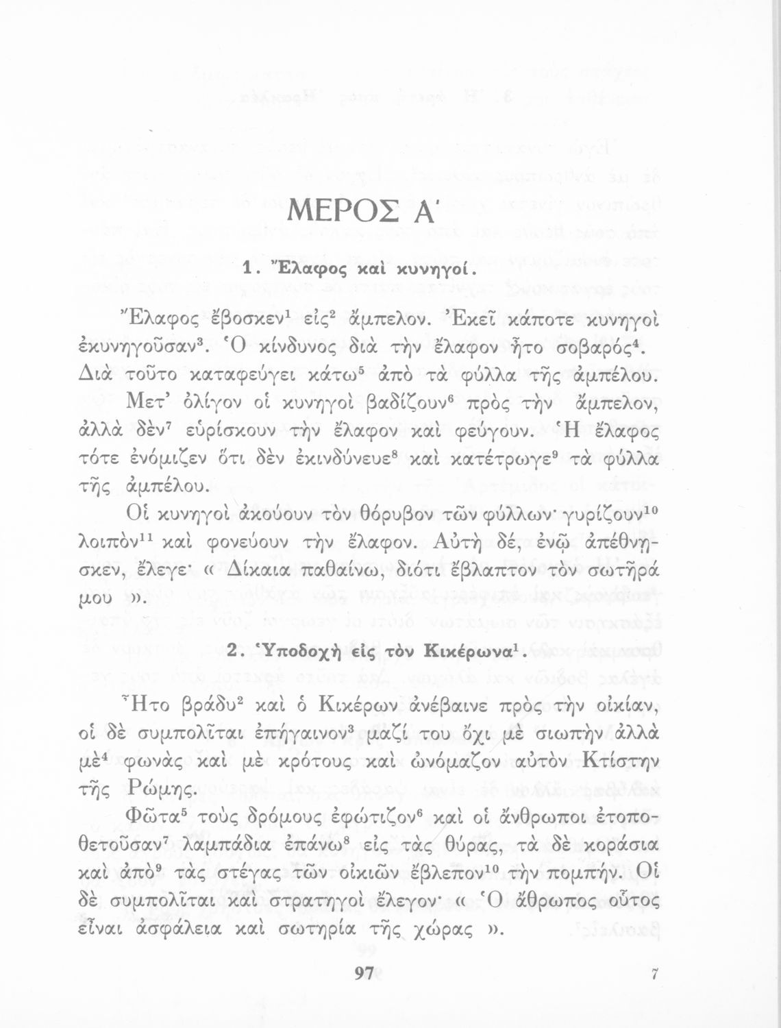 Σχολικό εγχειρίδιο Αρχαίων Ελληνικών που περιλαμβάνει σύντομα κείμενα εμπνευσμένα από την αρχαία ελληνική ιστορία και μυθολογία που χρησιμοποιούνται για τη διδασκαλία γραμματικών και συντακτικών φαινομένων καθώς και ερμηνευτικές σημειώσεις.