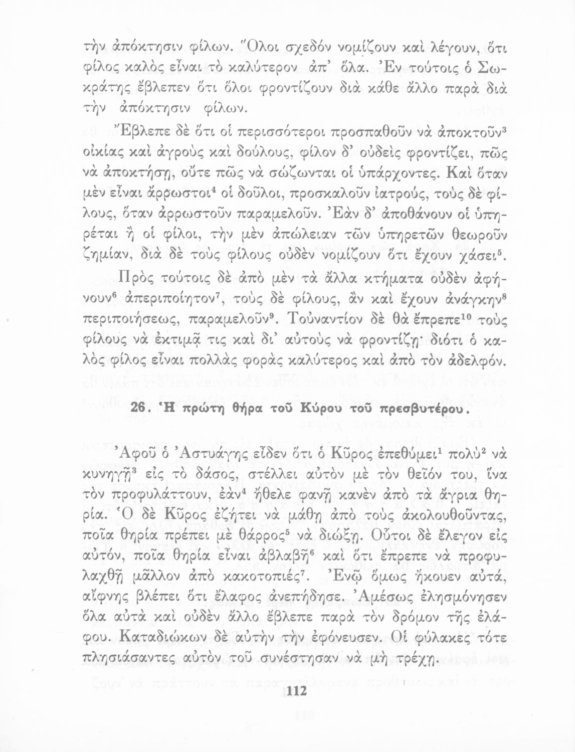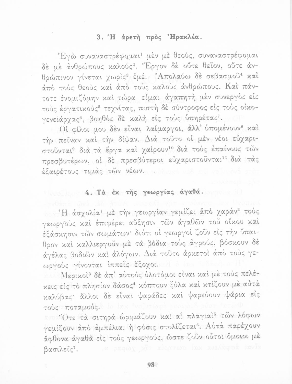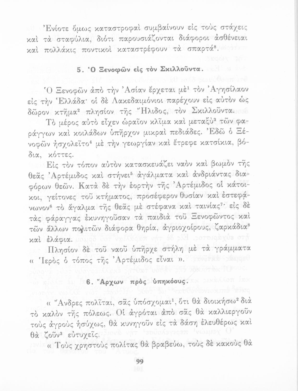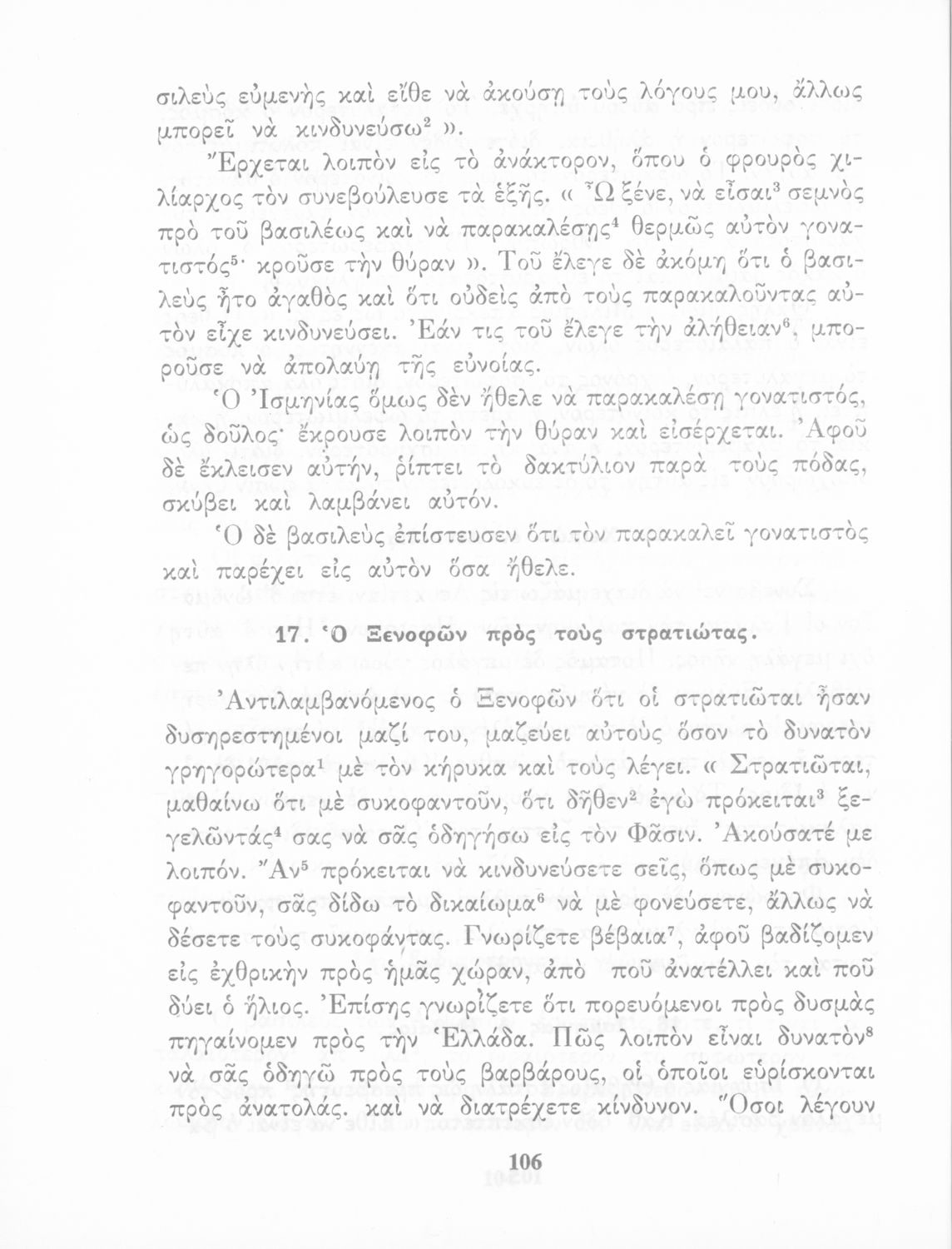 Σχολικό Εγχειρίδιο Αρχαίων Ελληνικών που περιλαμβάνει κείμενα προσαρμοσμένα στη διδασκαλία των γραμματικών και συντακτικών φαινομένων, και ερμηνευτικές και λεξιλογικές σημειώσεις.