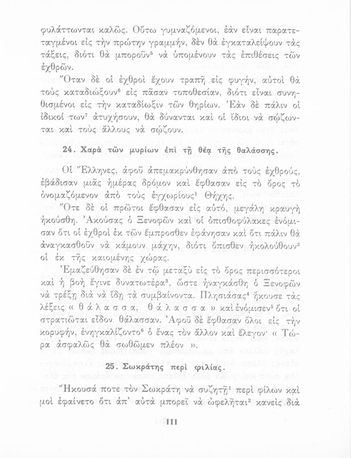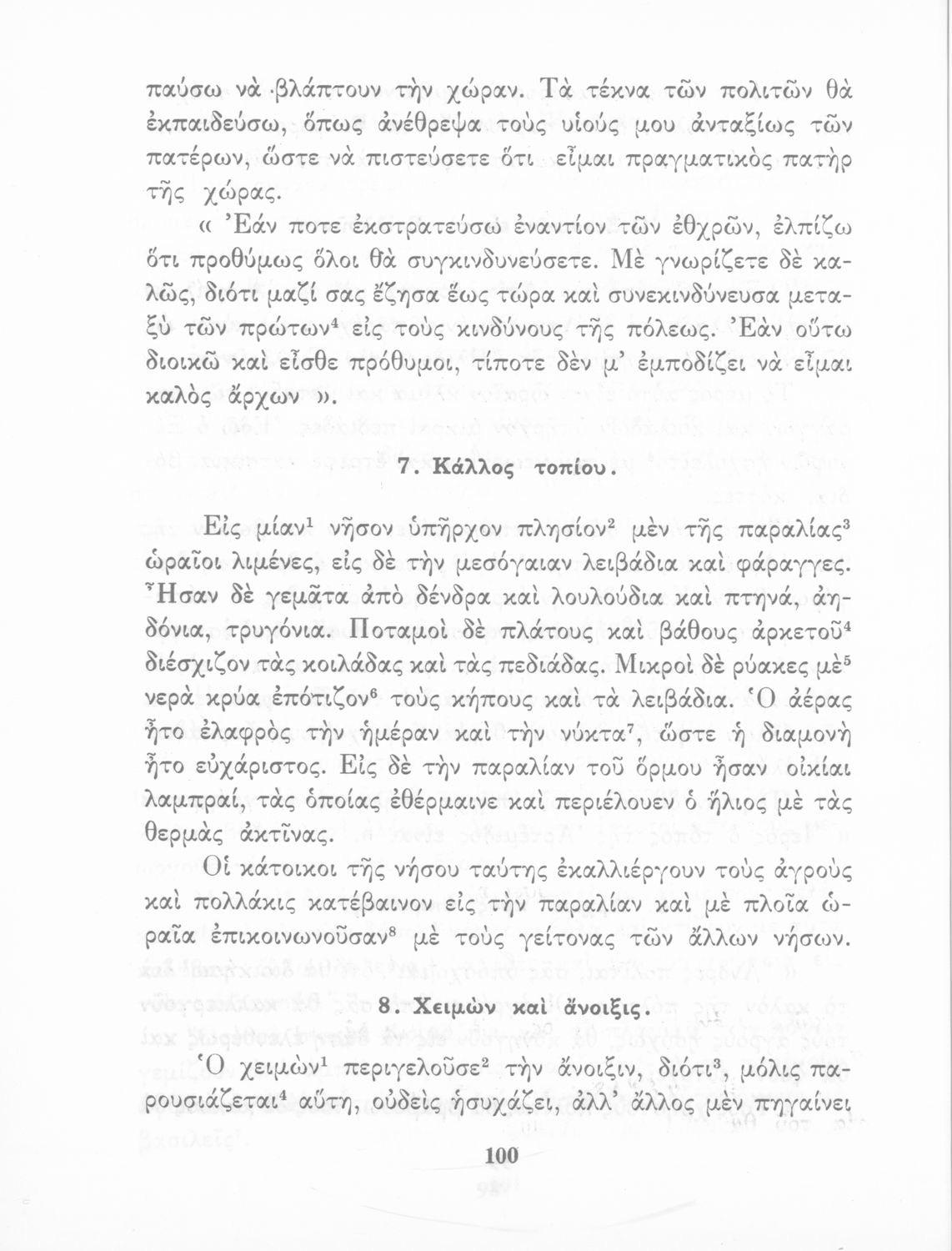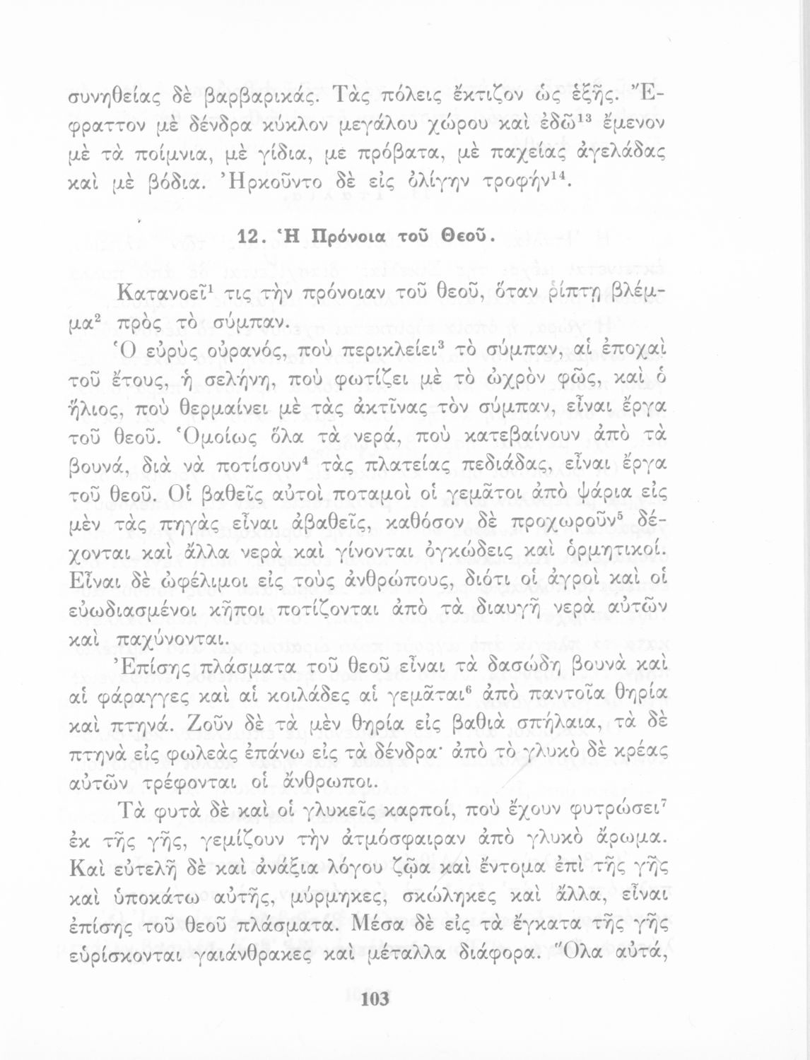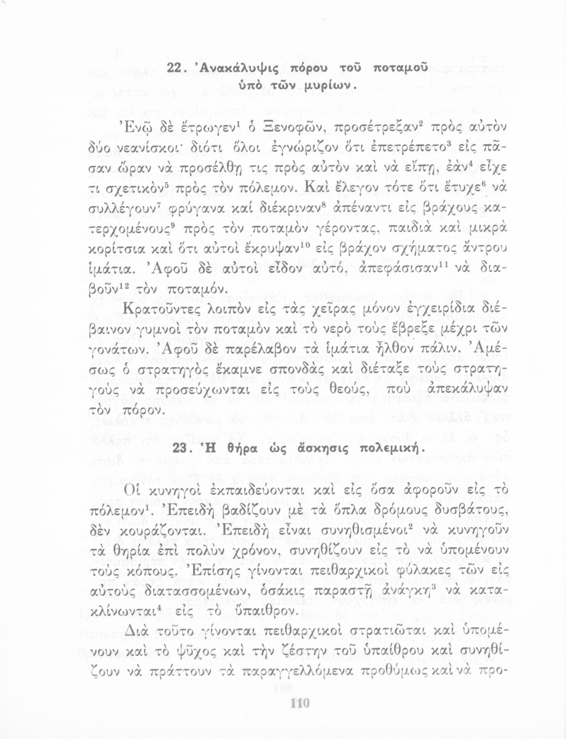 Σχολικό Εγχειρίδιο Αρχαίων Ελληνικών που περιλαμβάνει κείμενα προσαρμοσμένα στη διδασκαλία των γραμματικών και συντακτικών φαινομένων, και ερμηνευτικές και λεξιλογικές σημειώσεις.