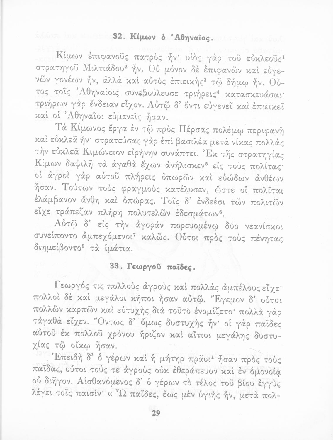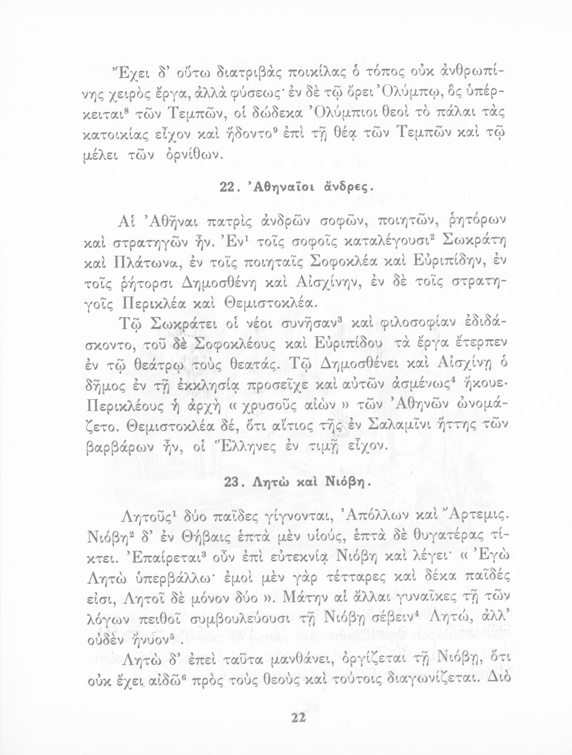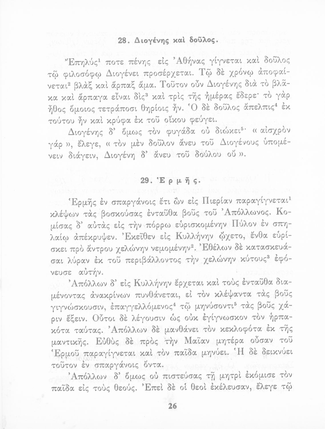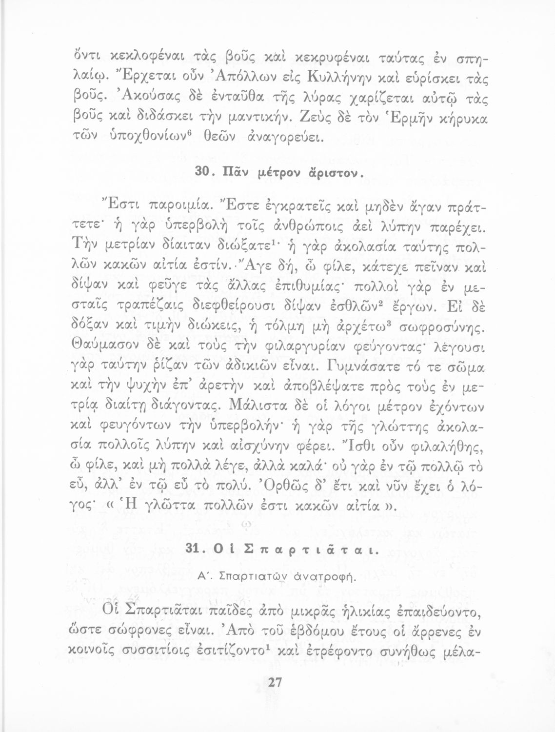 Σχολικό εγχειρίδιο Αρχαίων Ελληνικών που περιλαμβάνει σύντομα κείμενα εμπνευσμένα από την αρχαία ελληνική ιστορία και μυθολογία που χρησιμοποιούνται για τη διδασκαλία γραμματικών και συντακτικών φαινομένων καθώς και ερμηνευτικές σημειώσεις.