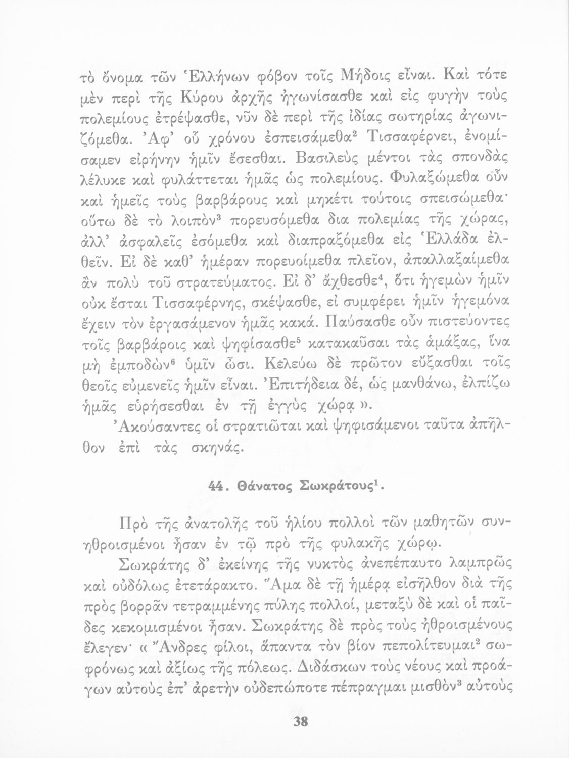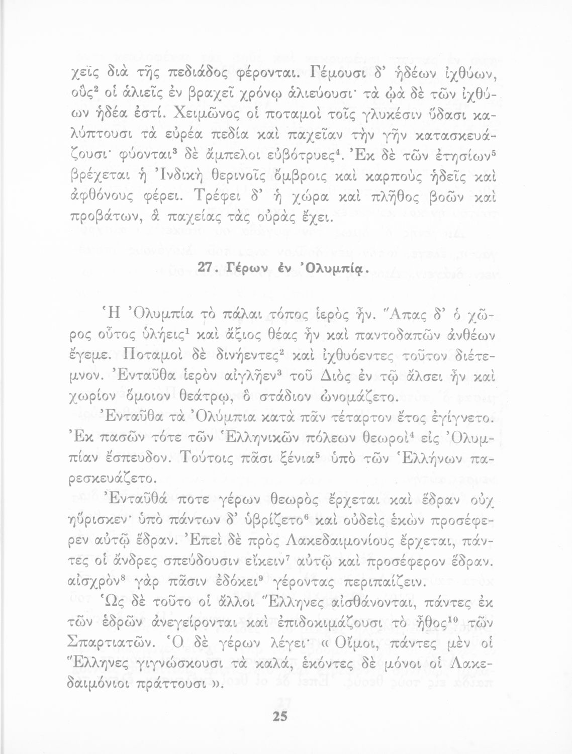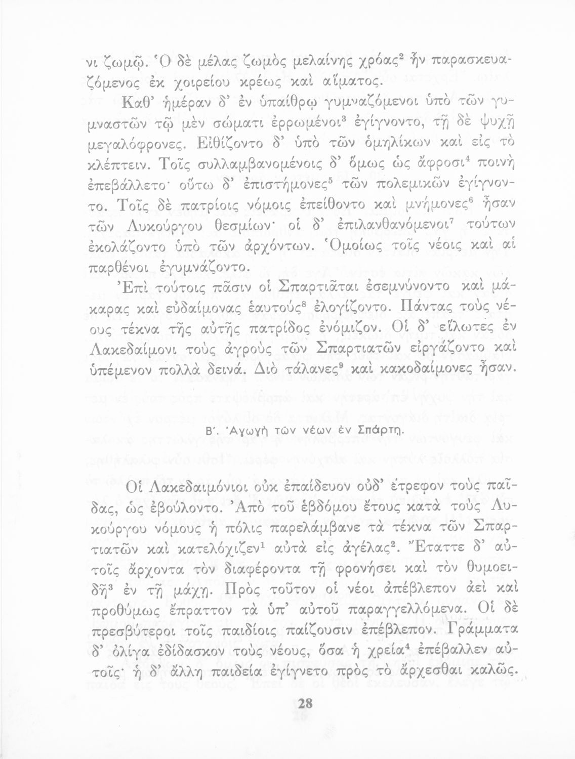 Σχολικό Εγχειρίδιο Αρχαίων Ελληνικών που περιλαμβάνει κείμενα προσαρμοσμένα στη διδασκαλία των γραμματικών και συντακτικών φαινομένων, και ερμηνευτικές και λεξιλογικές σημειώσεις.