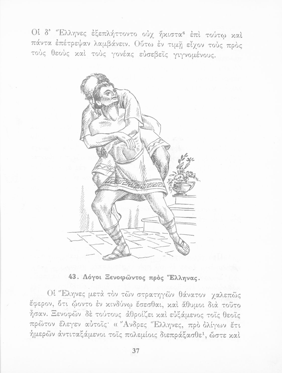Σχολικό εγχειρίδιο Αρχαίων Ελληνικών Γυμνασίου που περιέχει κείμενα βασισμένα στην αρχαία ελληνική ιστορία και μυθολογία και γραμματικές, συντακτικές και ετυμολογικές παρατηρήσεις.