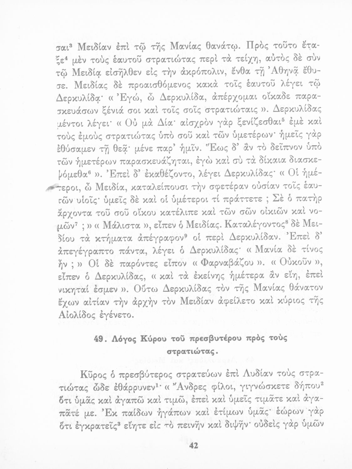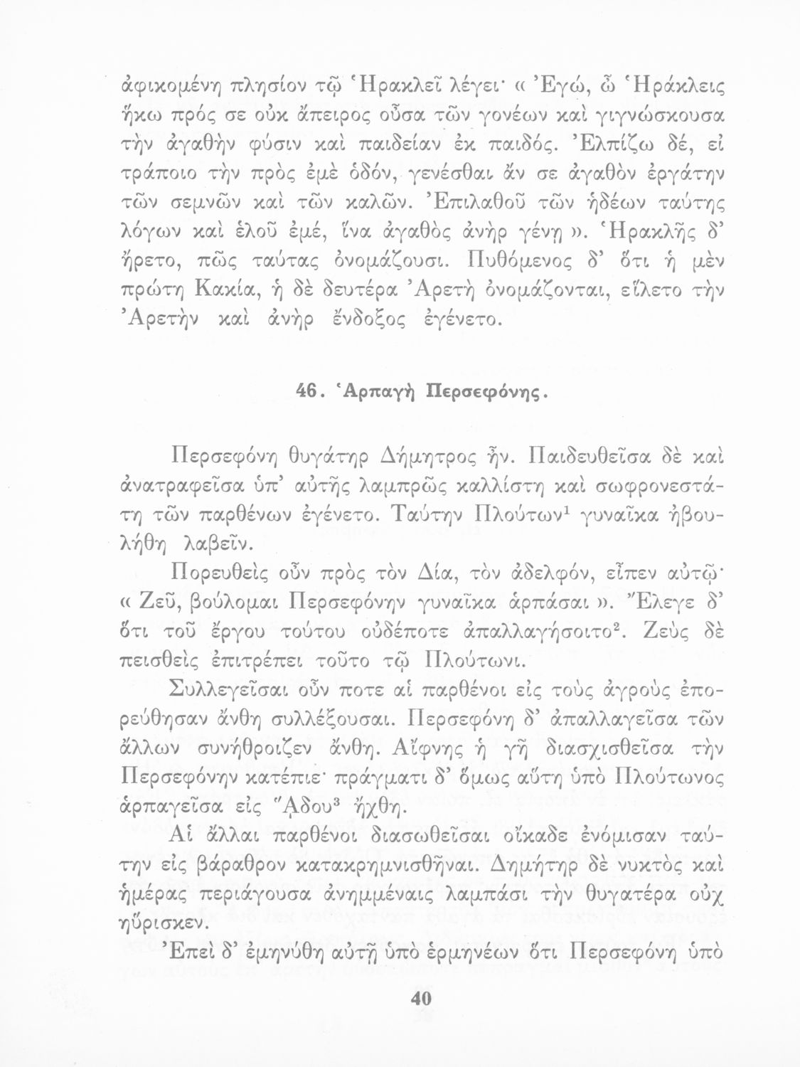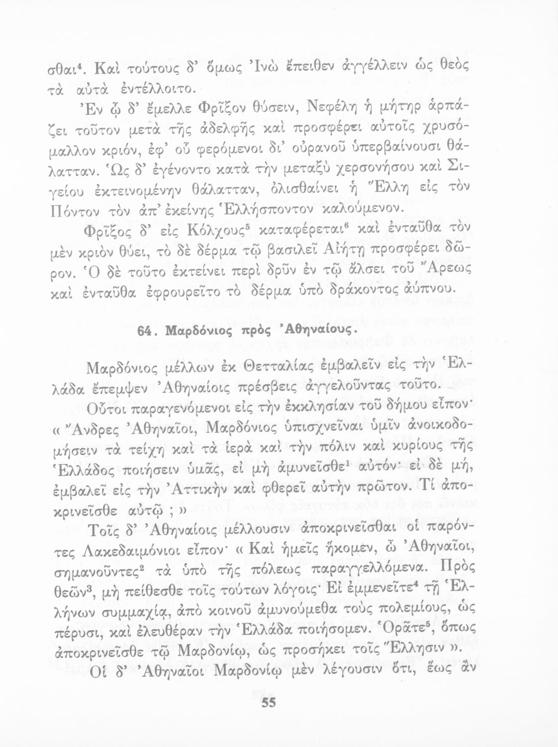 Σχολικό εγχειρίδιο Αρχαίων Ελληνικών Γυμνασίου που περιέχει κείμενα βασισμένα στην αρχαία ελληνική ιστορία και μυθολογία και γραμματικές, συντακτικές και ετυμολογικές παρατηρήσεις.