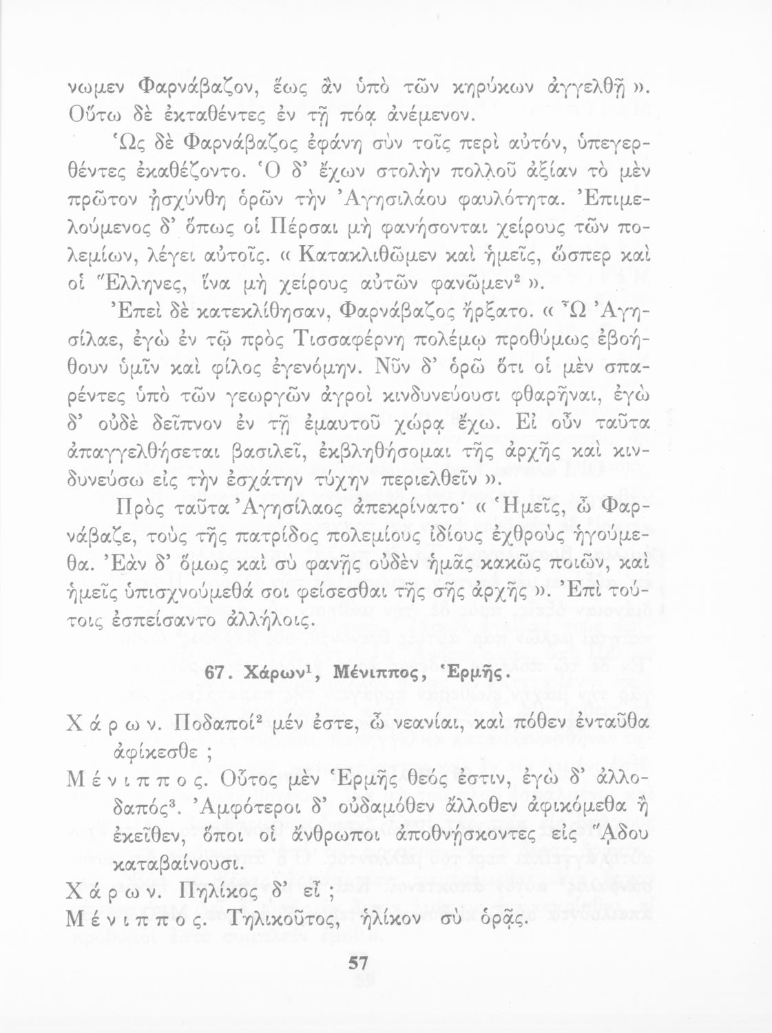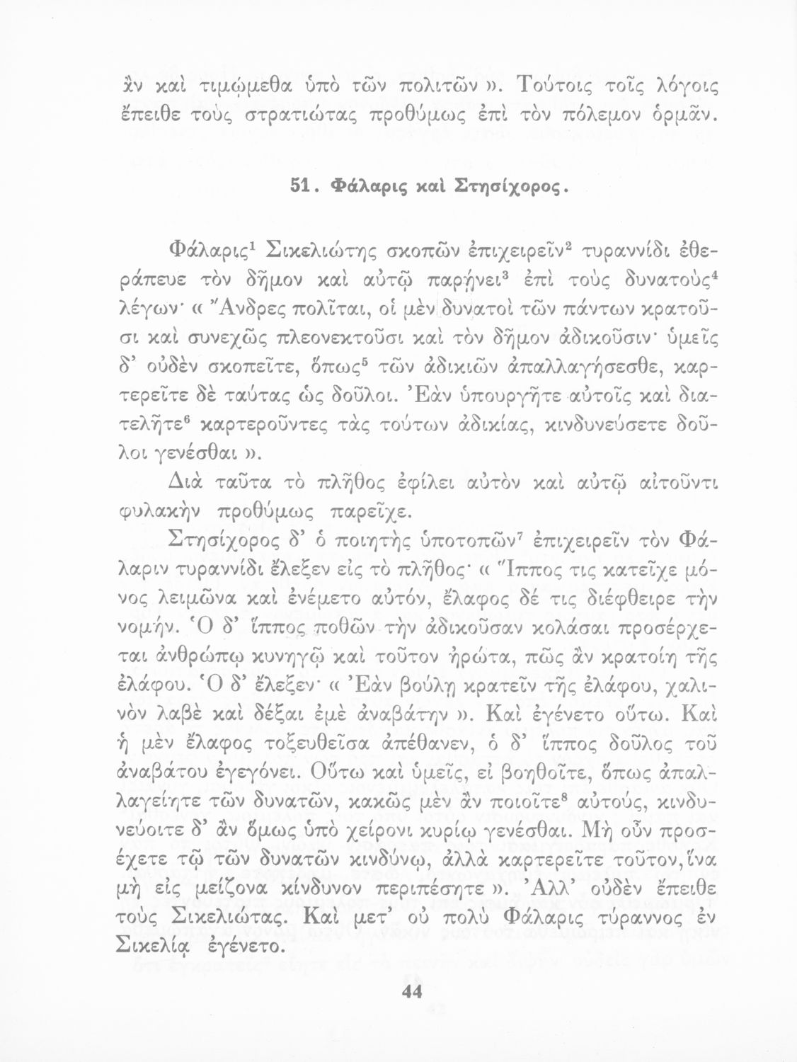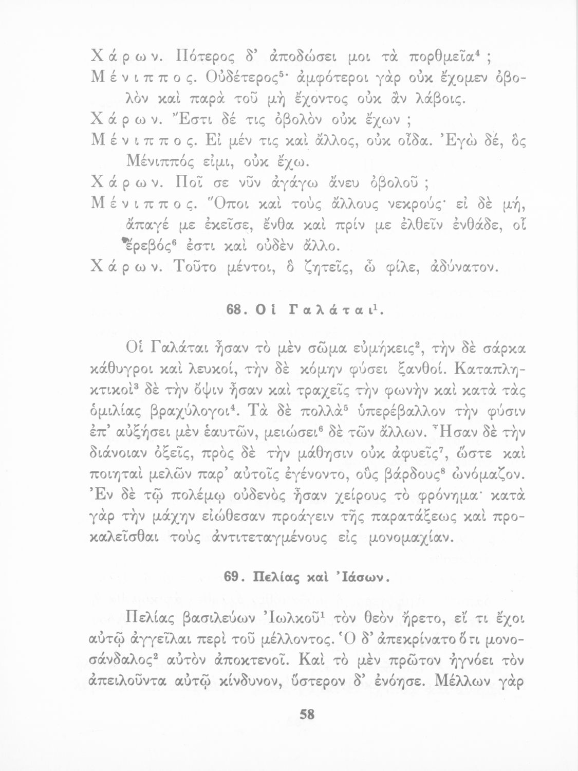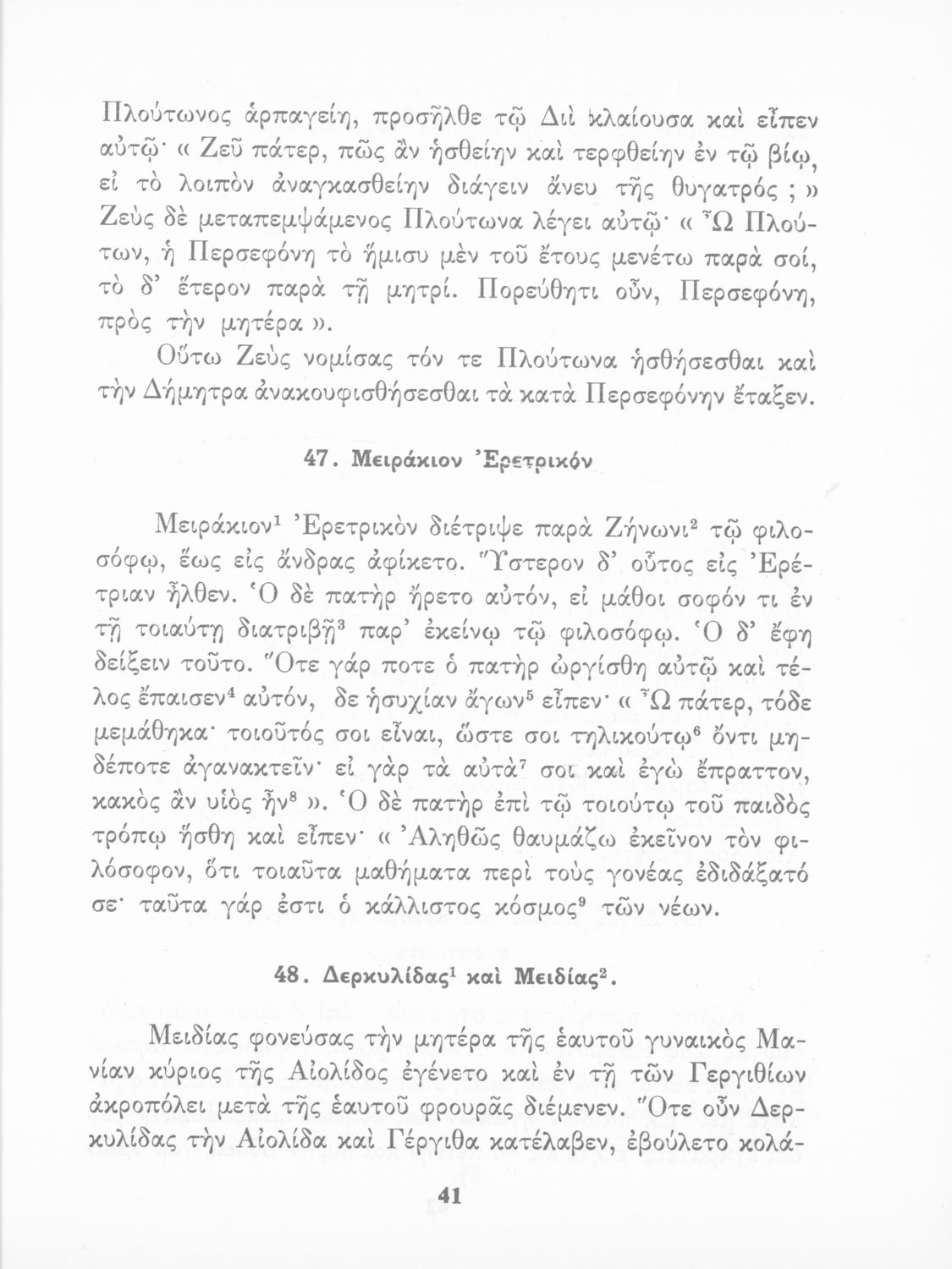 Σχολικό εγχειρίδιο Αρχαίων Ελληνικών που περιλαμβάνει σύντομα κείμενα εμπνευσμένα από την αρχαία ελληνική ιστορία και μυθολογία που χρησιμοποιούνται για τη διδασκαλία γραμματικών και συντακτικών φαινομένων καθώς και ερμηνευτικές σημειώσεις.