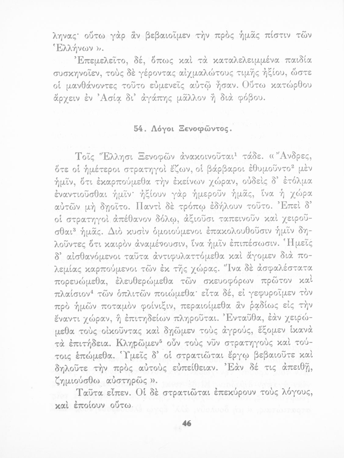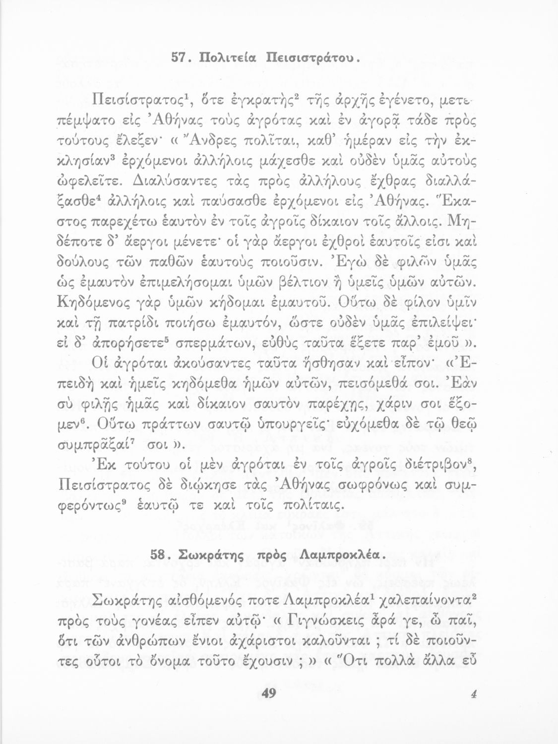 Σχολικό Εγχειρίδιο Αρχαίων Ελληνικών που περιλαμβάνει κείμενα προσαρμοσμένα στη διδασκαλία των γραμματικών και συντακτικών φαινομένων, και ερμηνευτικές και λεξιλογικές σημειώσεις.