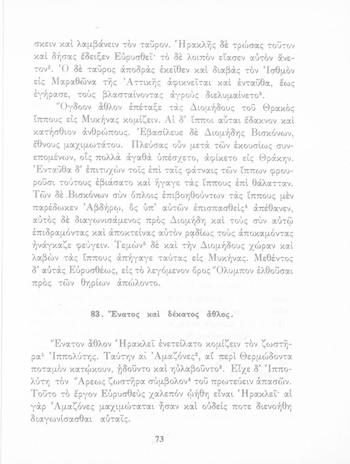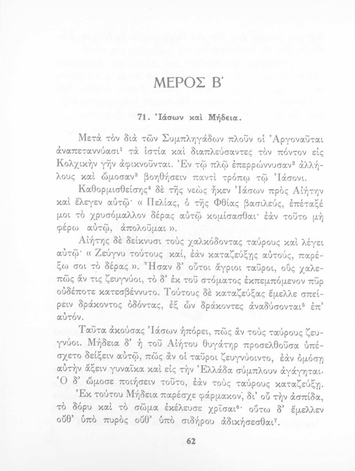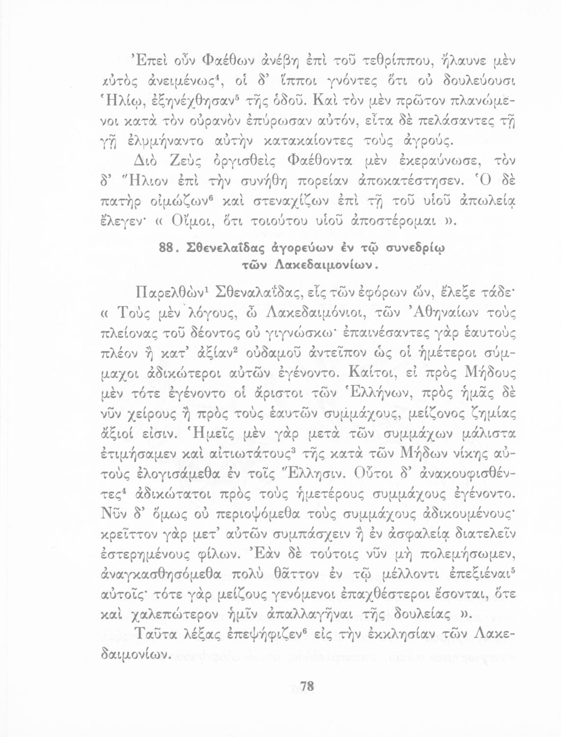 Σχολικό εγχειρίδιο Αρχαίων Ελληνικών Γυμνασίου που περιέχει κείμενα βασισμένα στην αρχαία ελληνική ιστορία και μυθολογία και γραμματικές, συντακτικές και ετυμολογικές παρατηρήσεις.