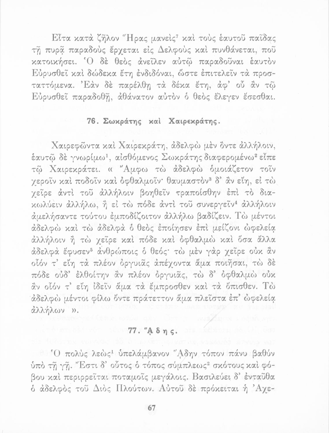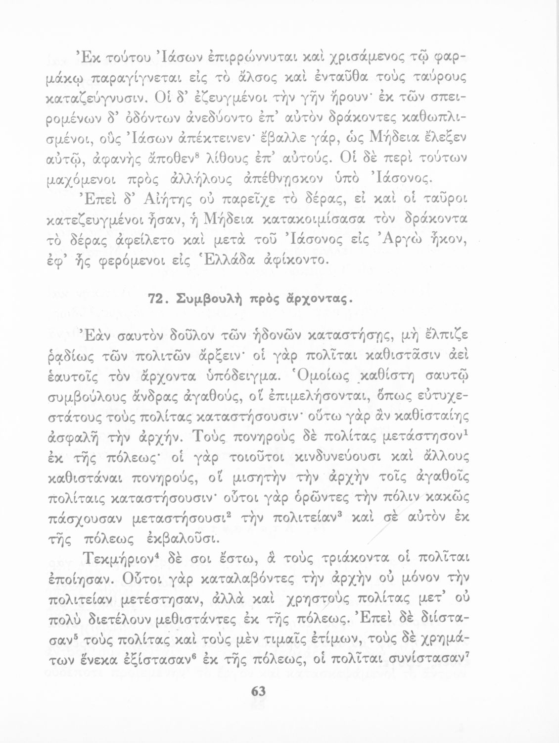 Σχολικό εγχειρίδιο Αρχαίων Ελληνικών που περιλαμβάνει σύντομα κείμενα εμπνευσμένα από την αρχαία ελληνική ιστορία και μυθολογία που χρησιμοποιούνται για τη διδασκαλία γραμματικών και συντακτικών φαινομένων καθώς και ερμηνευτικές σημειώσεις.