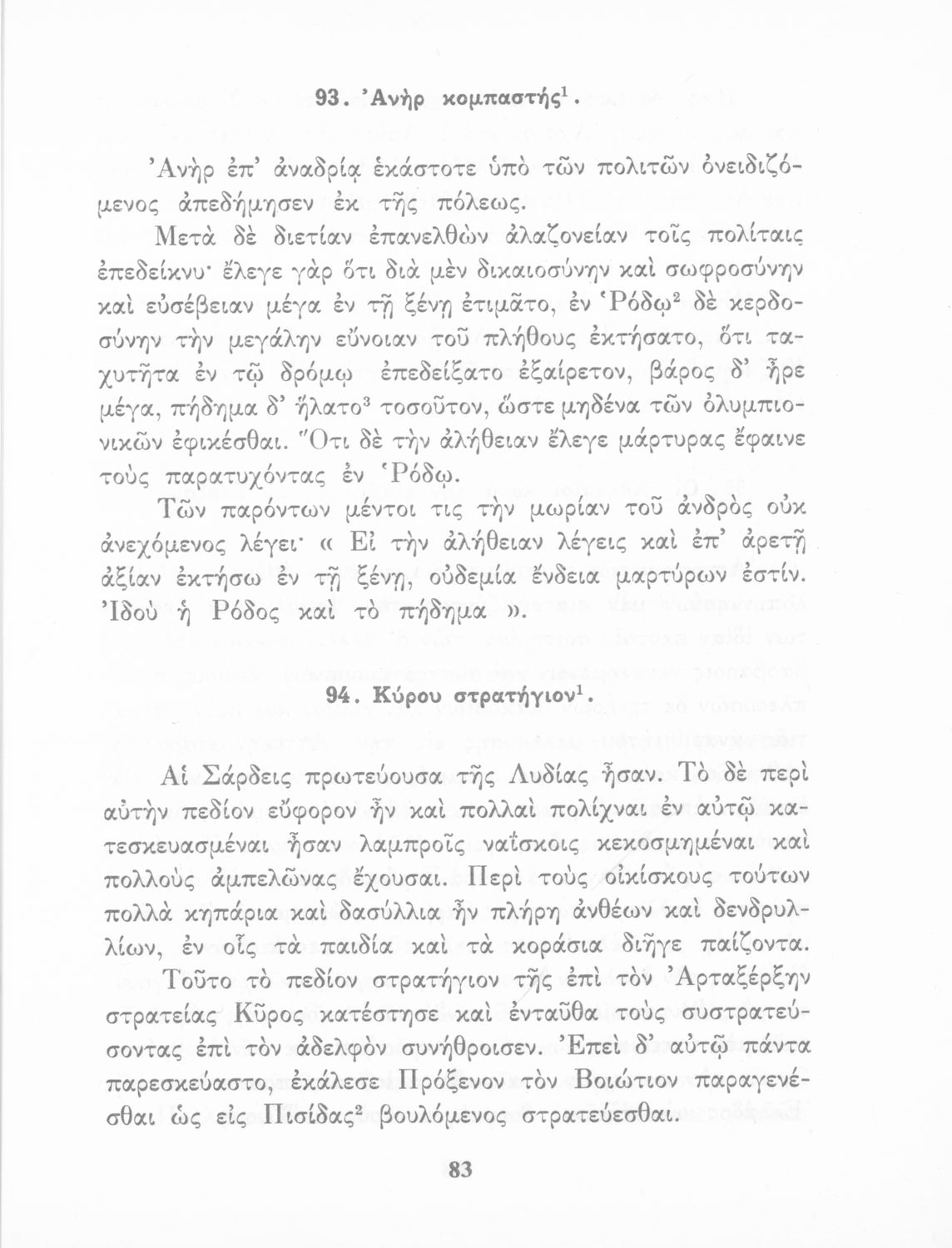 Σχολικό εγχειρίδιο Αρχαίων Ελληνικών που περιλαμβάνει σύντομα κείμενα εμπνευσμένα από την αρχαία ελληνική ιστορία και μυθολογία που χρησιμοποιούνται για τη διδασκαλία γραμματικών και συντακτικών φαινομένων καθώς και ερμηνευτικές σημειώσεις.