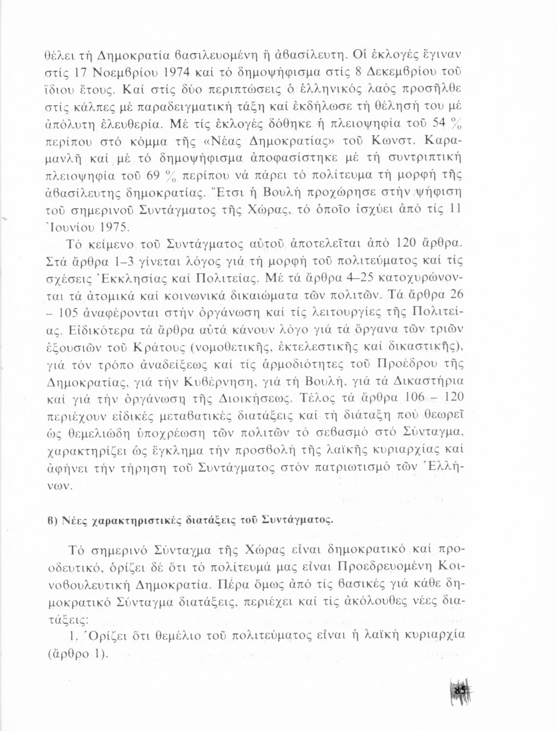 Σχολικό εγχειρίδιο Αγωγής του Πολίτη Γ΄ Γυμνασίου που παρουσιάζει τα στοιχεία του δημοκρατικού πολιτεύματος, τον διαχωρισμό των εξουσιών και τα όργανα του κράτους, και τους Διεθνείς Οργανισμούς. Περιλαμβάνει το κείμενο του Ελληνικού Συντάγματος.