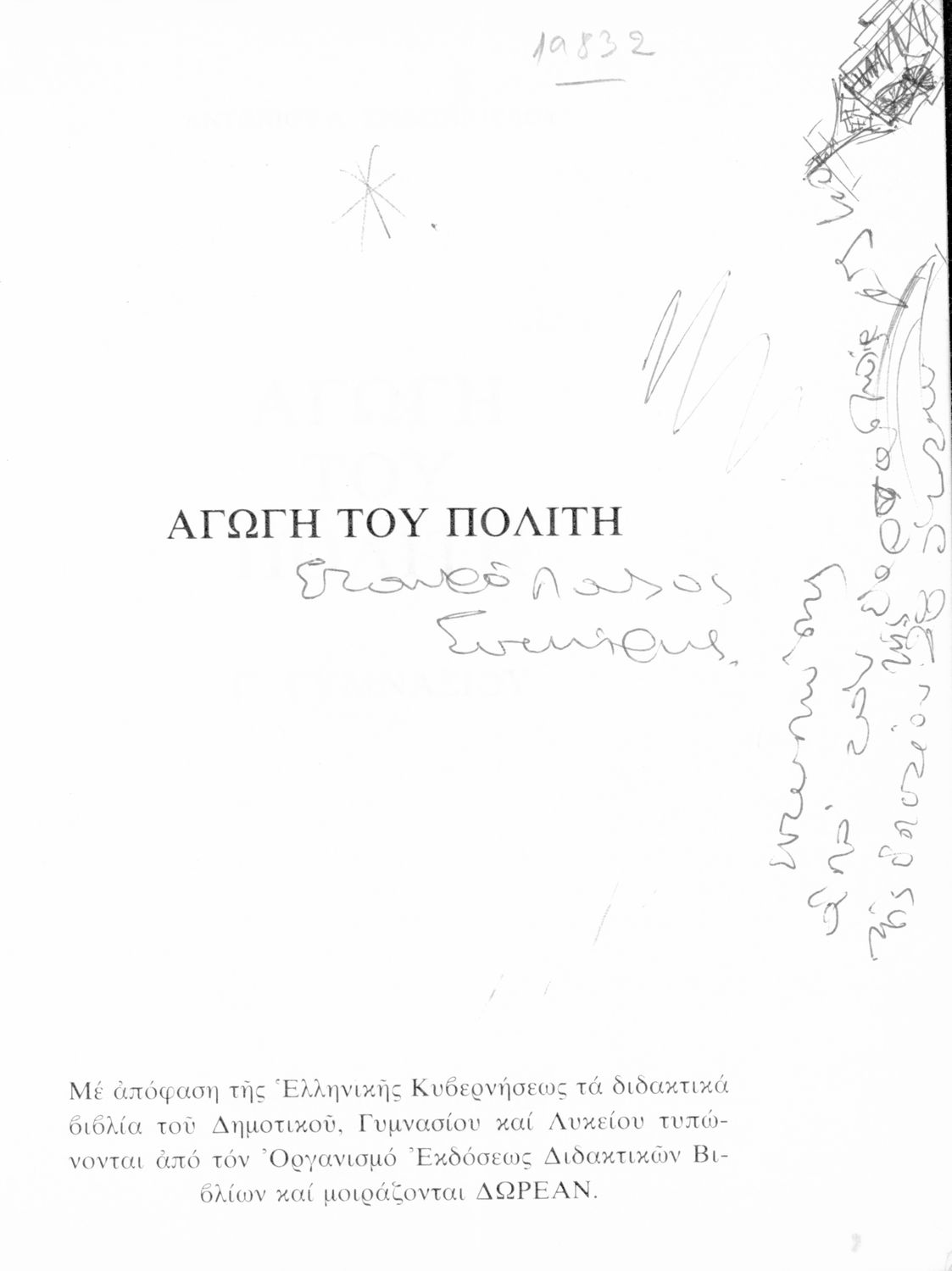 Κωδικός αναγνώρισης: 01-19832 Τίτλος: Αγωγή του Πολίτη. Γ΄ Γυμνασίου Συγγραφέας: Αντώνιος Λ. Χριστόπουλος Μέγεθος και υπόστρωμα: Σχολικό εγχειρίδιο, μαλακό εξώφυλλο, 223 σελίδες. |