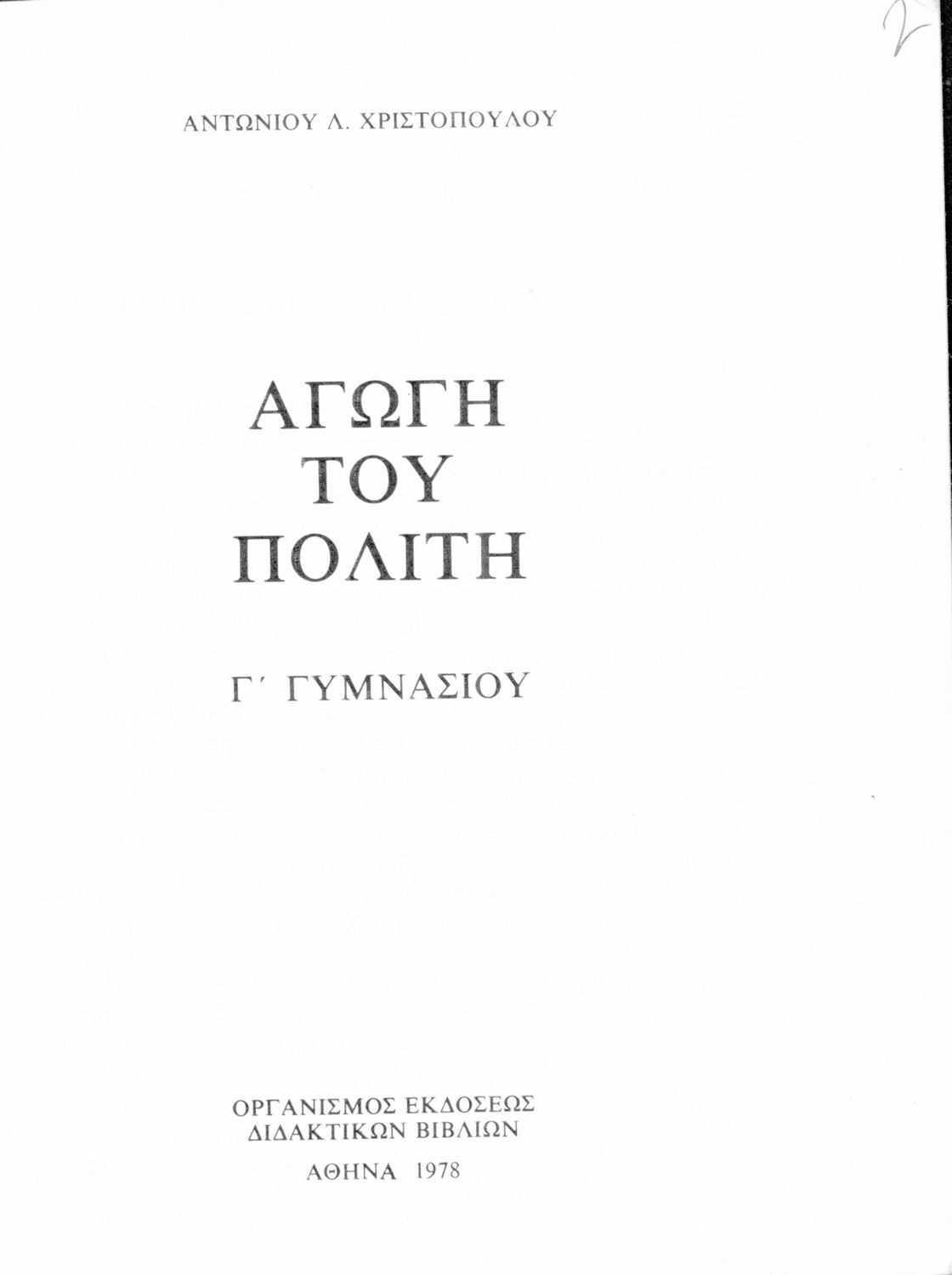 LDR 01277 2200217 4500 035 ## _a01-19832 040 ## _aΙνστιτούτο Εκπαιδευτικής Πολιτικής 041 ## _ael 100 ## _aΑντώνιος Λ. Χριστόπουλος 110 ## _a19832 245 0# _aΑγωγή του Πολίτη. Γ΄ Γυμνασίου 250 ## _a4η Έκδοση 260 ## _aΑθήνα _bΟργανισμός Εκδόσεως Διδακτικών Βιβλίων _c1978 300 ## _a223 520 ## _aΣχολικό εγχειρίδιο Αγωγής του Πολίτη Γ΄ Γυμνασίου που παρουσιάζει τα στοιχεία του δημοκρατικού πολιτεύματος, τον διαχωρισμό των εξουσιών και τα όργανα του κράτους, και τους Διεθνείς Οργανισμούς. Περιλαμβάνει το κείμενο του Ελληνικού Συντάγματος. 521 ## _aΓ' Γυμνασίου 522 ## _aΕλλάδα 546 ## _aΔημοτική 563 ## _aΜαλακό Εξώφυλλο 583 ## _a3043/12-4-1978 _c1978 650 #4 _aΑρμοδιότητες _aΔημοκρατία _aΔικαιώματα _aΔιοίκηση _aΕξουσία _aΟΗΕ _aΣύνταγμα