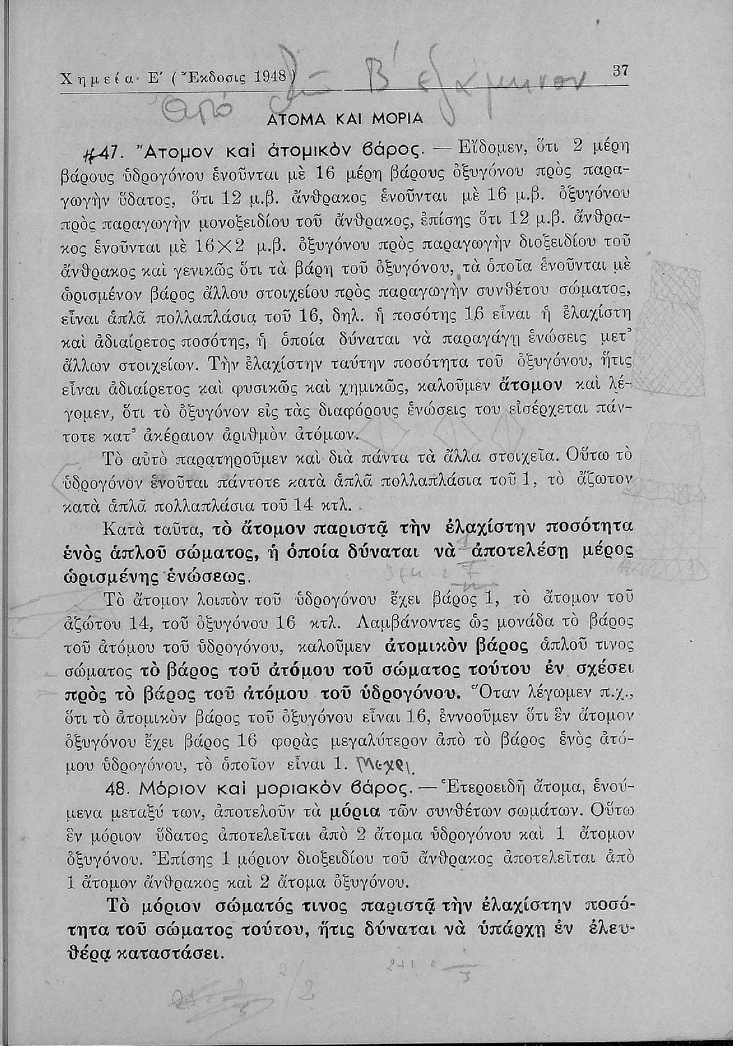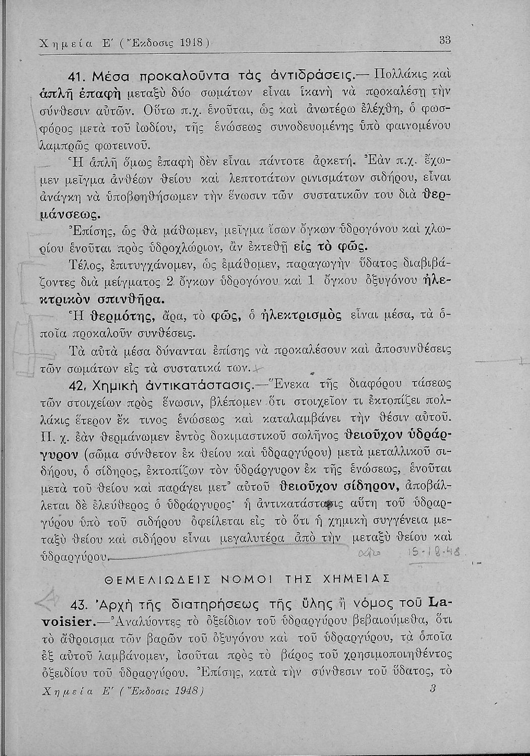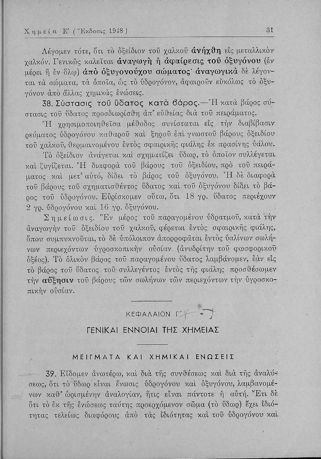 Χημεία δια την Ε΄ τάξιν των Γυμνασίων παλαιού τύπoυ