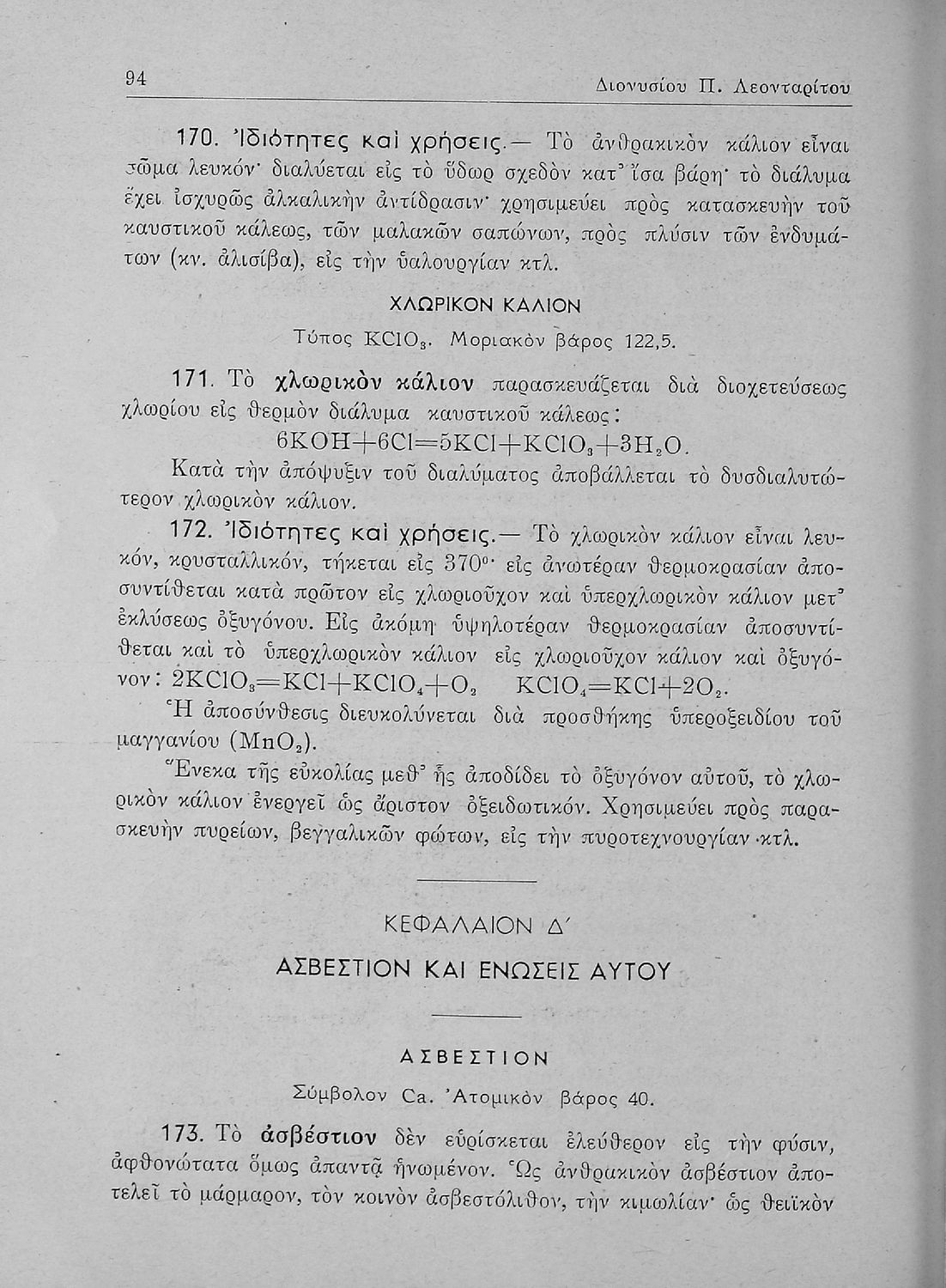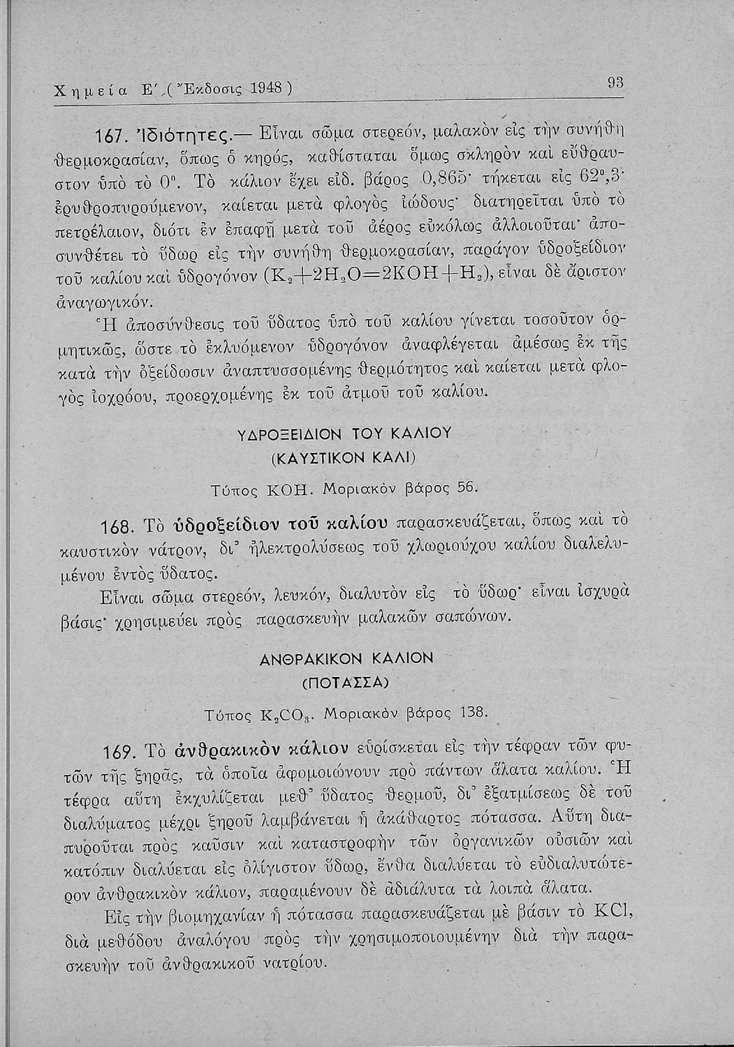 Χημεία δια την Ε΄ τάξιν των Γυμνασίων παλαιού τύπoυ