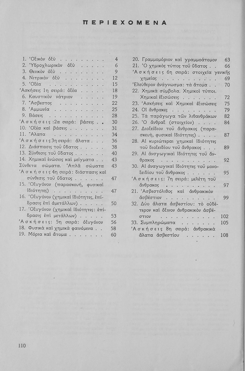 Το συγκεκριμένο εγχειρίδιο αφορά το μάθημα της Χημείας και αναφέρεται σε μαθητές της Β΄ τάξης των Οκταταξίων Γυμνασίων. Περιγράφει τις χημικές ενώσεις των σωμάτων και τα μείγματα τους, φυσικούς και τεχνικούς ...
