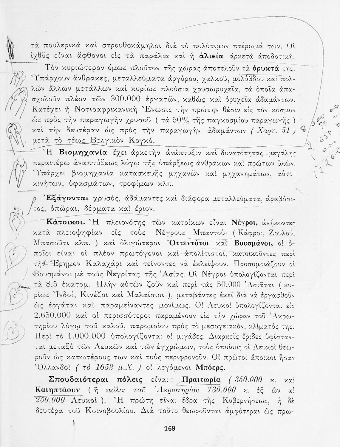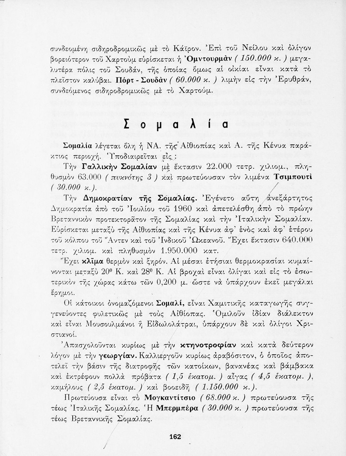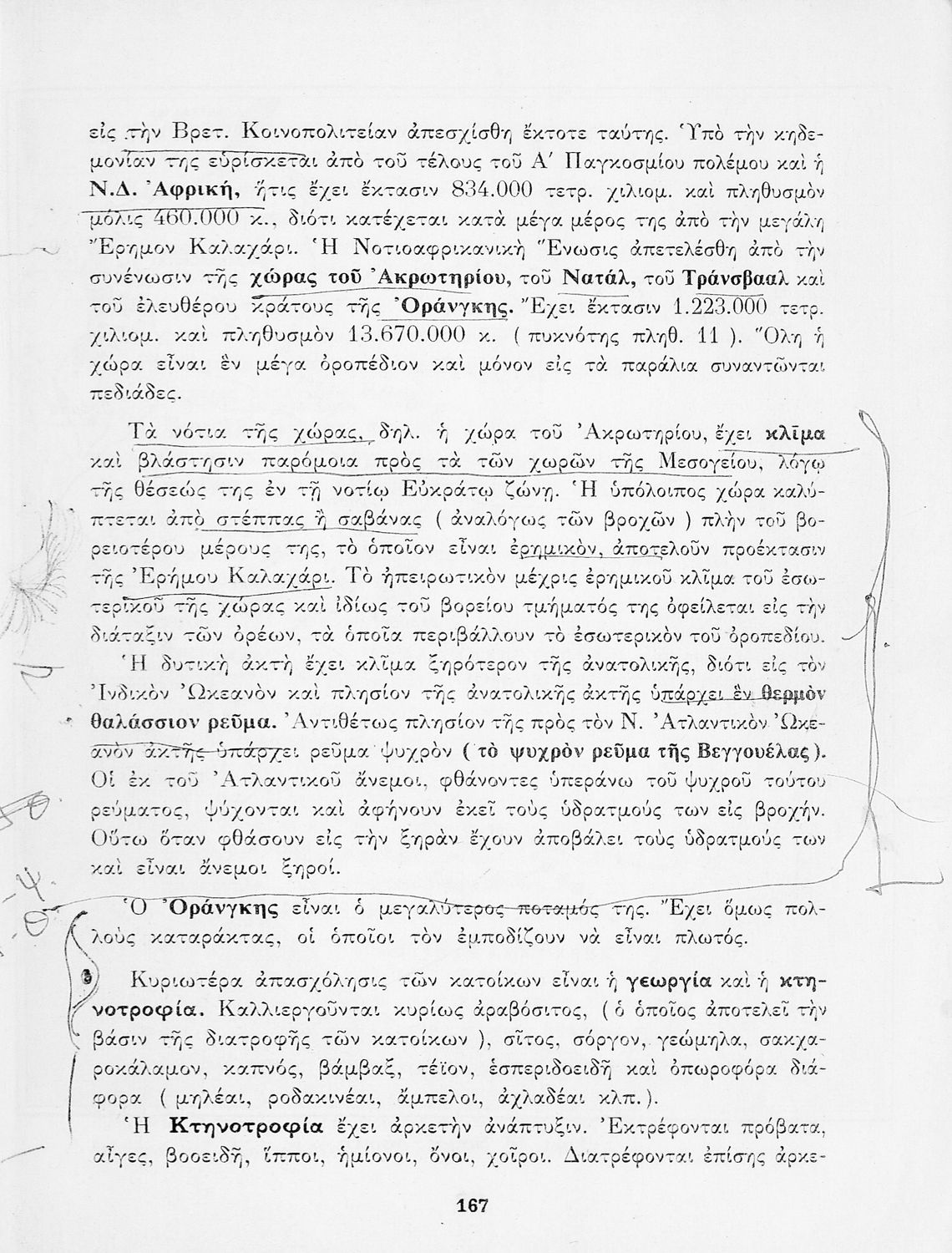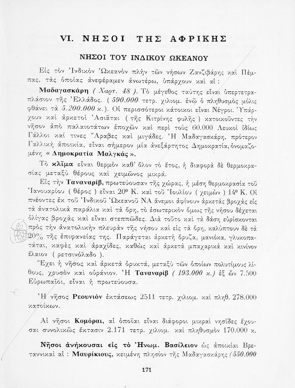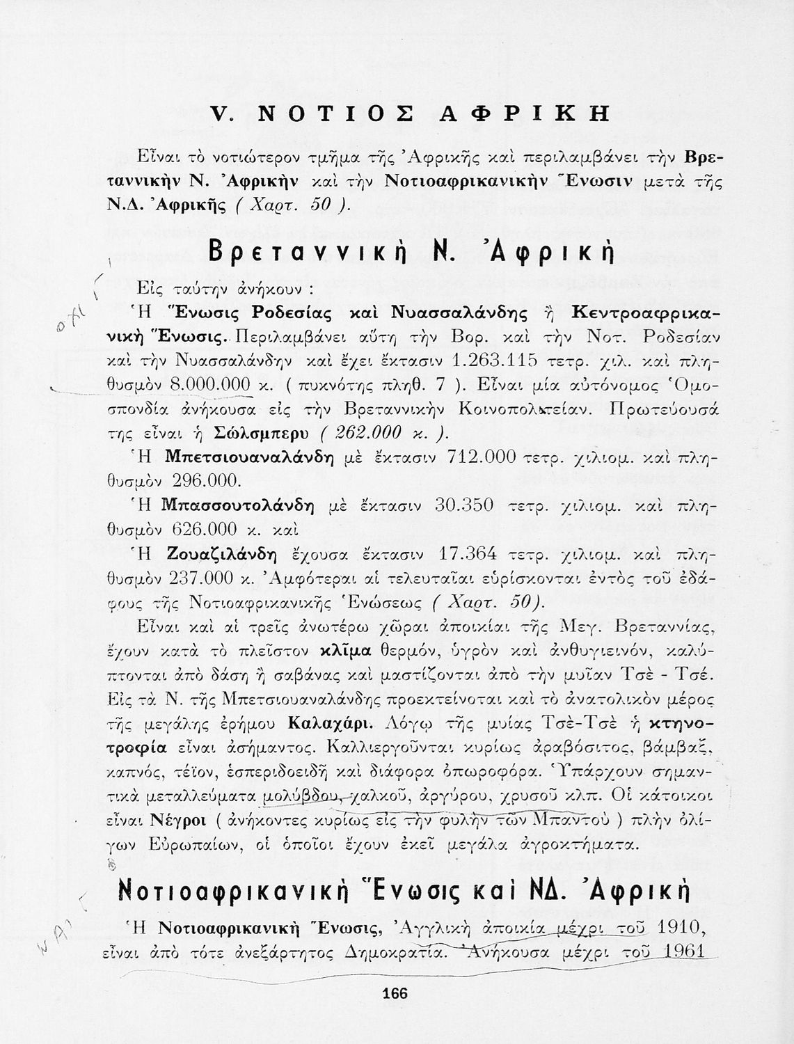 Σχολικό εγχειρίδιο Γεωγραφίας που εξετάζει ενδεικτικές χώρες και περιοχές από τις πέντε ηπείρους εκτός της Ευρώπης από γεωφυσική και οικονομική πλευρά. Φέρει το σύμβολο της δικτατορίας.
