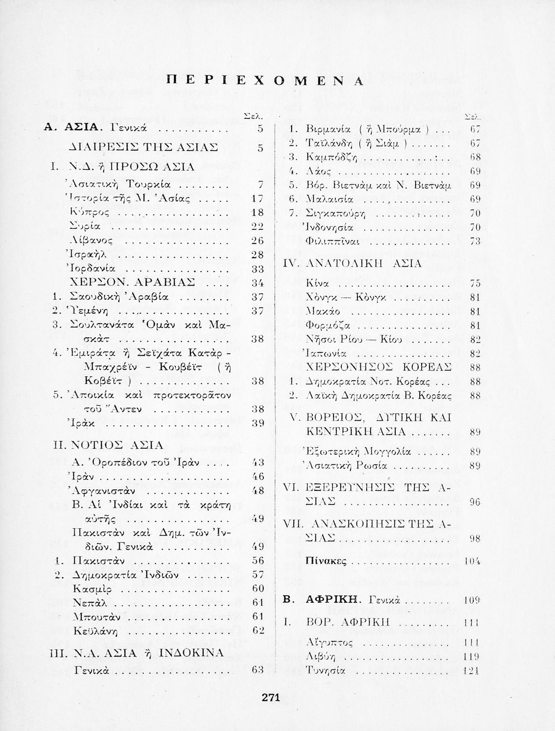 Σχολικό εγχειρίδιο Γεωγραφίας που εξετάζει ενδεικτικές χώρες και περιοχές από τις πέντε ηπείρους εκτός της Ευρώπης από γεωφυσική και οικονομική πλευρά. Φέρει το σύμβολο της δικτατορίας.