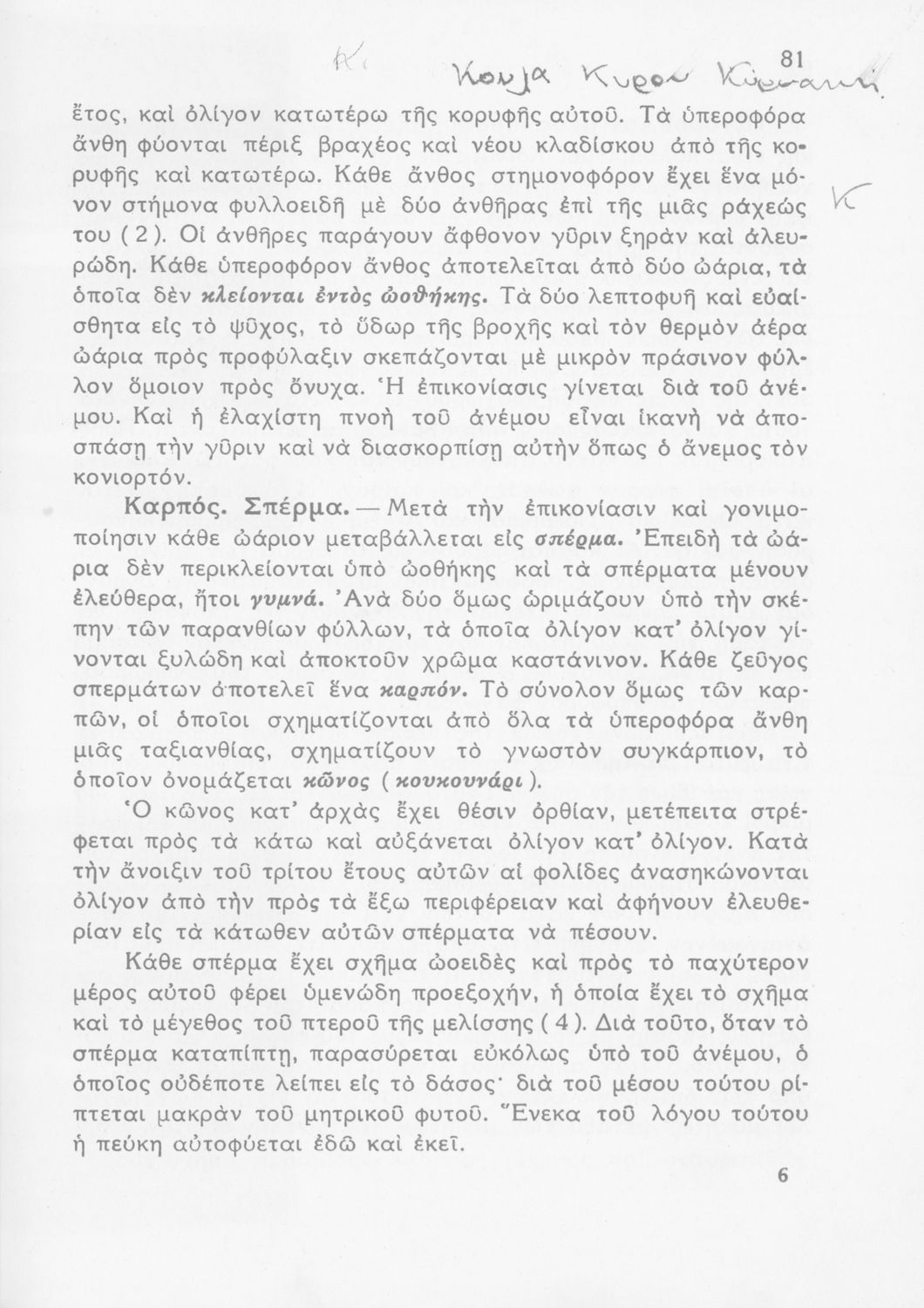 Βαθμίδα εκπαίδευσης: Δευτεροβάθμια Τάξη: Γ' Γυμνασίου / Β' Αστικού Σχολείου Μάθημα: Φυτολογία Γλώσσα: Καθαρεύουσα Παρουσίαση περιεχομένου: Σχολικό εγχειρίδιο Φυτολογίας για τη Γ΄ Γυμνασίου και τη Β΄ τάξη των Αστικών σχολείων που περιέχει πληροφορίες για τα φυτά της Ελλάδας καθώς και στοιχεία Ζωολογίας για ζώα διαφόρων τόπων. Σχέδια και ζωγραφιές της μαθήτριας στο βιβλίο. |