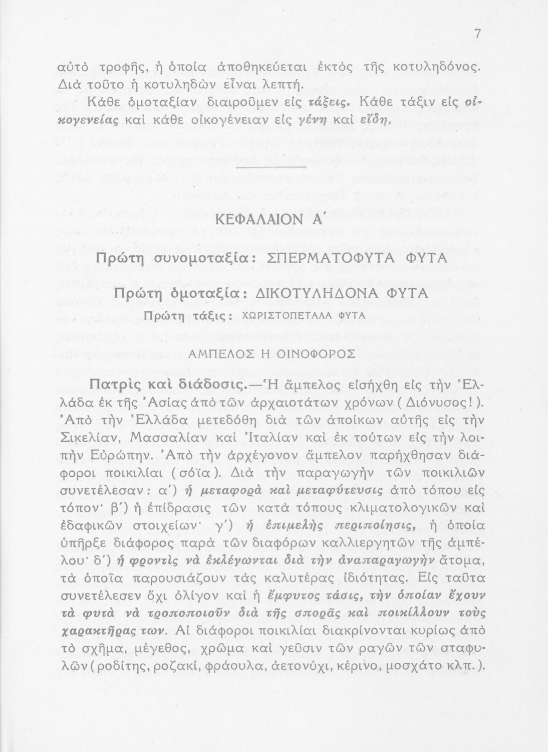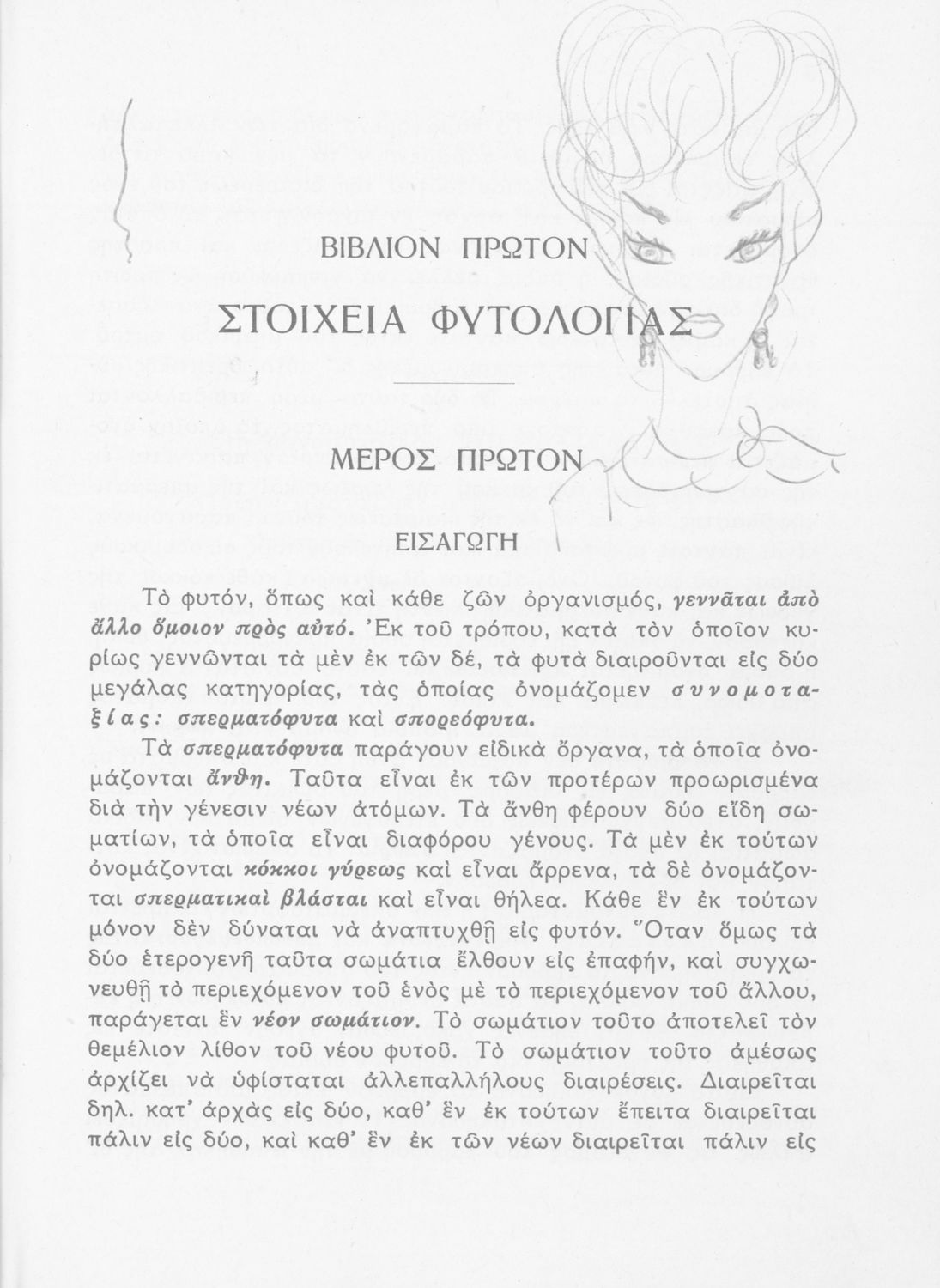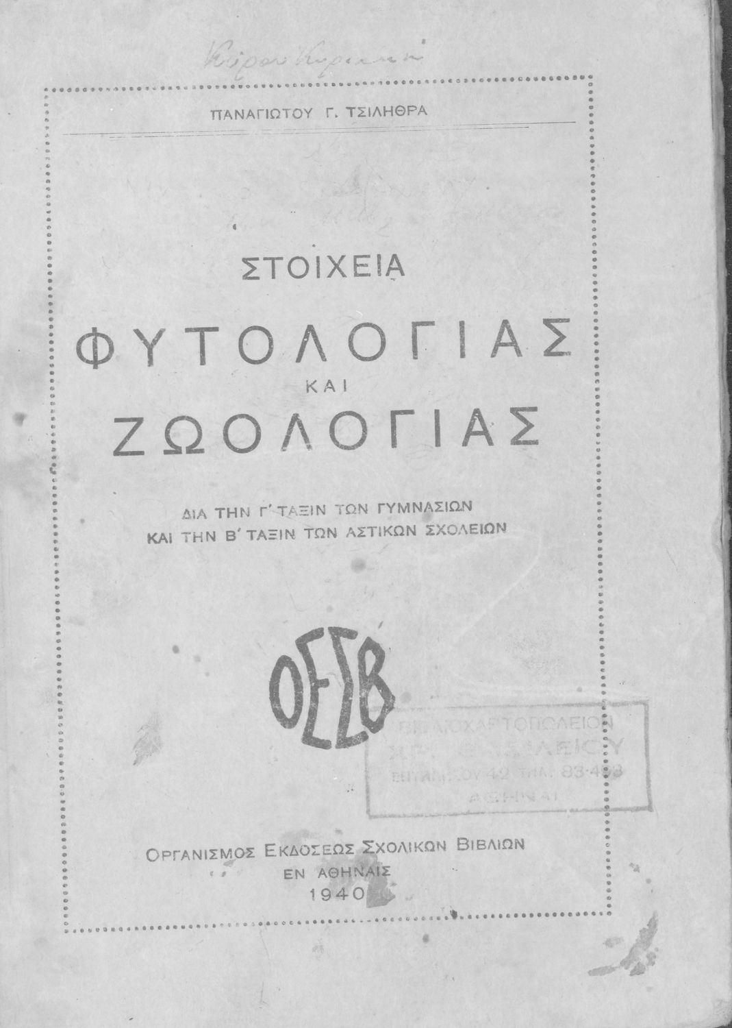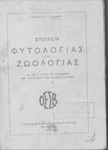 Σχολικό εγχειρίδιο Φυτολογίας για τη Β΄ Γυμνασίου και Α΄ τάξη Αστικών σχολείων που περιέχει πληροφορίες για τα φυτά της Ελλάδας καθώς και στοιχεία Ζωολογίας για ζώα διαφόρων τόπων.